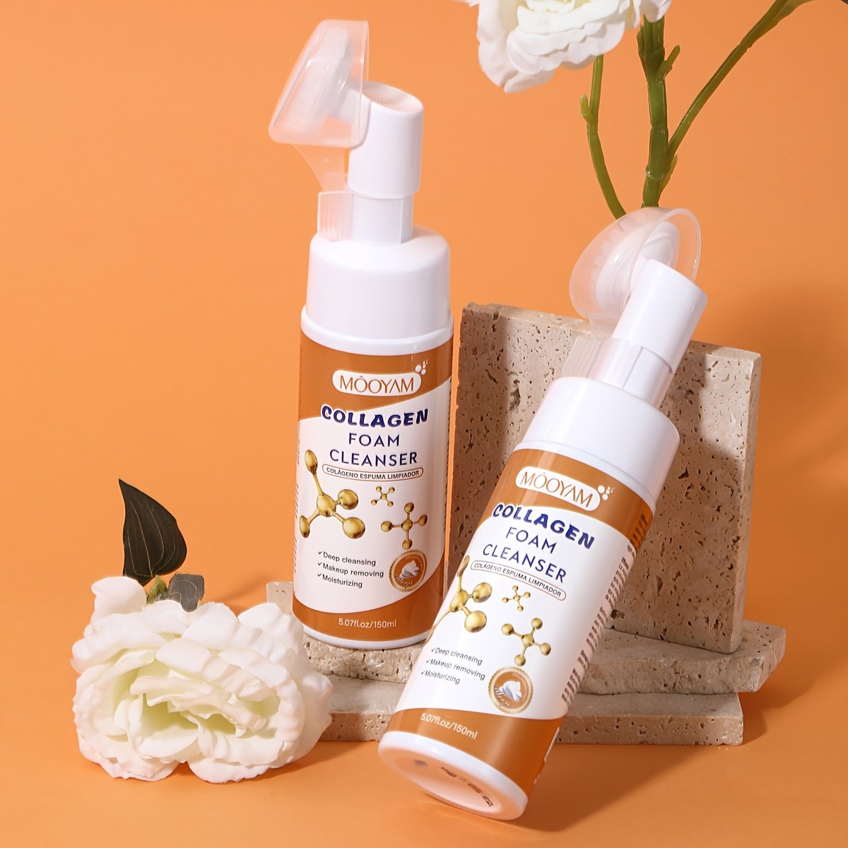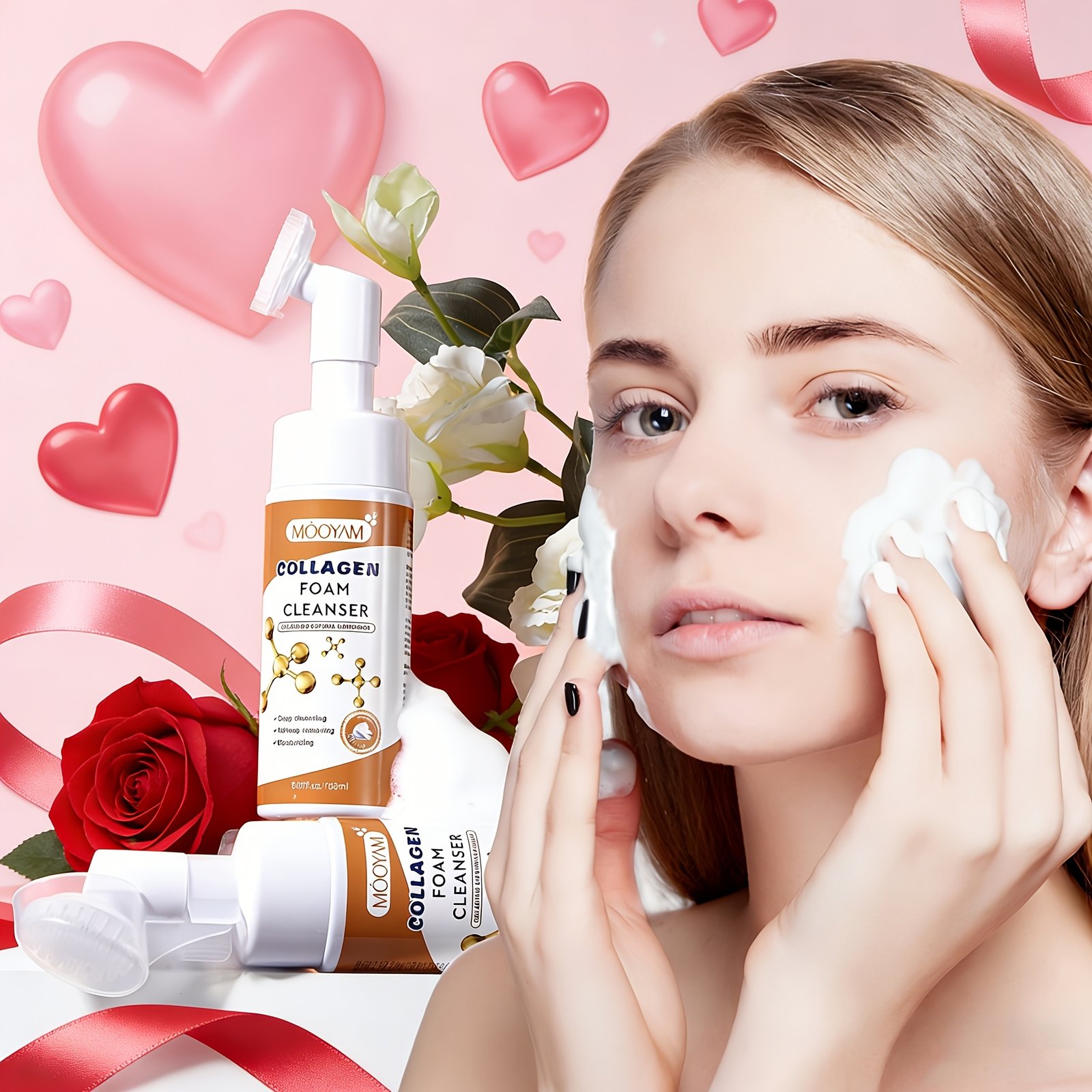 1/2/3pcs Collagen Facial Cleansing Mousse, Facial Cleansing Foam, Comes With A Massage Head, Hydrates And Moisturizes To Prevent Dryness, Deeply Cleanses Pores, Suitable For Daily Use During Work And Travel, Ideal For Gifting