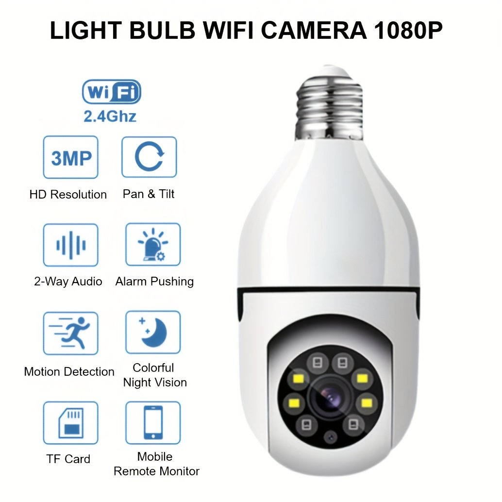 1/2pcs 2MP Light Bulb Camera 2.4Ghz Wifi, 1080P Wireless Surveillance Camera with Full-Color Night Vision, Two Way Audio, Motion Detection, 360° Pan&Tilt for Home Security