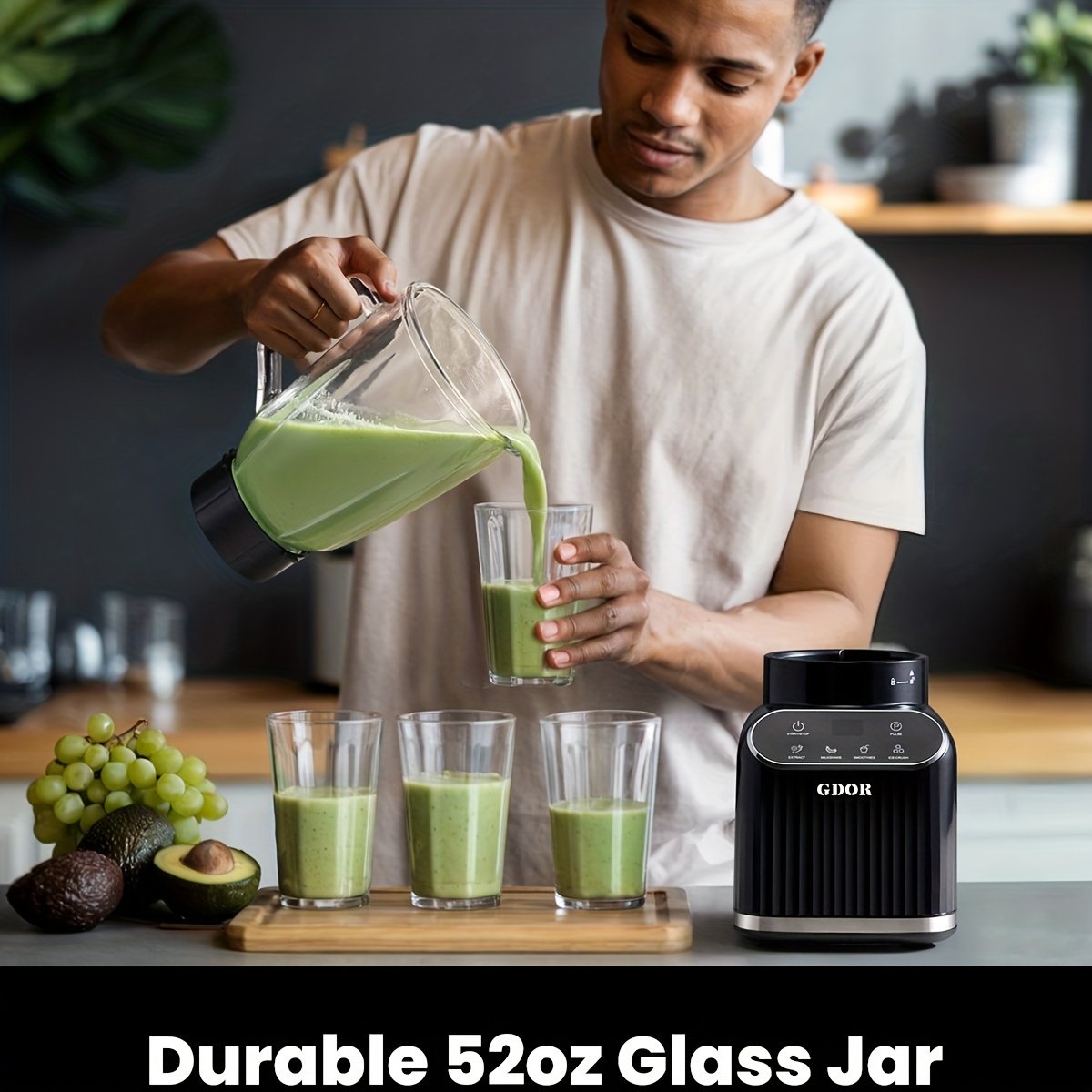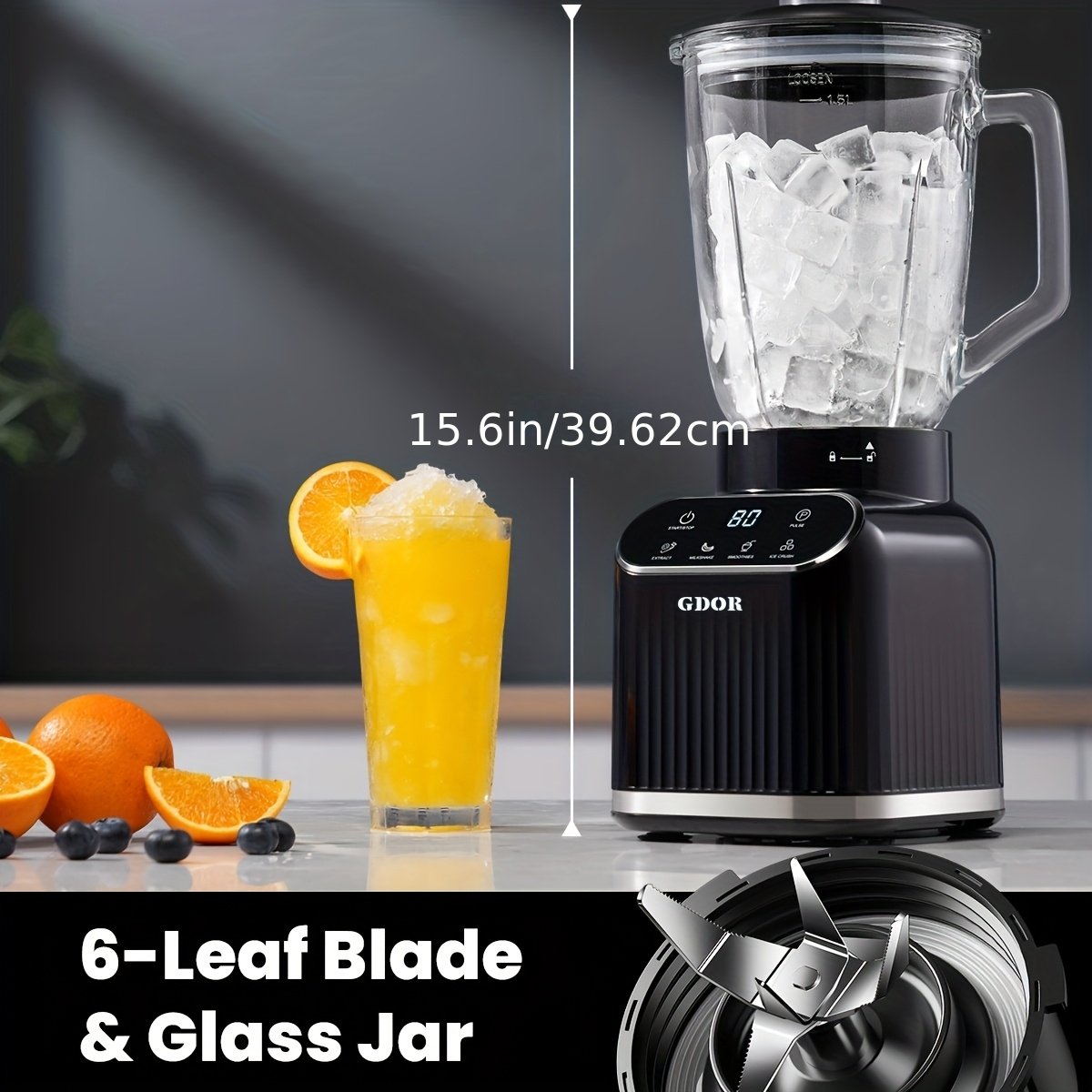 1200W Peak Power Countertop Blender With 5 Functions, 52oz Glass Jar & 24oz To-Go Cup Combo, 21000 RPM Speed, Pulse Technology For Smoothies, Juices, Black.