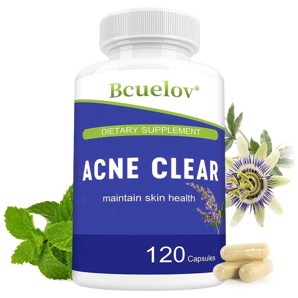 120pcs Acne Capsules with Chamomile Extract – Herbal Supplement for Acne, Pimple, Light Beige & Immune Suitable for Men & Women, Chamomile-Containing Capsules
