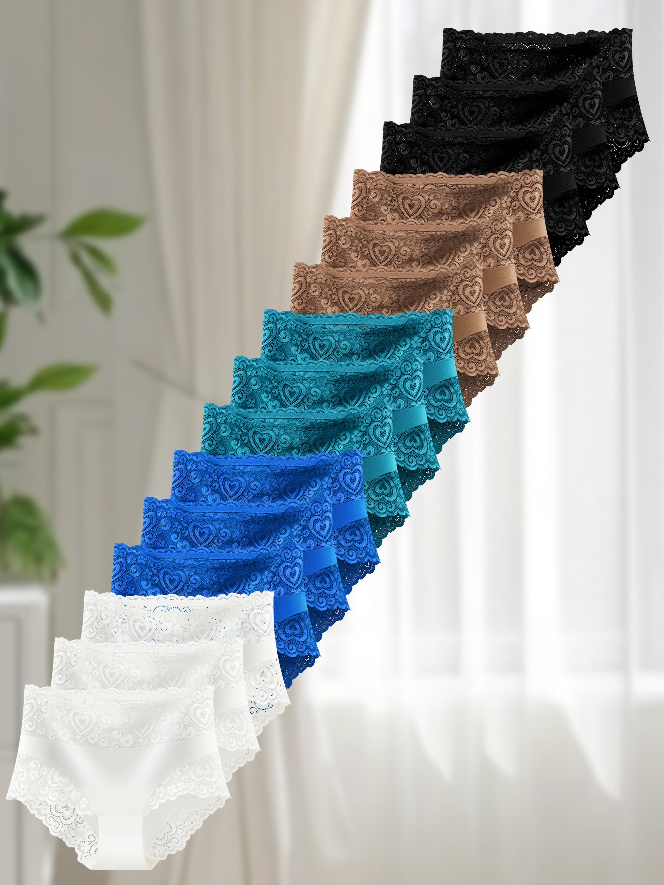 15-Pack Women’s Bikini Underwear – Mid-Rise Cheeky Briefs with Elegant Lace Spliced Design, Breathable Texture & Solid Color (No Sheer Styles) – Full Coverage for Romantic Holidays & Casual Attire – Comfortable & Stylish Pack