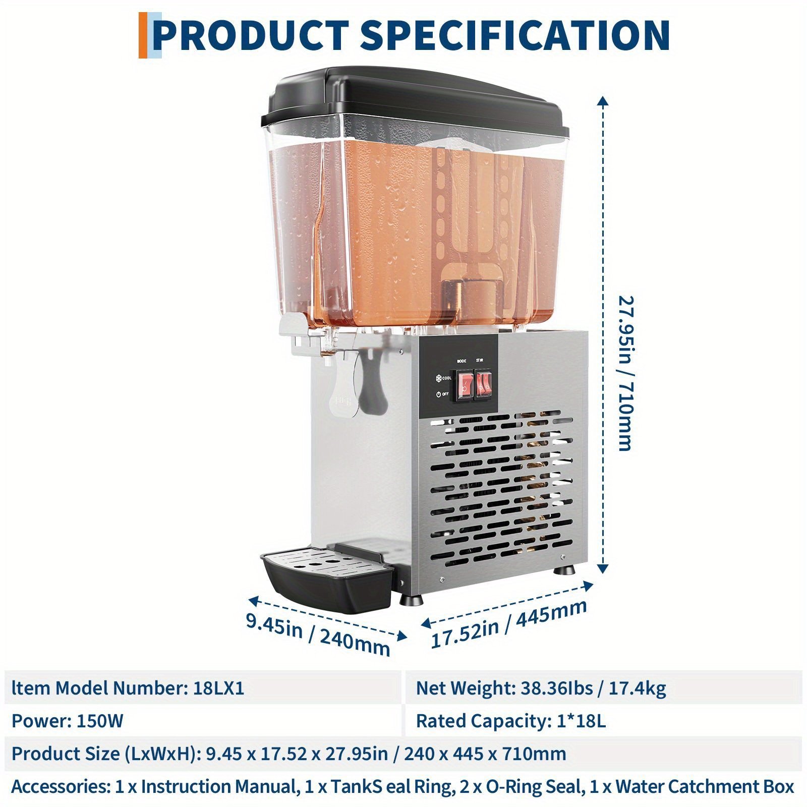 18LX1 Commercial Beverage Dispenser, 1 Tank Iced Tea Drink Machine, 150W Juice Dispenser Stainless Steel Design, Fast Cooling, Easy to Clean, Perfect for Restaurants, Hotels, and Parties, 115V, Party Drink Station, Restaurant Equipment, Commercialgrade Dispenser, Heavyduty Construction, Highquality Dispenser, Durable Drink Machine, Large Capacity Dispenser, Iced Tea Machine, Event Planners, Food Service Professionals