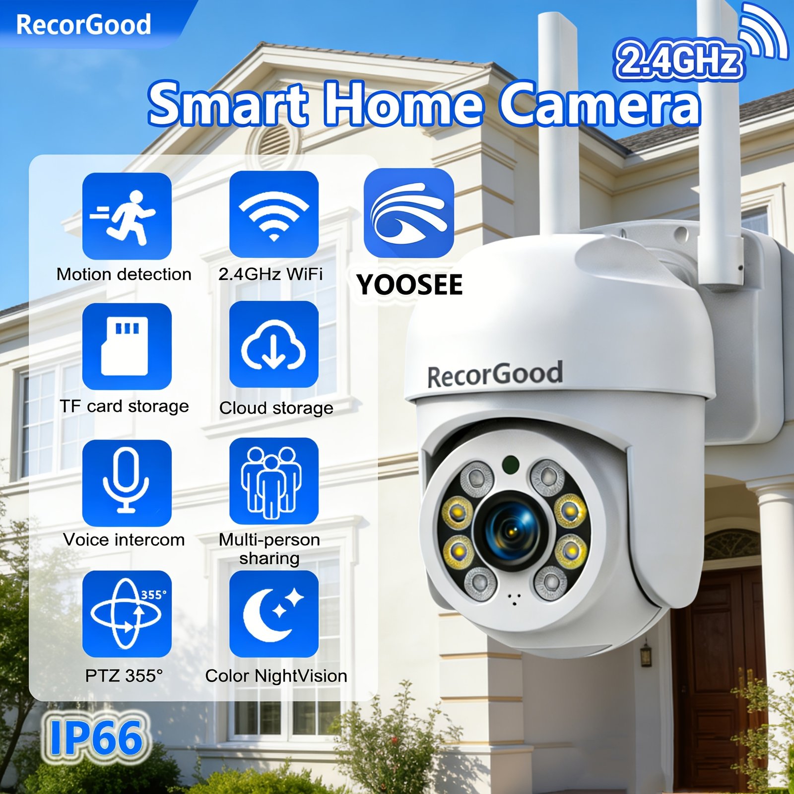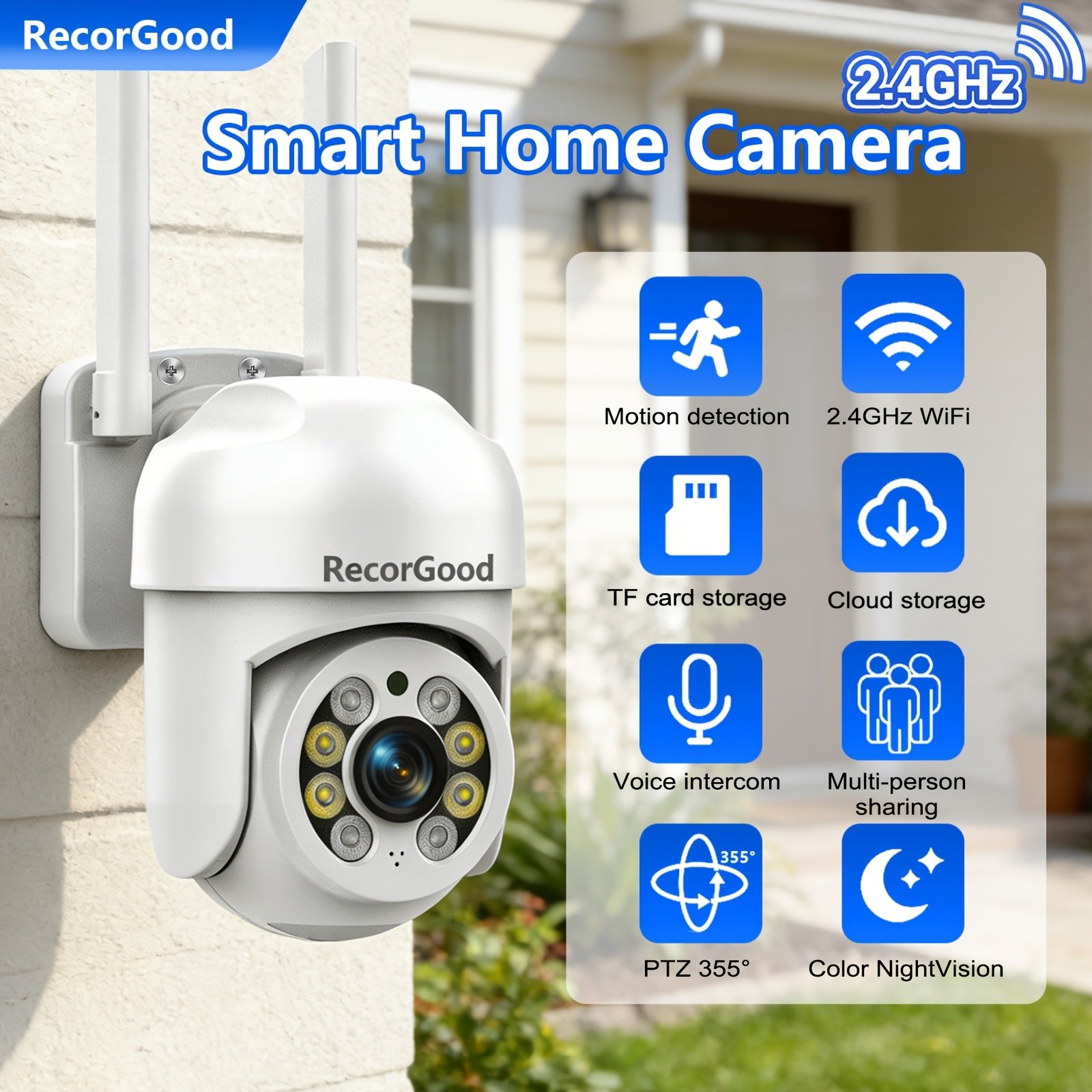 1pc 2MP Wireless Smart Outdoor Security Camera | Ultra-clear Night Vision, 355° Rotating Pan/Tilt, Motion Detection, Two-Way Talk, Wi-Fi Supported, Ideal for Home, Shop, Garage Monitoring | Wall Hanging, HD Resolution, PTZ Technology
