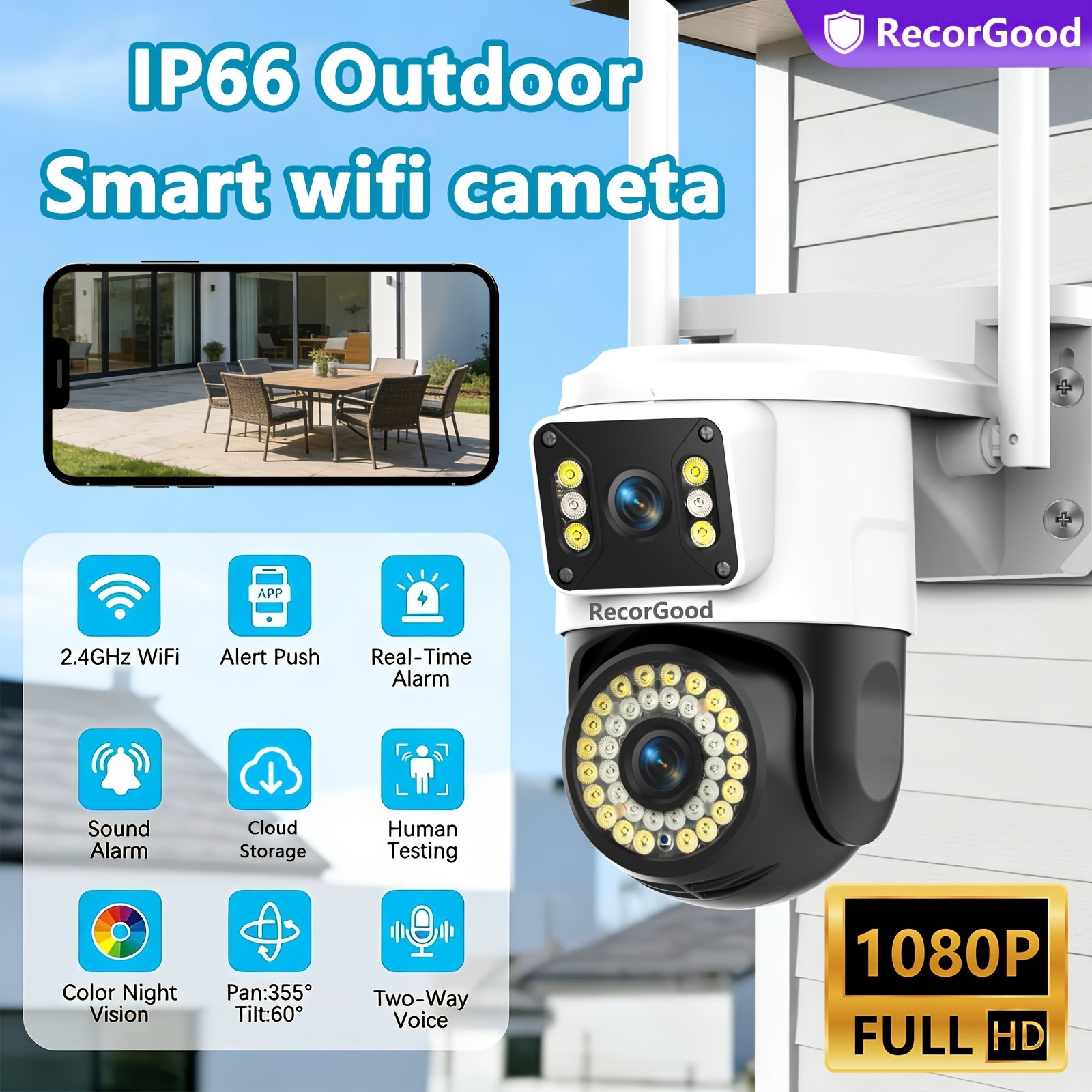 1pc Infrared and White Light Dual-light Design, Three Night Vision Modes, Full-color Night Vision, Intelligent Dual-lens Gun-ball Linkage, Dual-screen Display on the Same Screen, One-click Intrusion Removal, Sound and Light Alarm, AI Motion Detection