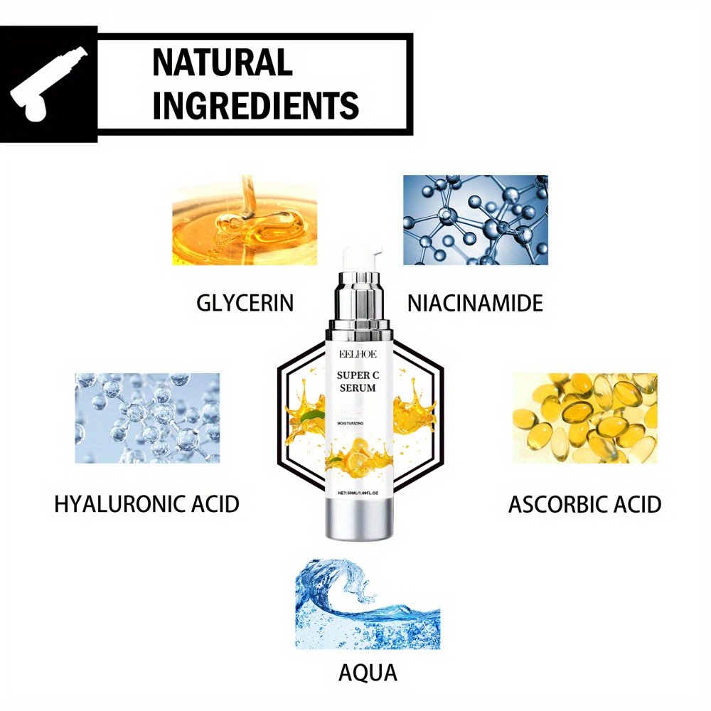 2/ 3/ 4pcs 1.69 Oz Super Vitamin C Serum, 15 Vitamin C Complex Hyaluronic Acid Facial Serum, Nourishes And Moisturizes Skin for a More Vibrant Appearance