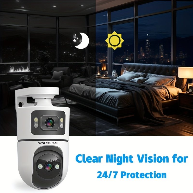 2.4G&5GHz WiFi 2K Dual Lens Wireless Monitoring Camera, Dual Lens Dual Screen, AI Motion Detection, Two-way Voice, 3 Night Vision Modes Suitable For Home Security Cameras, Christmas And Halloween Decorations, Thanksgiving Gifts.