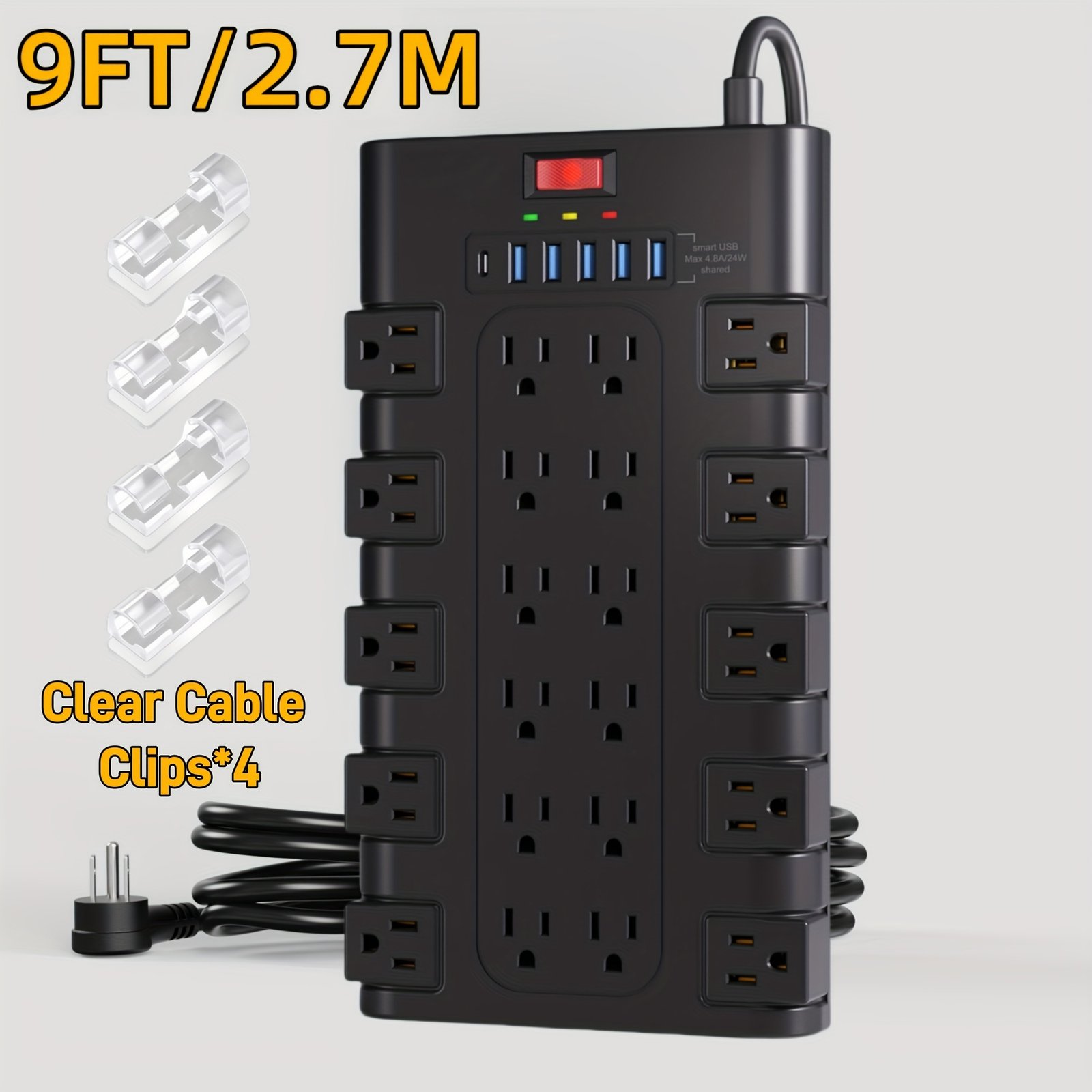 22/4-Outlet Flat Plug Power Strip With 6/4 USB Ports, 28/8-in-1 Power Strip With Surge Protection, Control Switch, Spacious AC Outlets, Flat Plug, 2100 Joules, Wall-Mountable Extension Cord – 4.8/5/7/9/13 Ft Length Options, Charging Station For Home, Dorm, Office, Essential And Gift