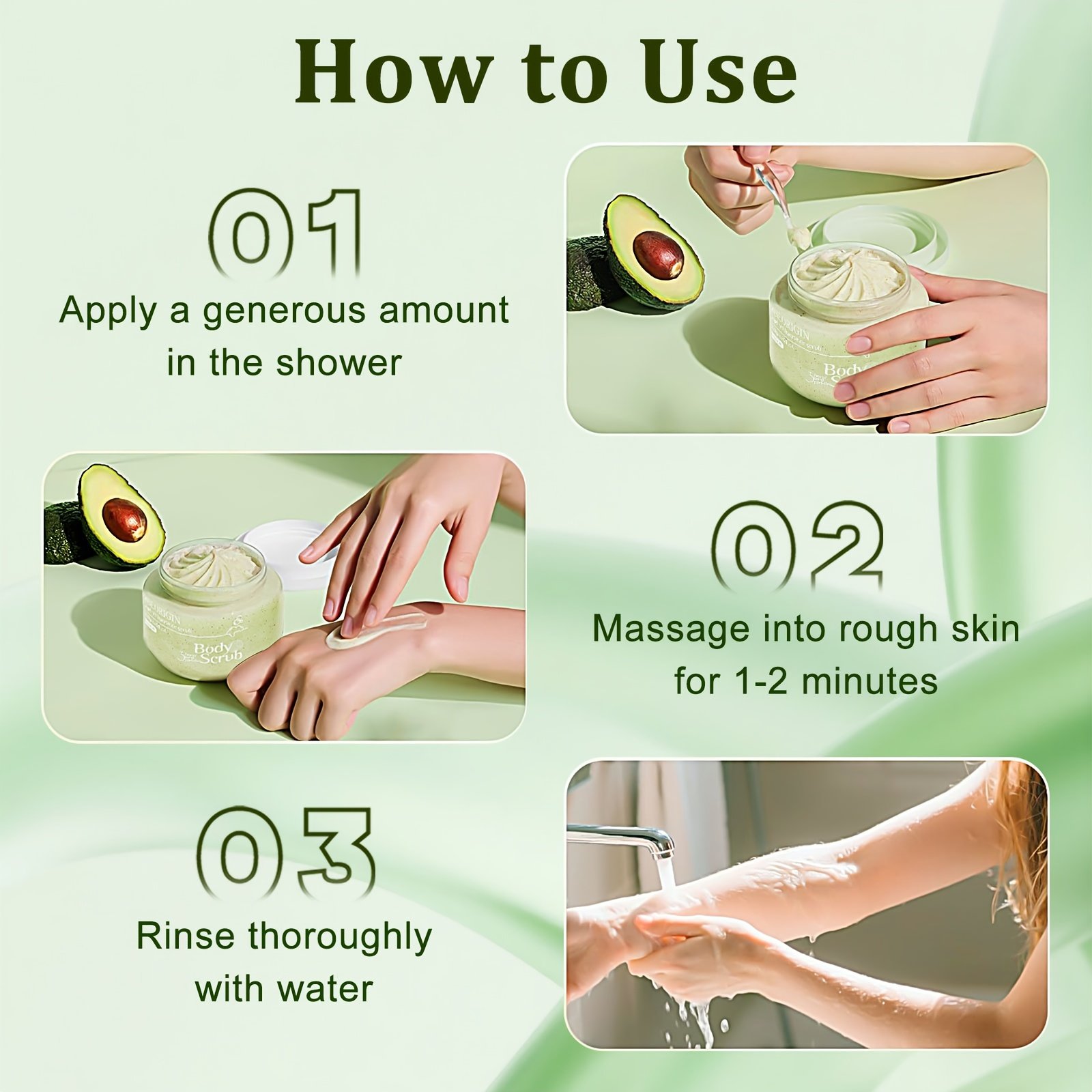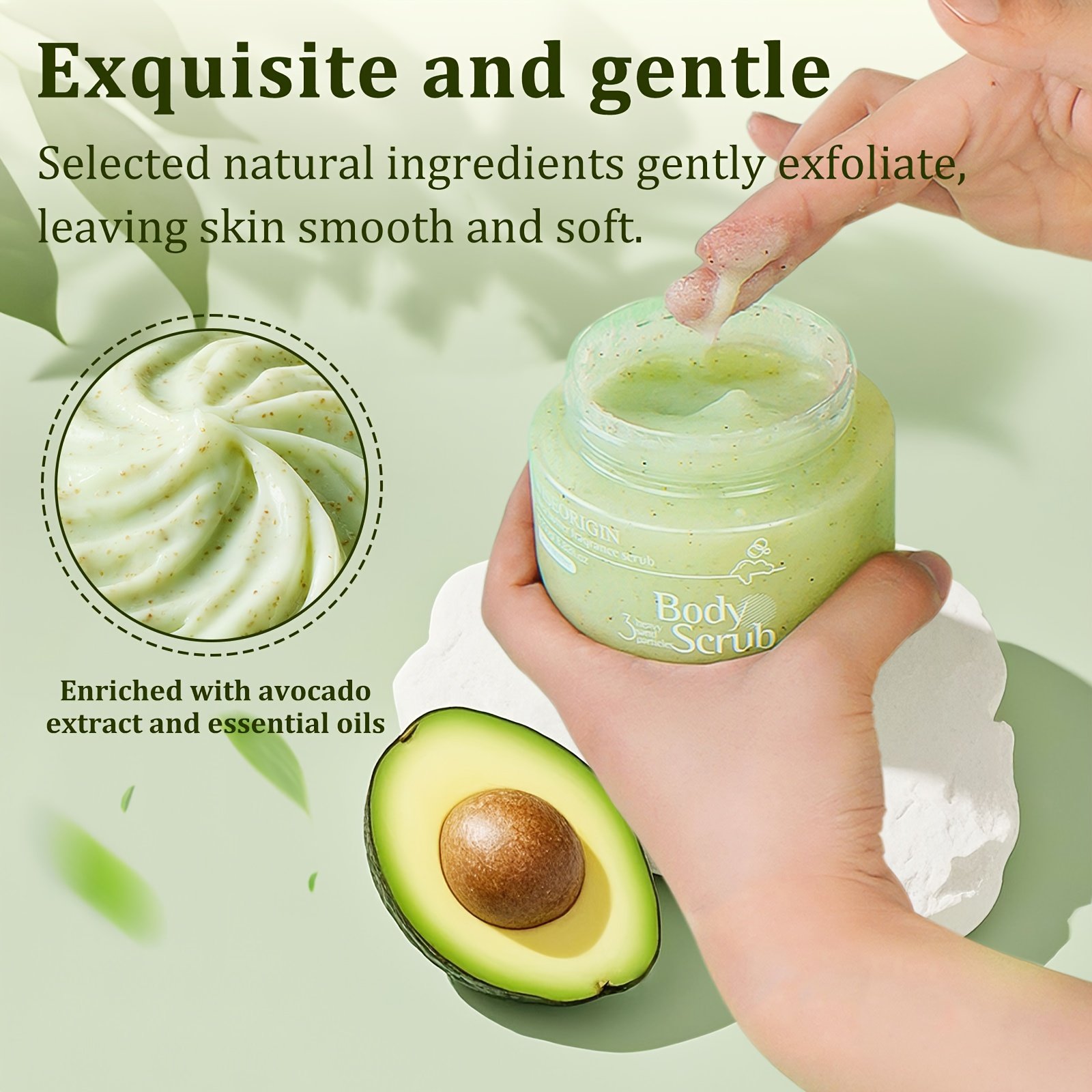250g/ 1pc Avocado Extract Scrub. Contains Squalane, Trehalose, And Walnut Shell Powder. Gently Deep Cleanses, Provides Lasting Hydration, Evens And Brightens Light Beige, And Promotes A Youthful Complexion. Suitable For All Light Beige Types.