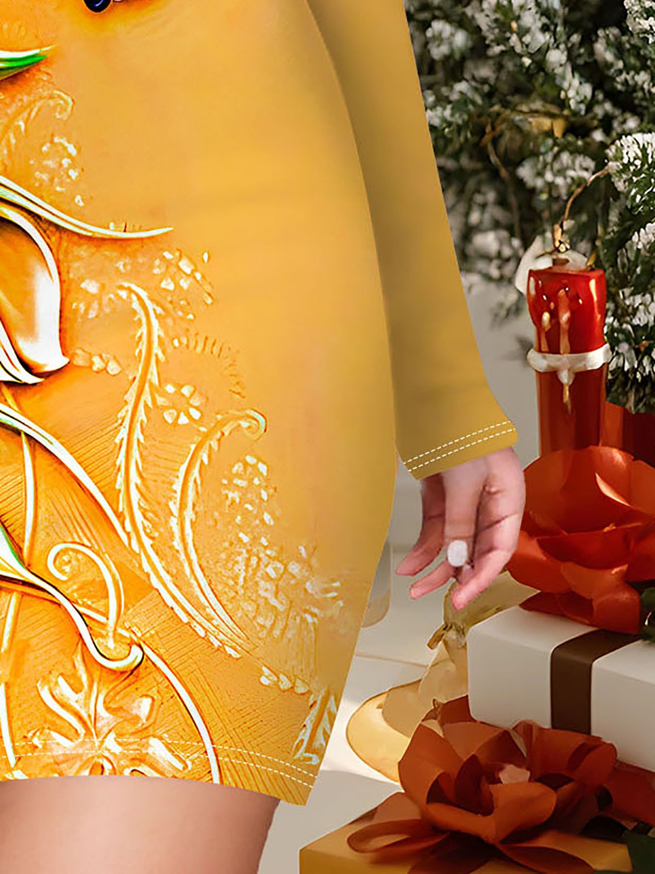 Hip Hugging Dress, Ins Sexy Retro Style, American Style Style, Full Body Printed Women’S Fashionable Long Sleeved Round Neck Hip Hugging Dress, Christmas Clothing, Valentine’S Day Gift
