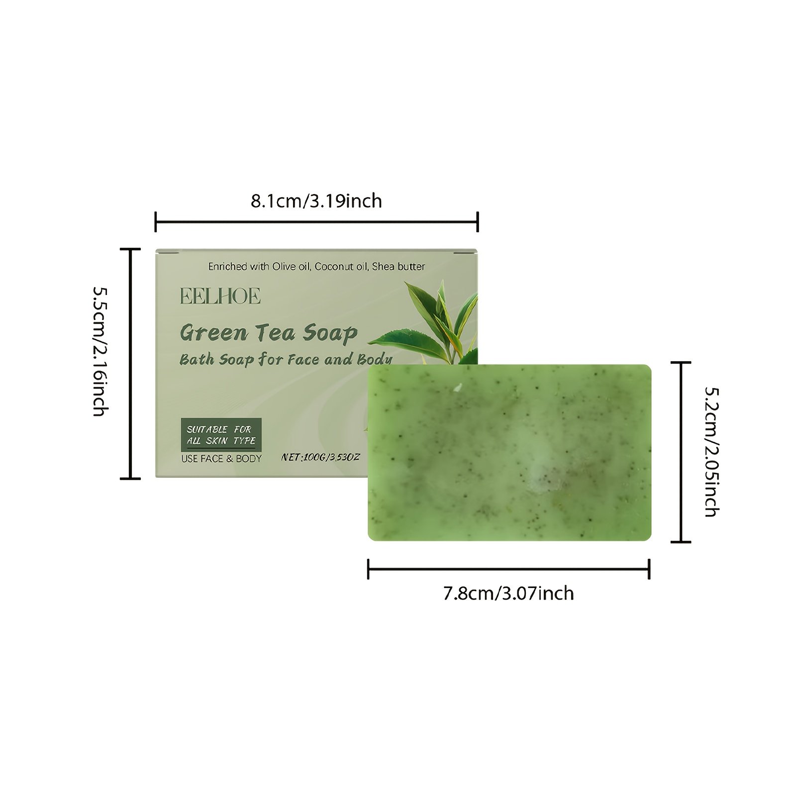 2pcs Green Tea Body & Face Soap Bar | Gentle Cleansing with Natural Tea Tree Oil, Coconut Oil & Shea Butter for All Skin Types, Sensitive Skin Safe, Easy to Lather, Unisex Adult Bath & Facial Cleanser