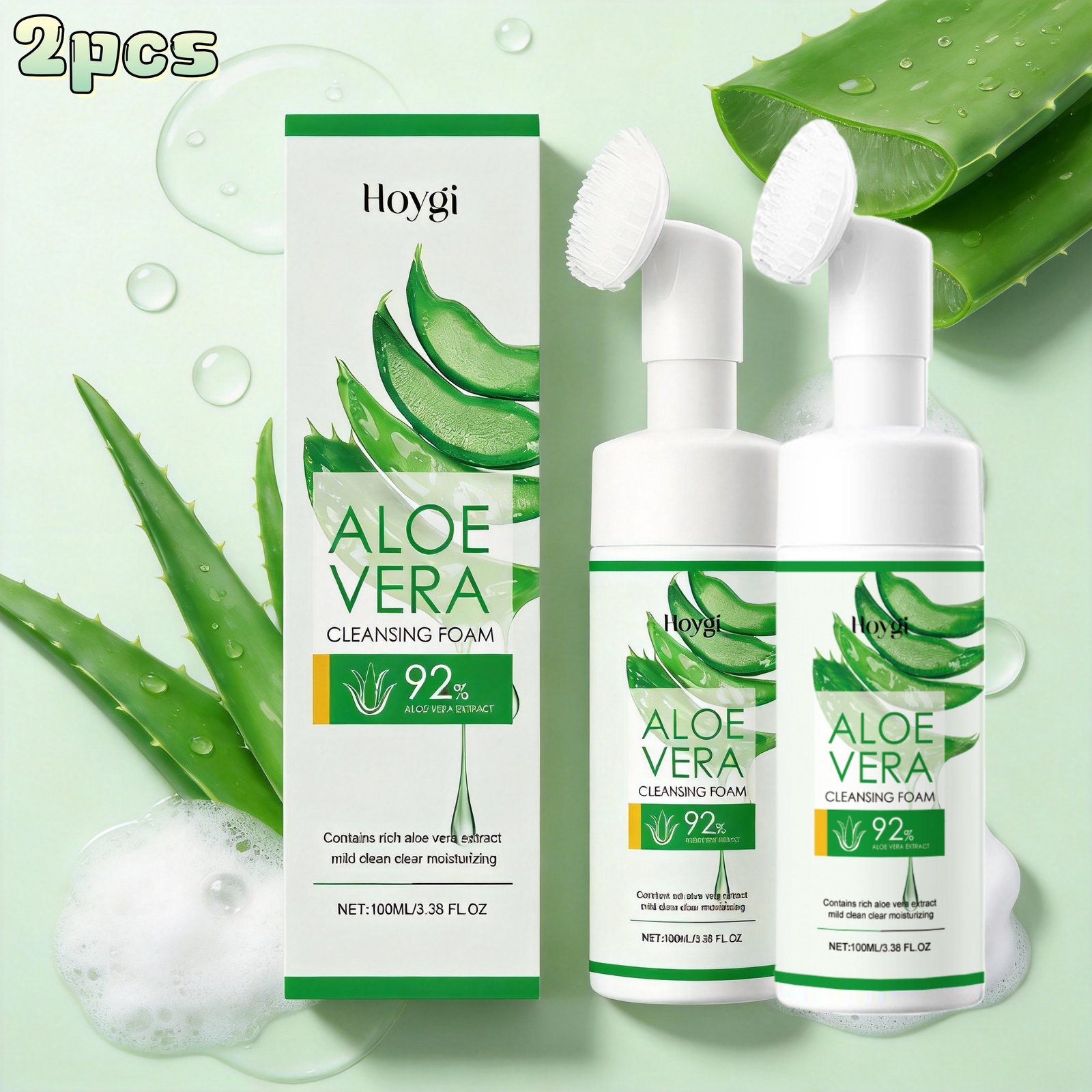 2pcs Hoygi Aloe Vera Cleansing Foam | Gentle Facial Cleansing, Pore Hydration, Oil Control, Moisturizing, Non-Tightening, Scented with Aloe Vera