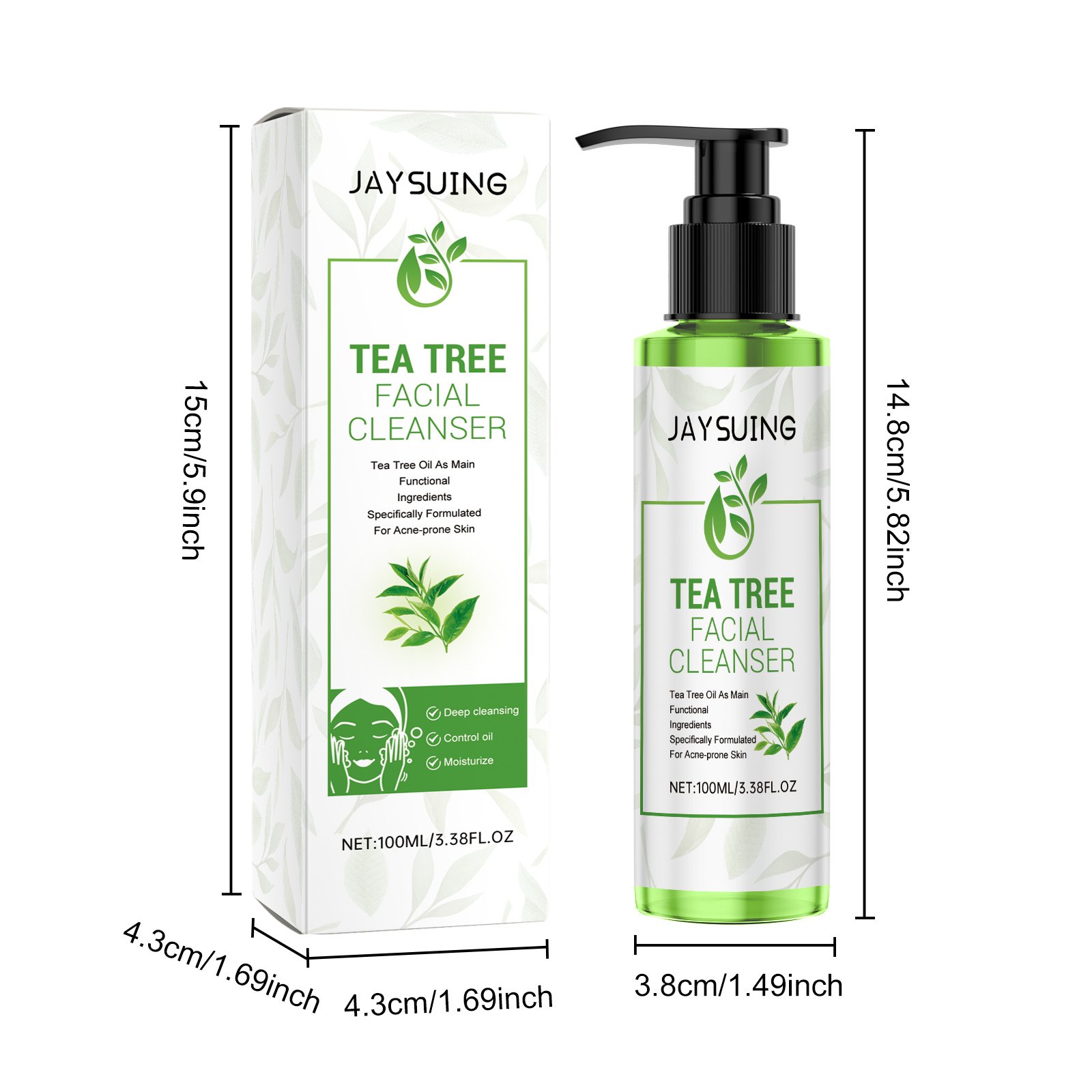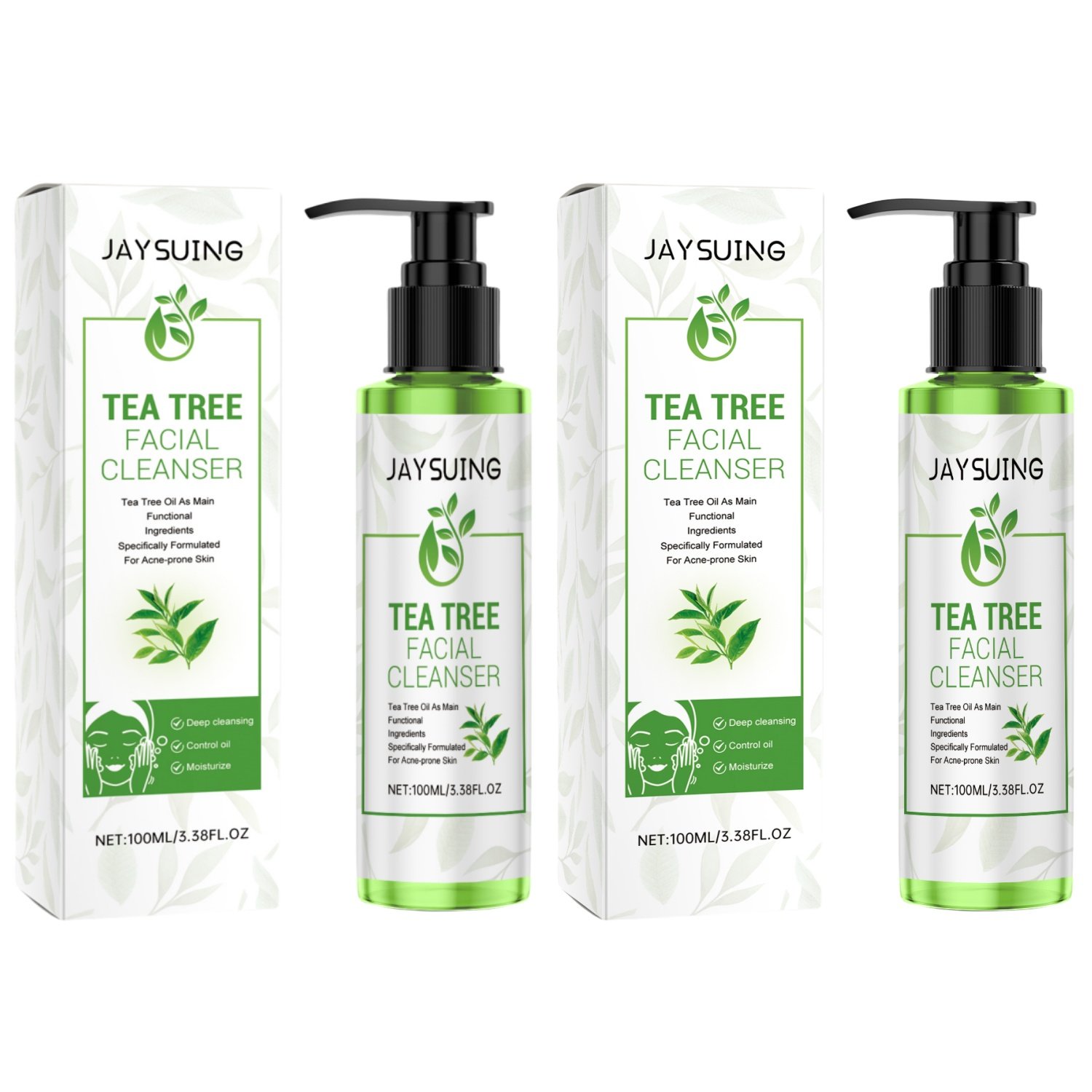 2pcs Tea Tree Cleansing Gel Set Tea Tree Oil Refreshing Oil-Control Cleanser & Gentle Moisturizing Cleansing Milk Essential for Outdoor Travel Women’s Skincare, Gift for The Perfect Christmas Present