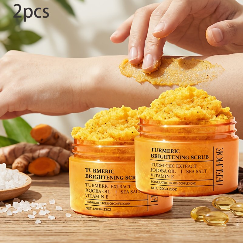 2pcs Turmeric Exfoliating Scrub | Gentle Cleanser With Curcuma Root Extract, Vitamin E, Jojoba Beads, Glycerin For Moisturized And Smooth Skin