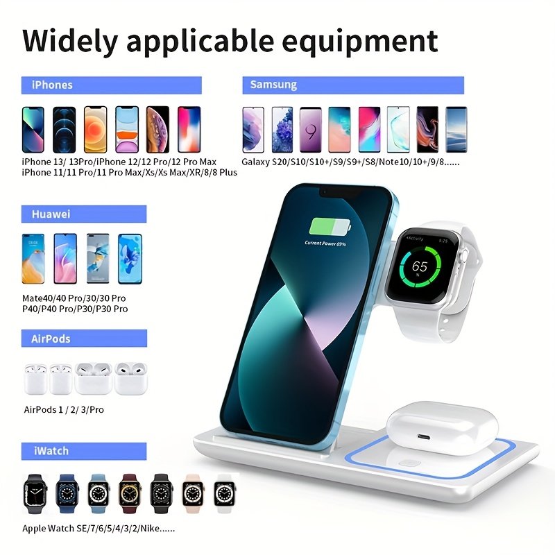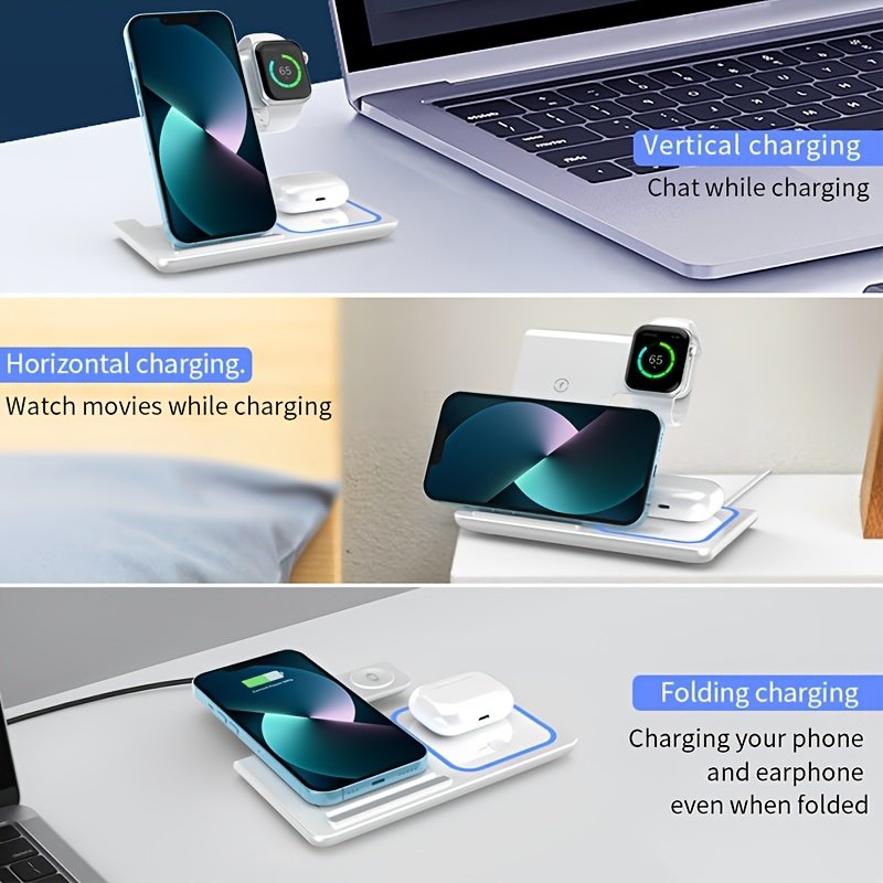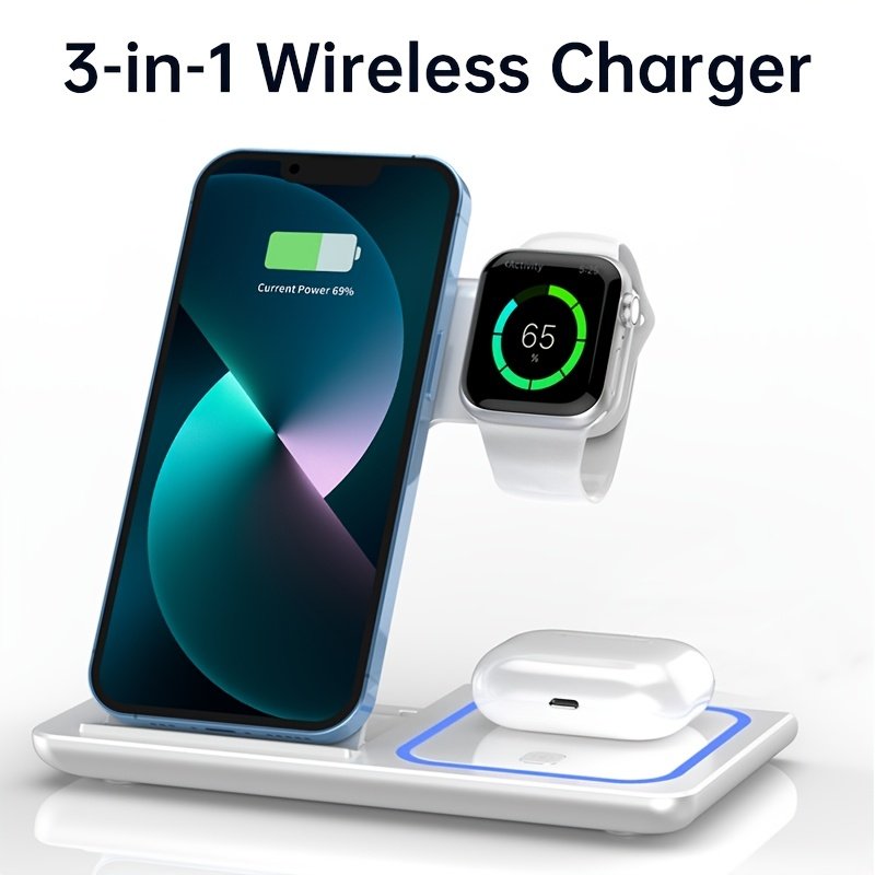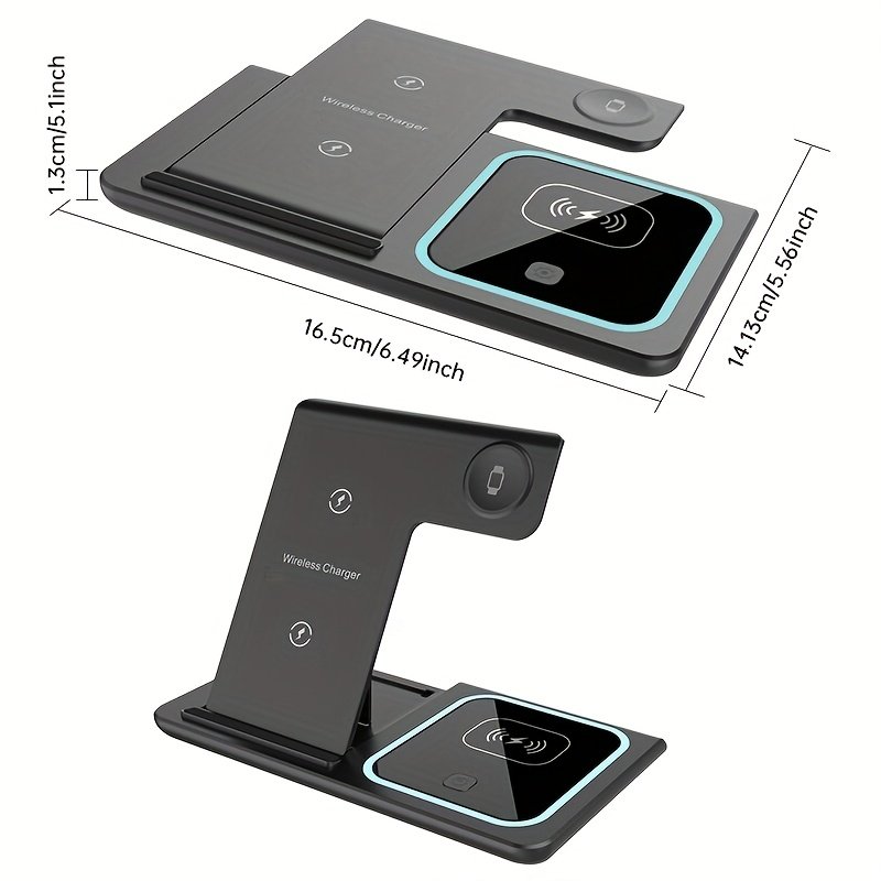 3-In-1 Portable Wireless Charger | Compatible with for iphone 15, 14, 13, 12, 11/ Pro/ Max/ / Plus, Airpods 3/ 2/ Pro, And Apple 1-9 – Magnetic USB Charging Dock with LED Light, Black, for iphone Charging Hub | Contemporary Charging Station | Stylis