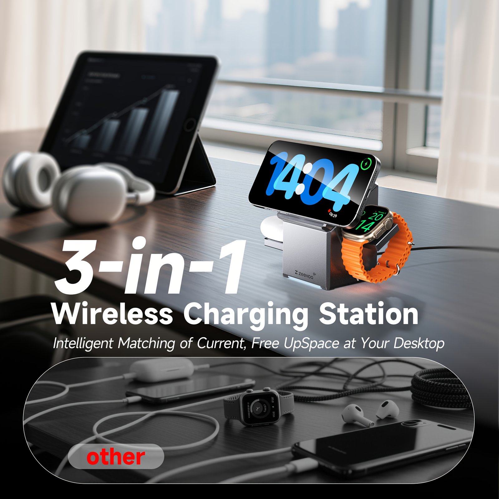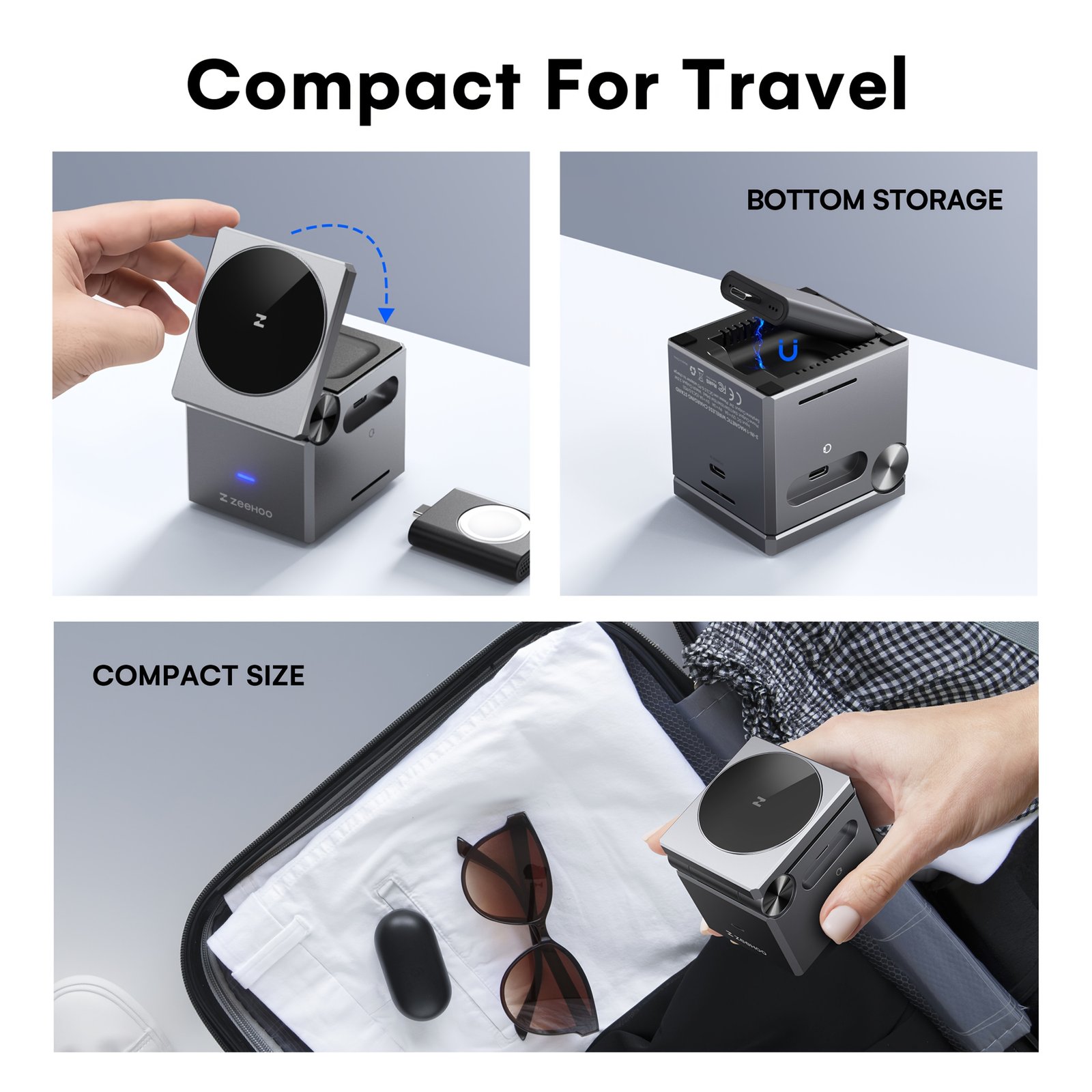 3-in-1 Wireless Charging Station ZEEHOO CubeTrick-X Qi2 15W Fast Charge | Universal USB Type-C, for , iPhone, AirPods