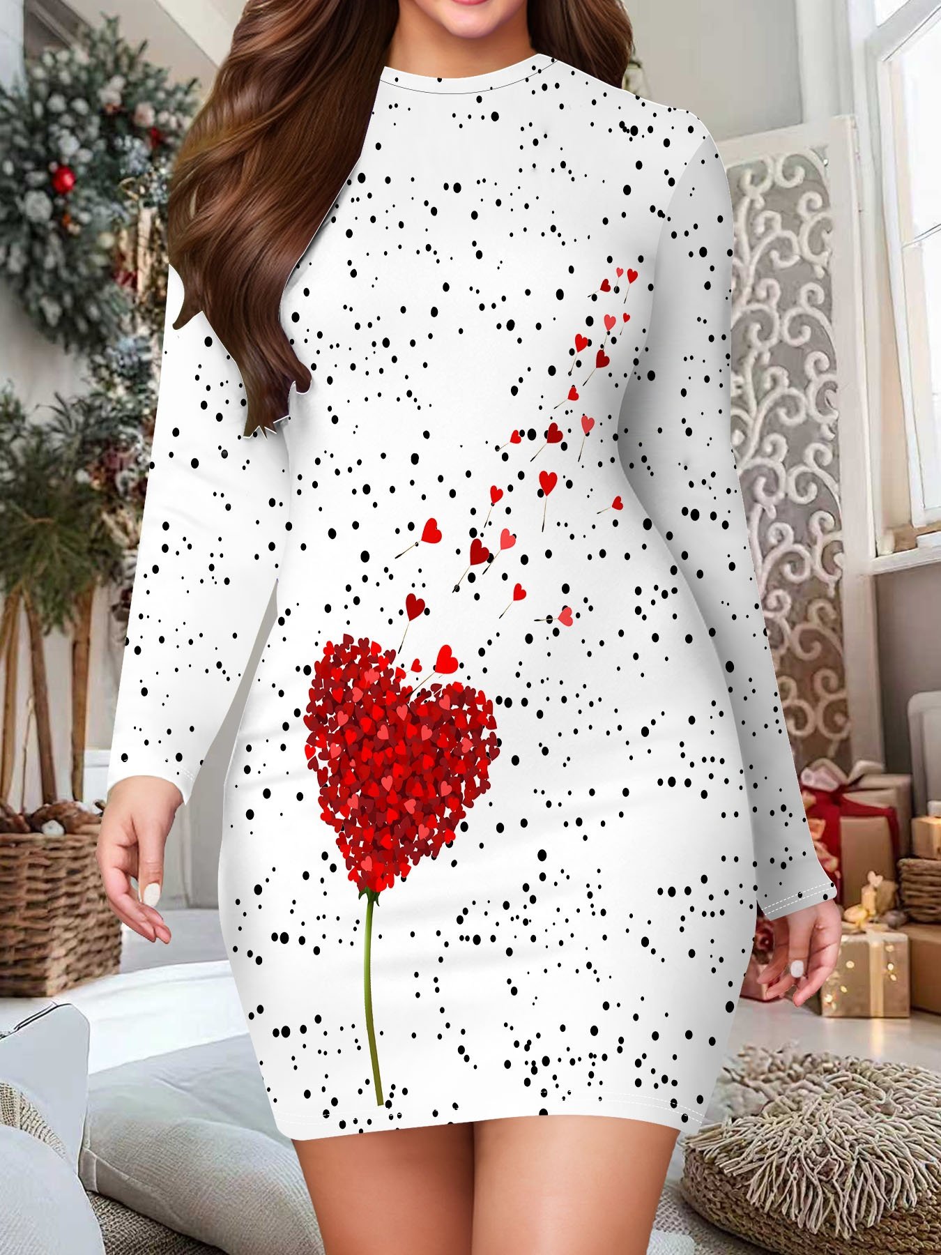 3D Printed Long-Sleeved Women’S Bodycon Dress | Waist-Cinching, Hip-Hugging, Sexy and Fashionable, Crew Neck, All Over Print, Perfect for New Year Party, Christmas, Valentine’S Day, and Thanksgiving Gifts