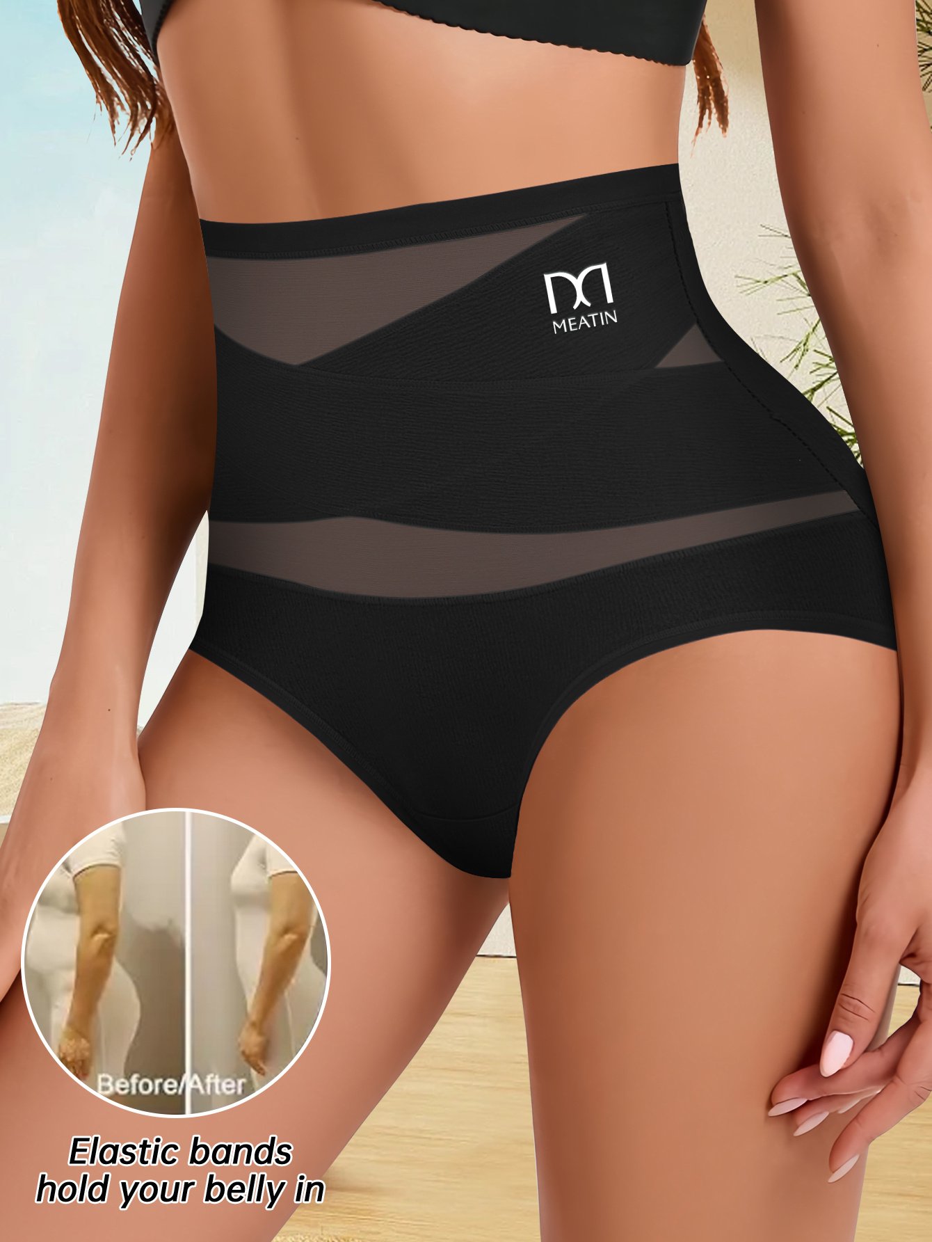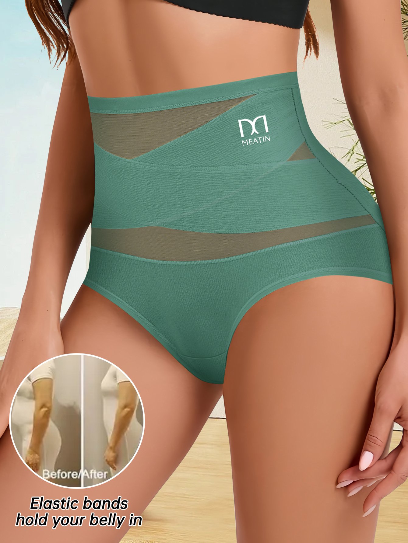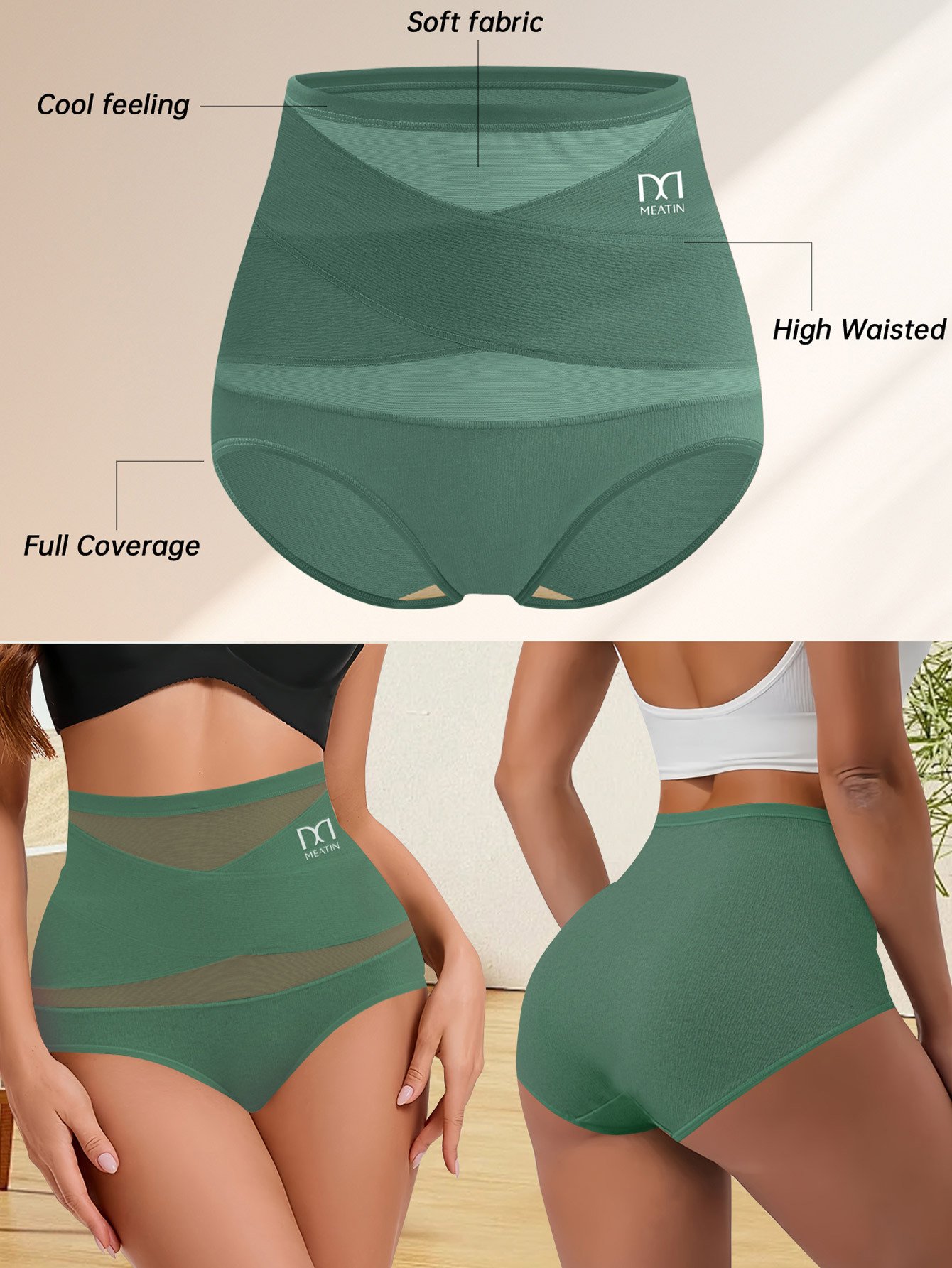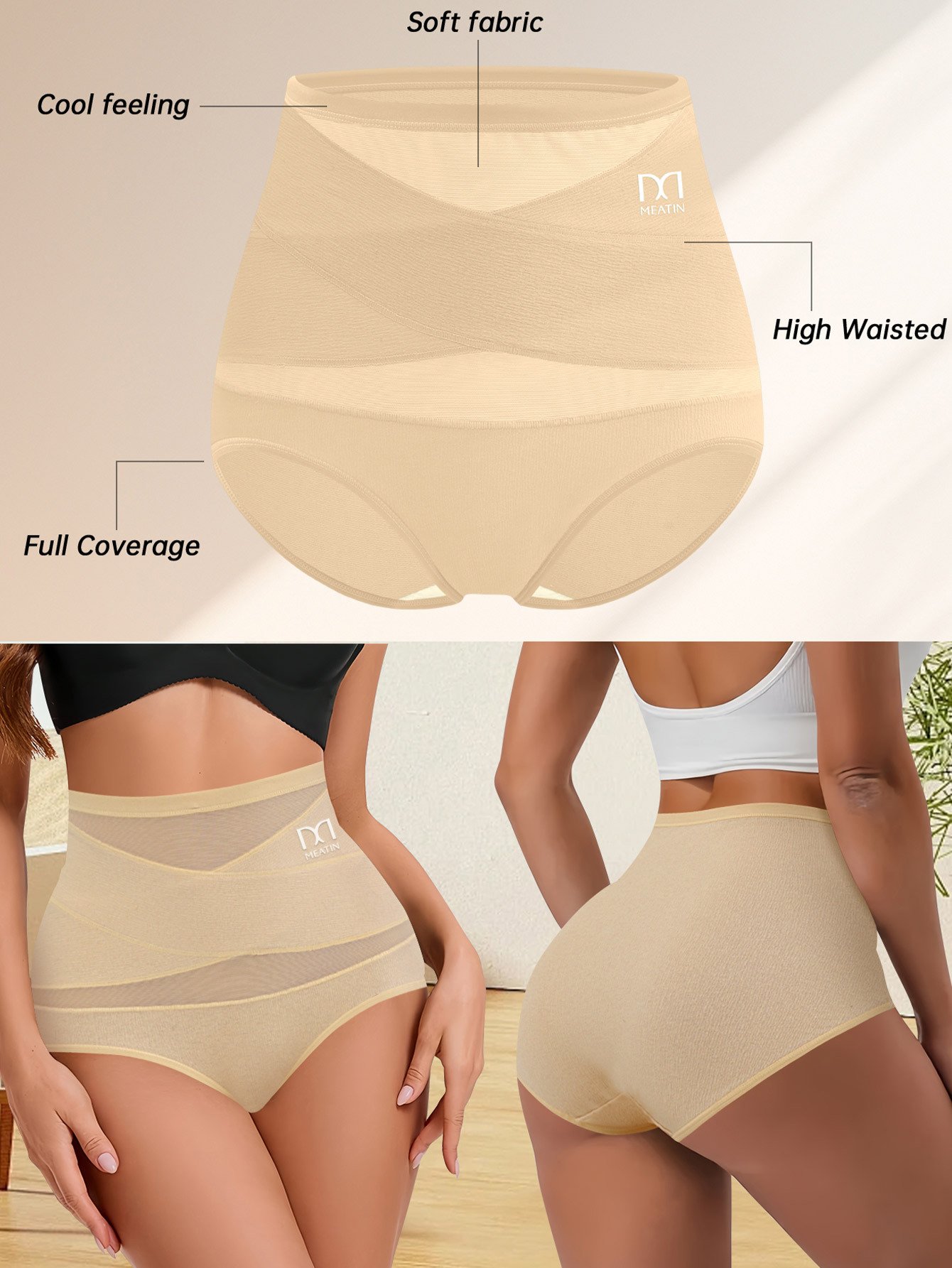 4-Pack QUASTI High-Waisted Tummy Control Shapewear Panties for Women, Elegant Cotton Briefs with Cross Strape, Breathable Knit Fabric, Solid Color, Medium Support, Adjustable Hip Lifting Underwear