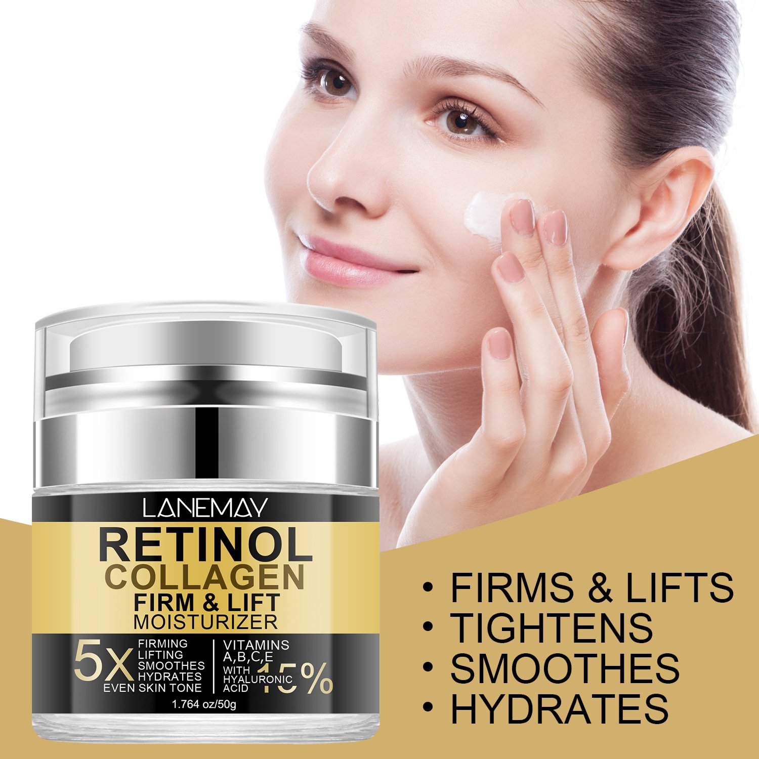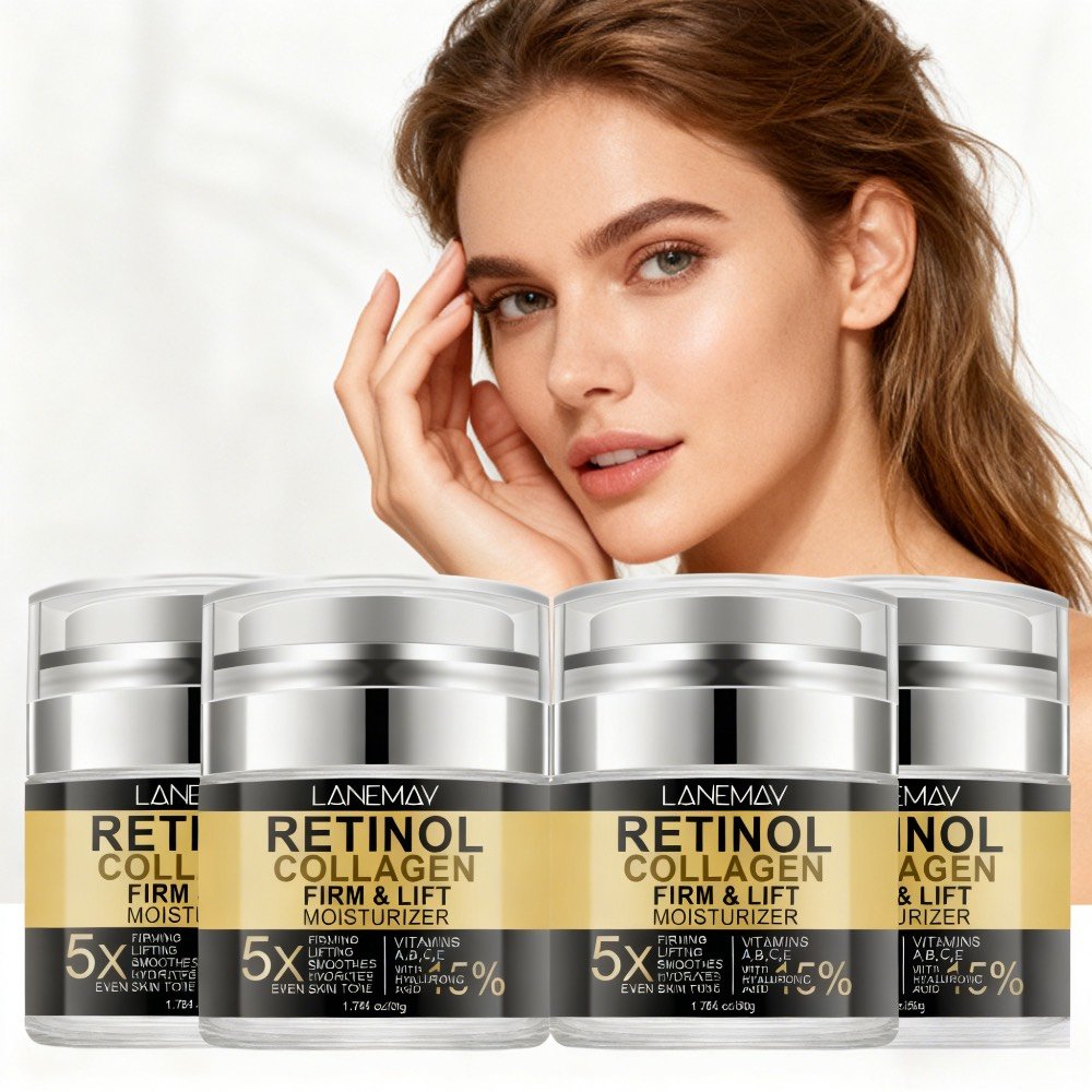 4pcs Retinol & Collagen Firm & Lift Moisturizer | Tightens, Hydrates & Smooths Skin, Night & Day Use, Unscented Cream, Suitable for All Skin Types