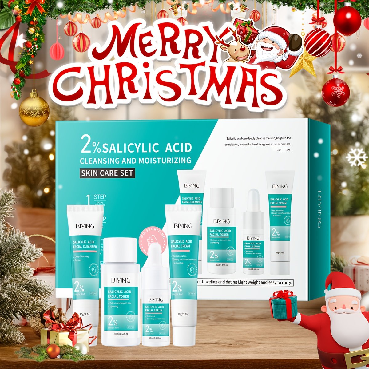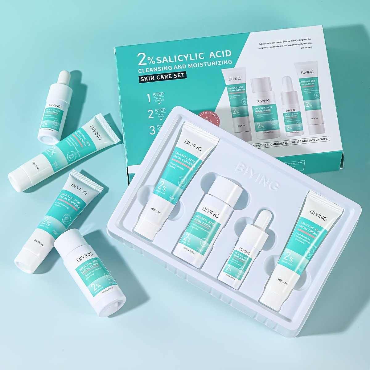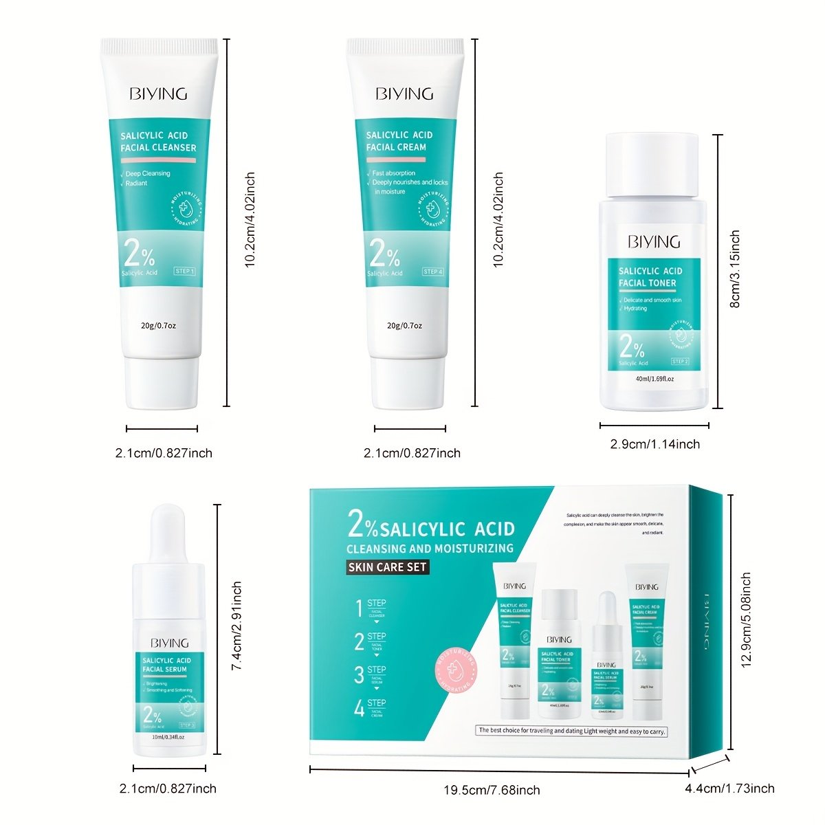4pcs/Set Salicylic Acid Moisturizing Facial Light Beige Care Set 4in 1, Deeply Nourishing and Brightening Light Beige, Lightweight and Easy-to-absorb Light Beige Care Gift Box, Suitable for Face and Neck, Portable Set, Ideal for Travel and Holiday