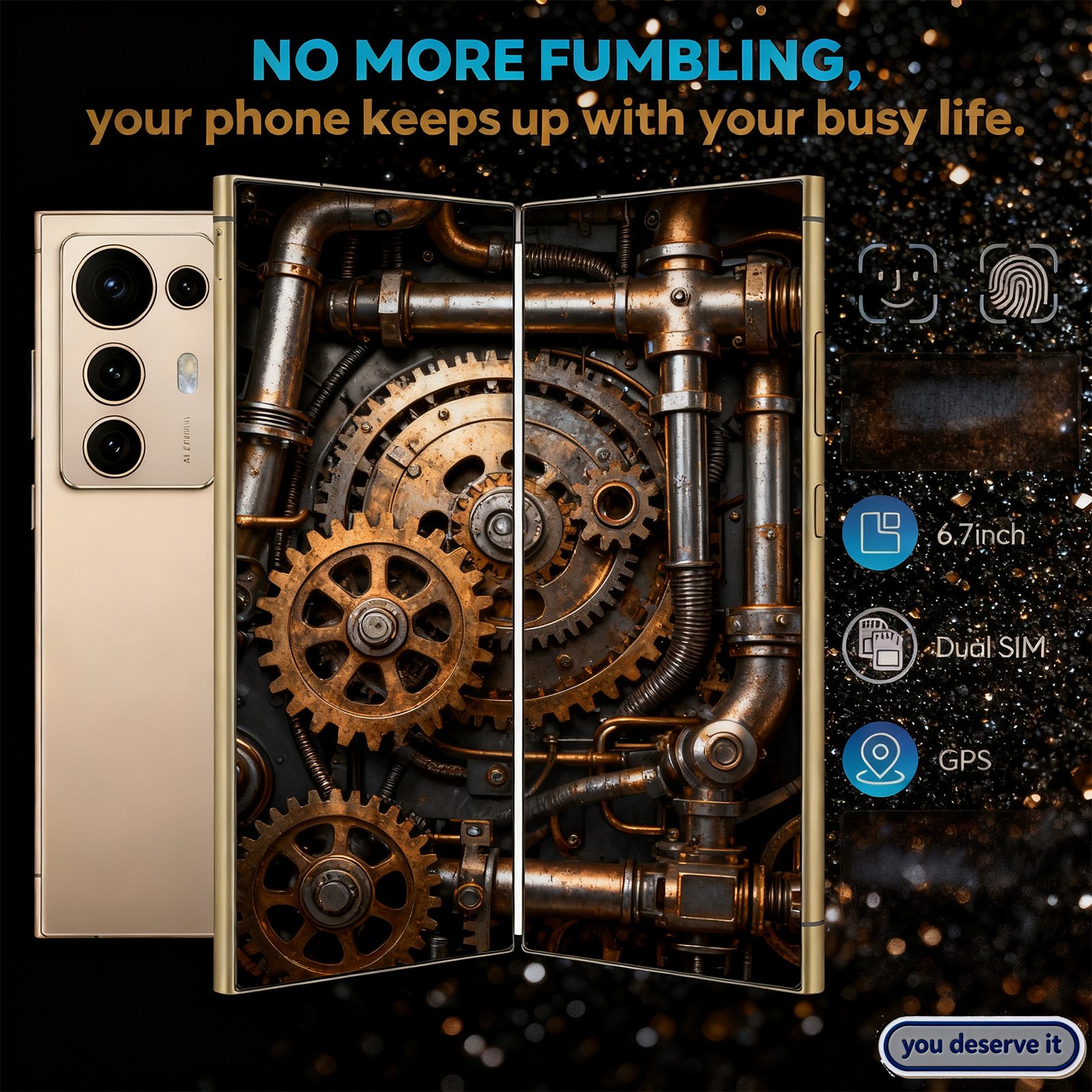 5+128GB 2K 6.7Inch 5G Wireless Smartphone | Silver Base with Satin Aluminum Rivets, Bold Urban Industrial Style, Dual SIM, 48MP Front Camera, USB Type-C Charging