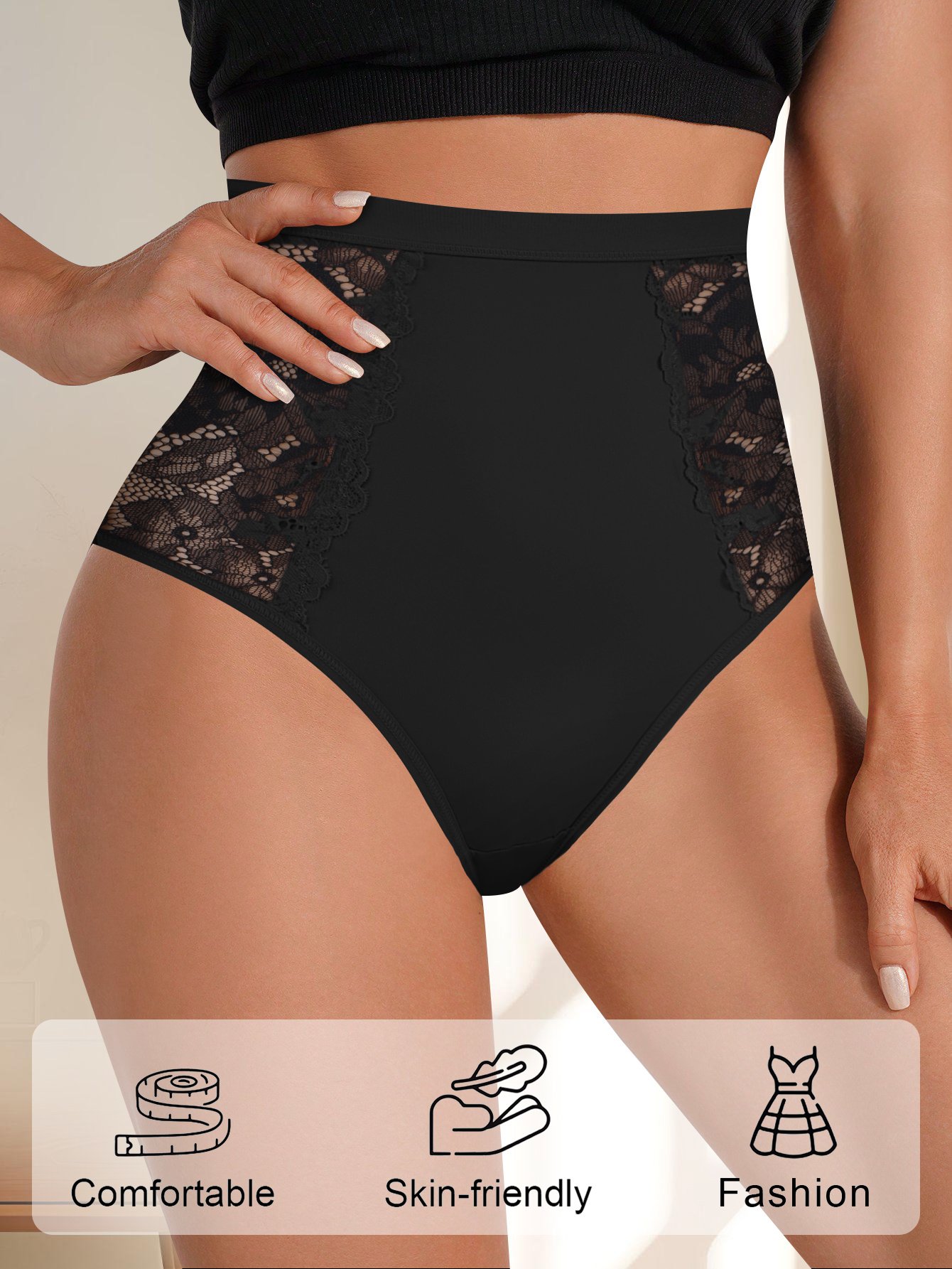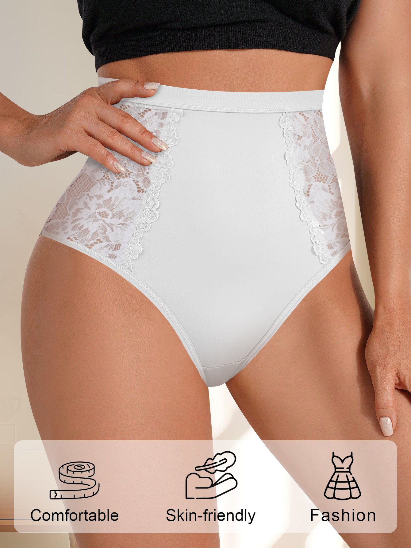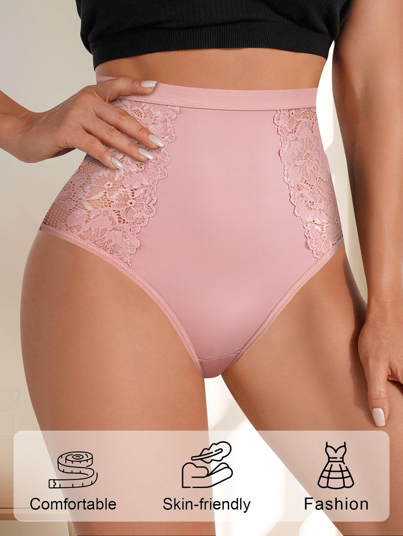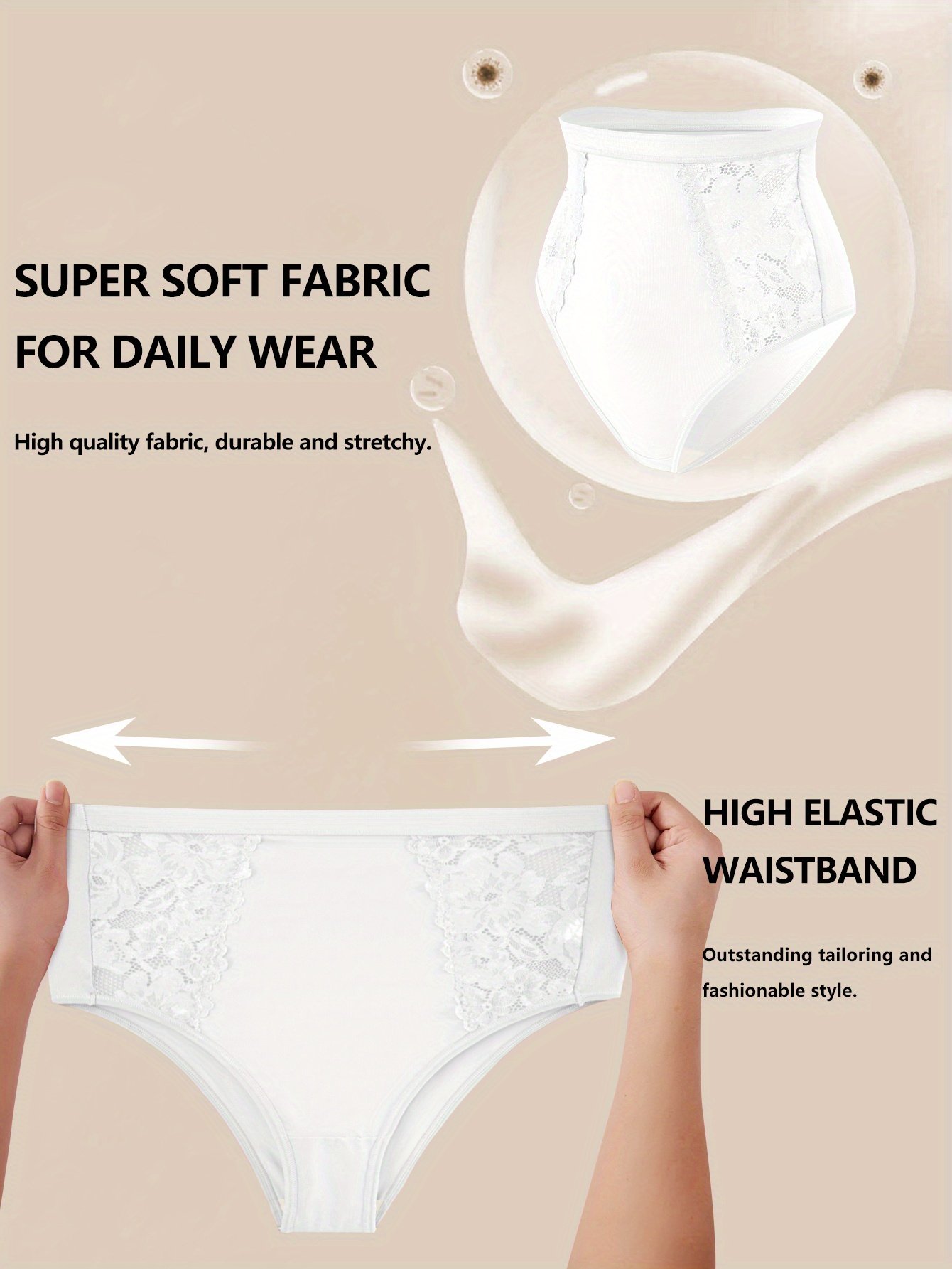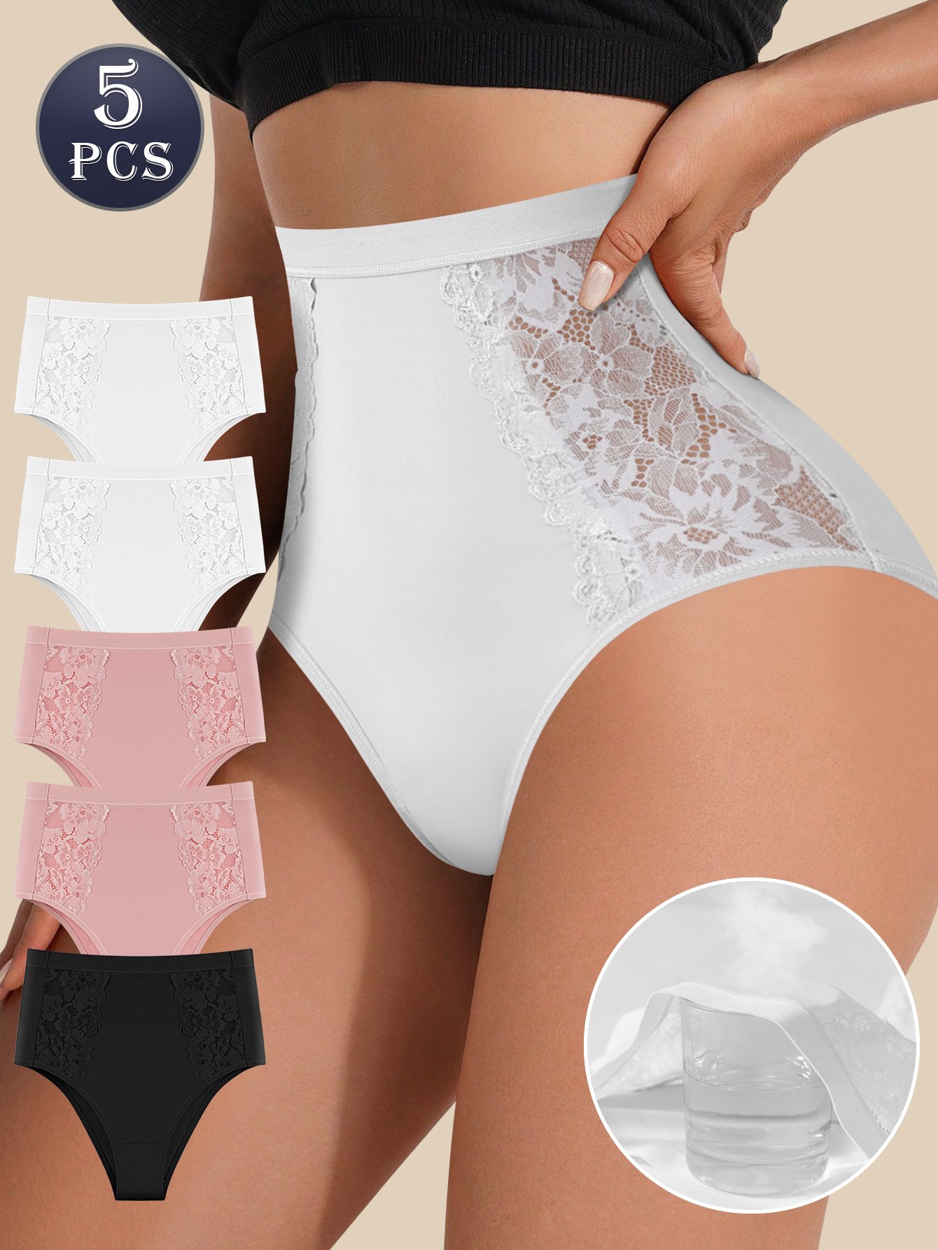 5pcs Women’S Stylish Lace-Trimmed High-Waisted Triangle Panties, Comfortable And Breathable