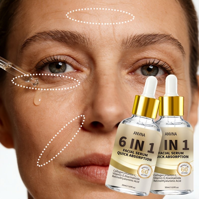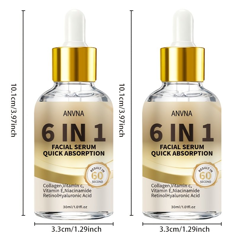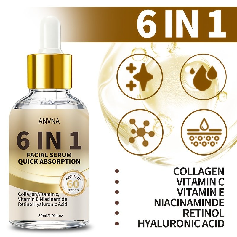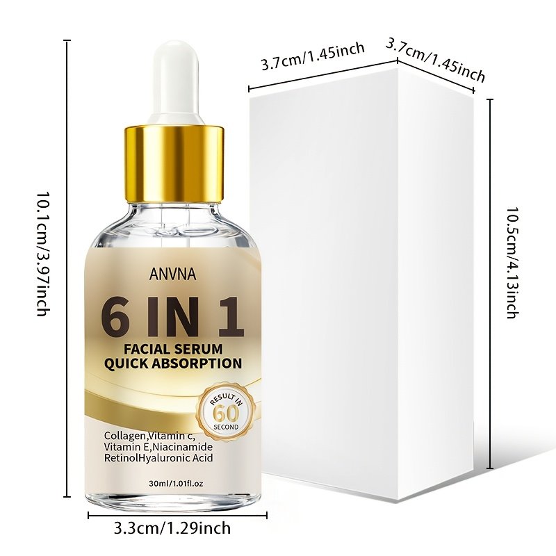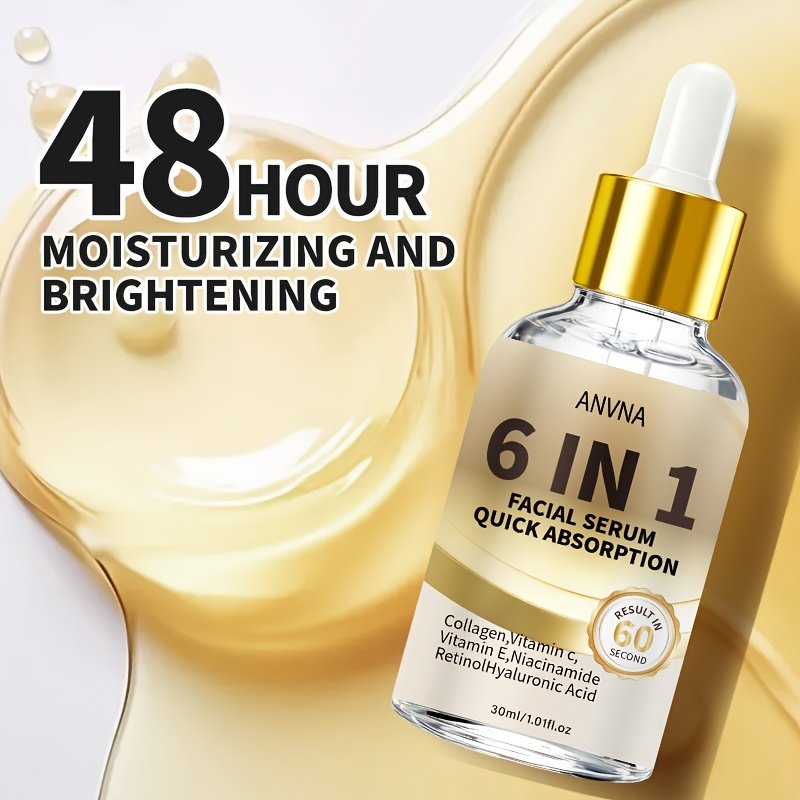 6-in-1 Facial Serum | Rich in Niacinamide, Hyaluronic Acid, Retinol, Collagen, Vitamin C | Deep Nourishment, 48H High Moisturizing, Brightening, Suitable for All Skin Types, Scented, Quick Absorption, Ideal for Travel