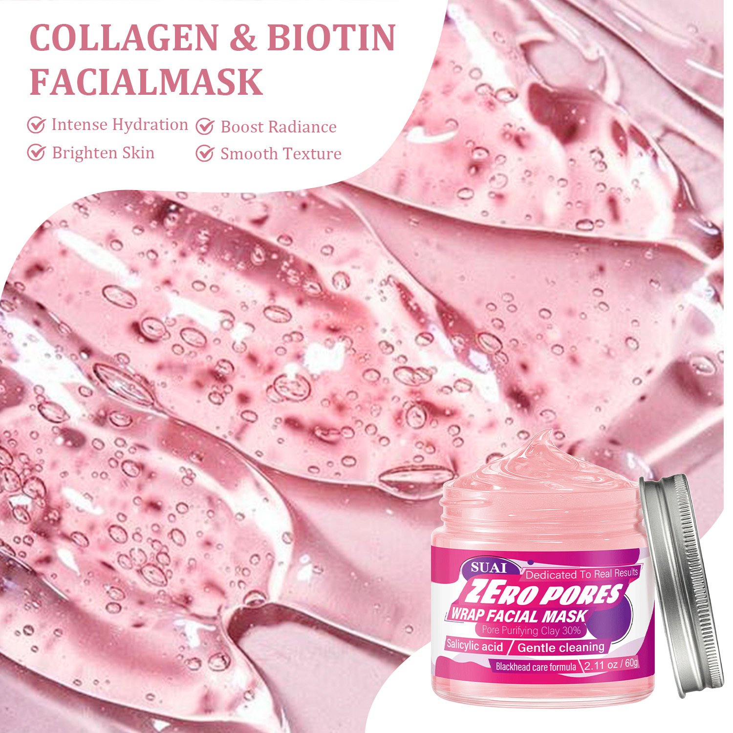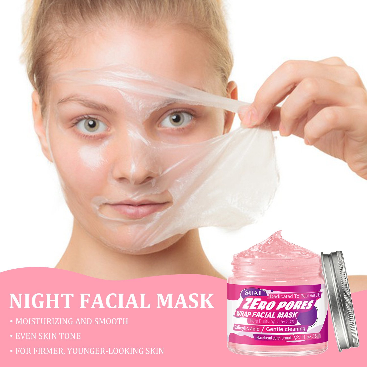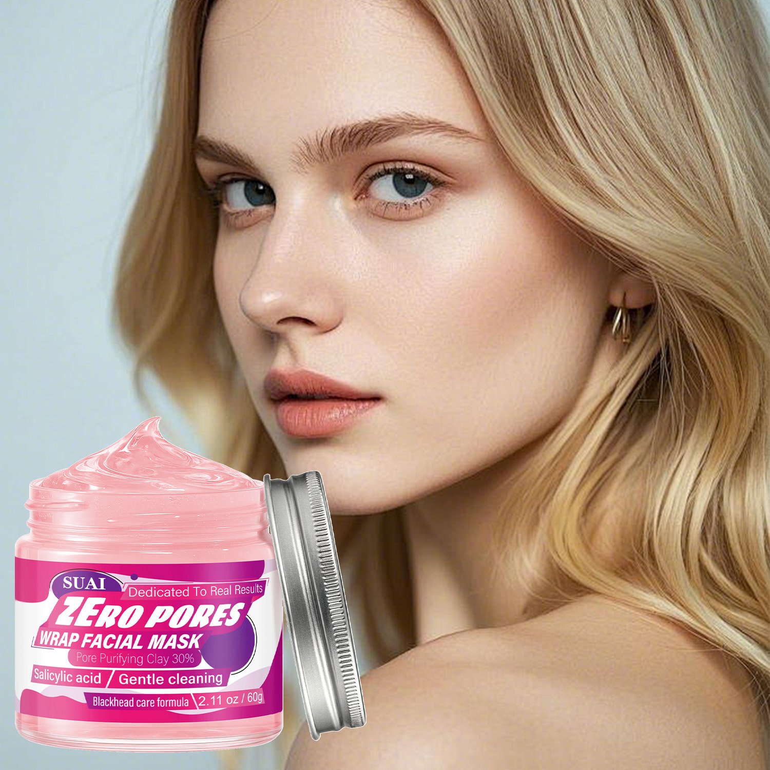 60g Salicylic Acid Facial Mask | Zero Pores, Blackhead Care Formula, Gentle Cleaning, Instant Firming and Lifting, Pore Refining, Hypoallergenic, Hydrating, Moisturizing, Rose Scented, Smooth Texture, for all Skin Types, SUAI