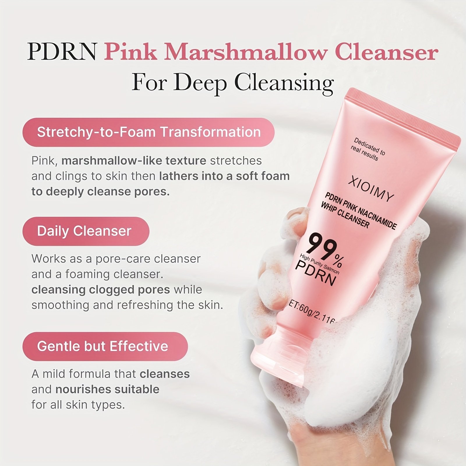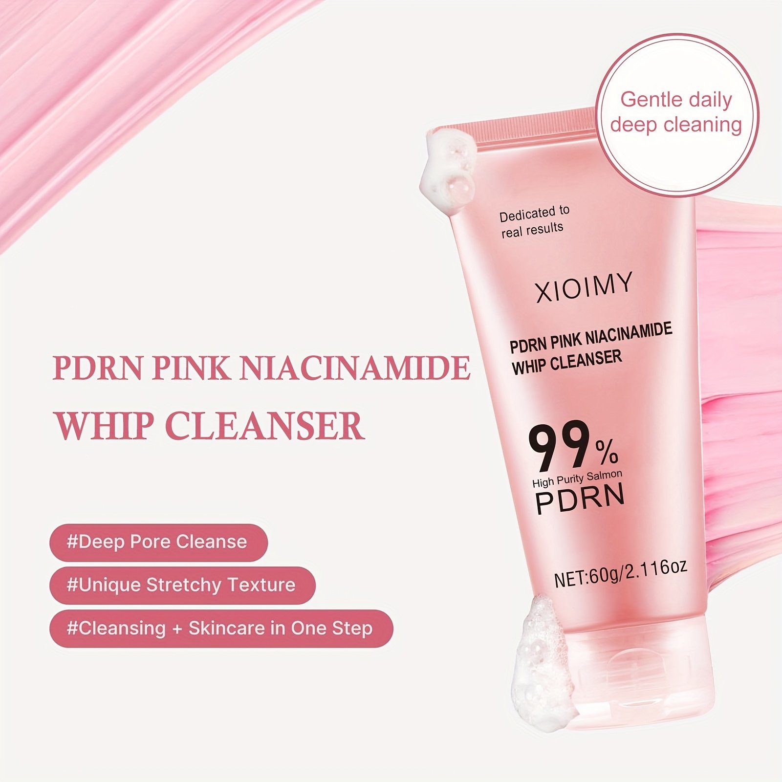 60g Salmon and Niacinamide Pink Facial Cleanser • Efficiently and Deeply Cleanses Facial Skin • Deeply Moisturizes • Cleanses and Cares for the Skin • Effectively Moisturizes • Makes the Skin Smoother, More Hydrated, Delicate, and Brightens the Complexion