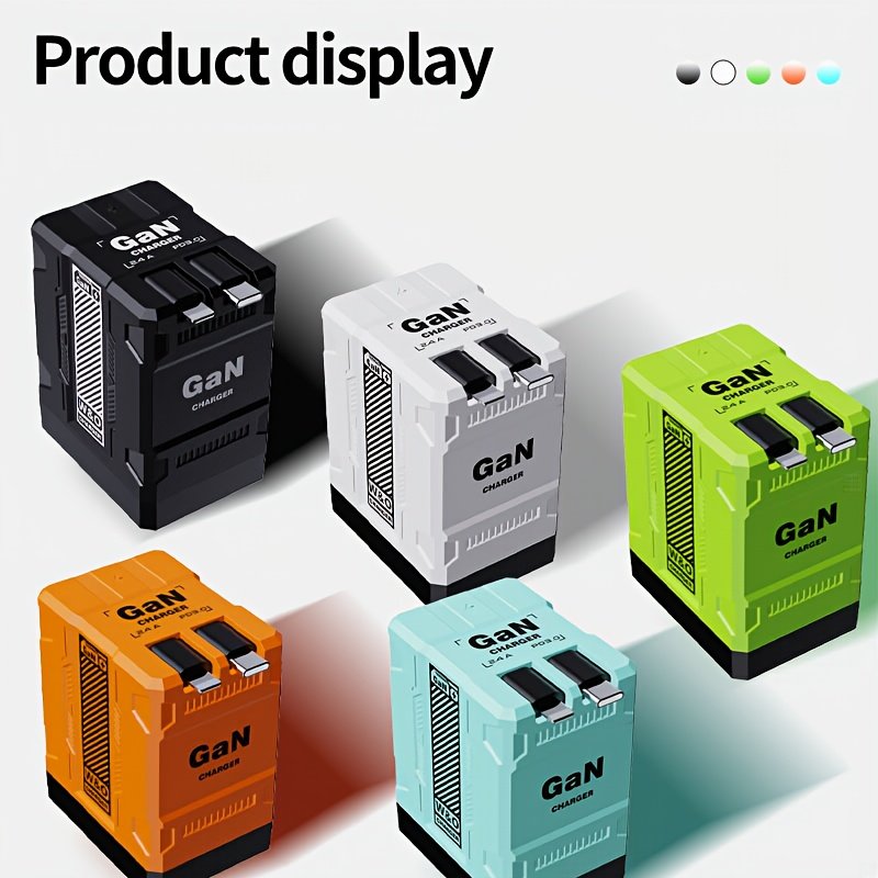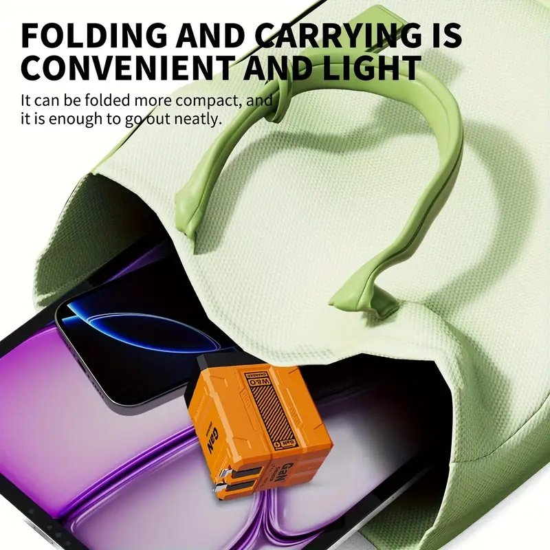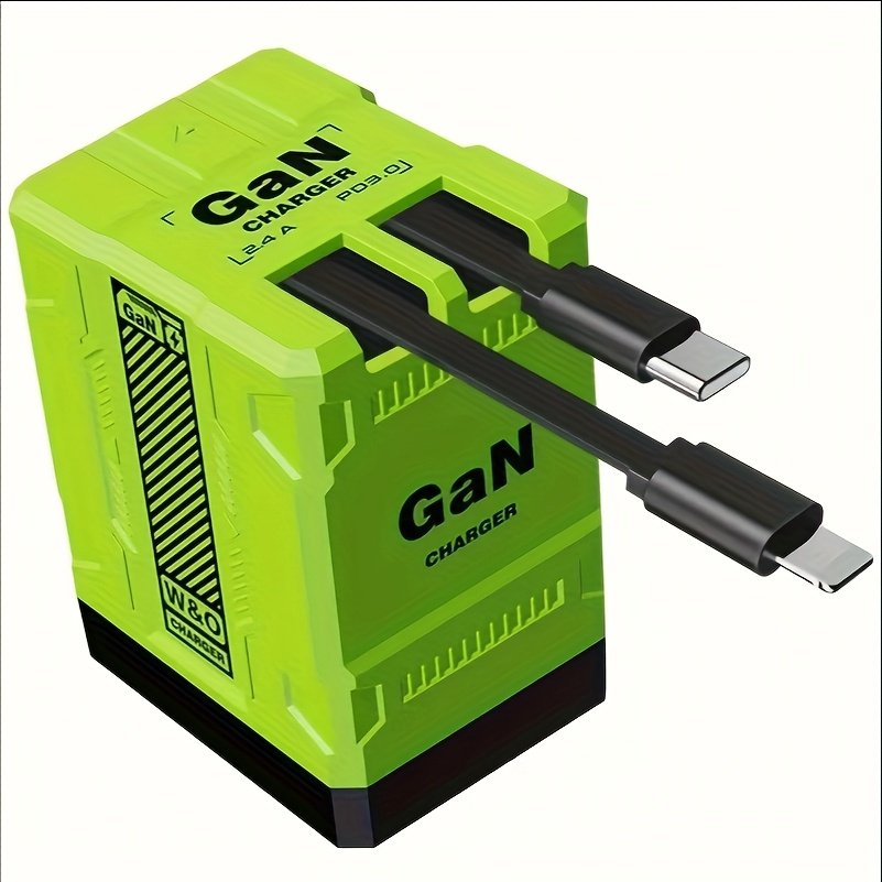 65W Gan Quick Charger Featuring a Retractable Cable And Foldable Plug, Ideal Travel Adapter for Iphone 16/Pro/Pro Max/15/14, Compatible with Galaxy/Ultra Series – Available in Green, Yellow, Black, Blue, And White