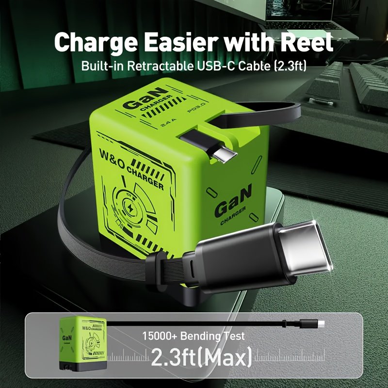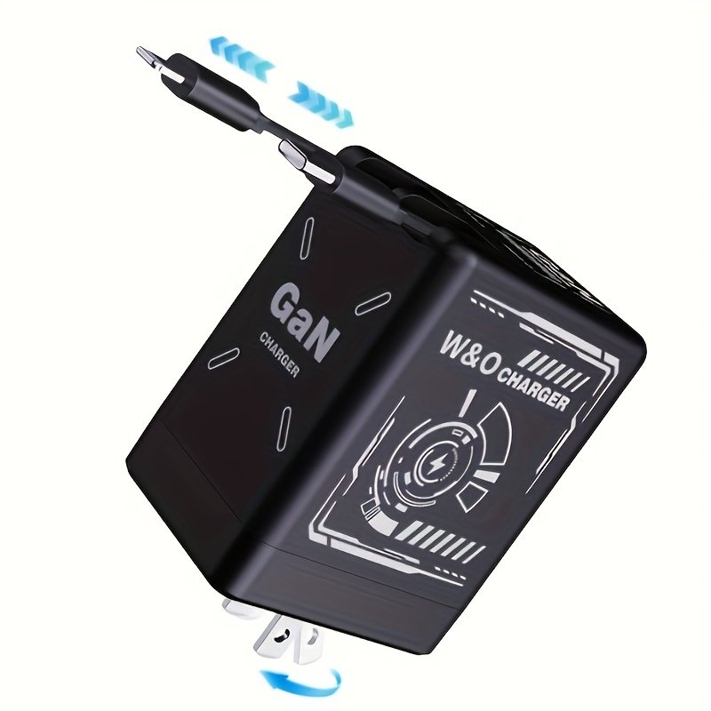 66W Gallium Nitride Simple And High Appearance Level Charger.Retractable USB C Wall Charger, Portable Fast Charging With USB C Retractable Cable.