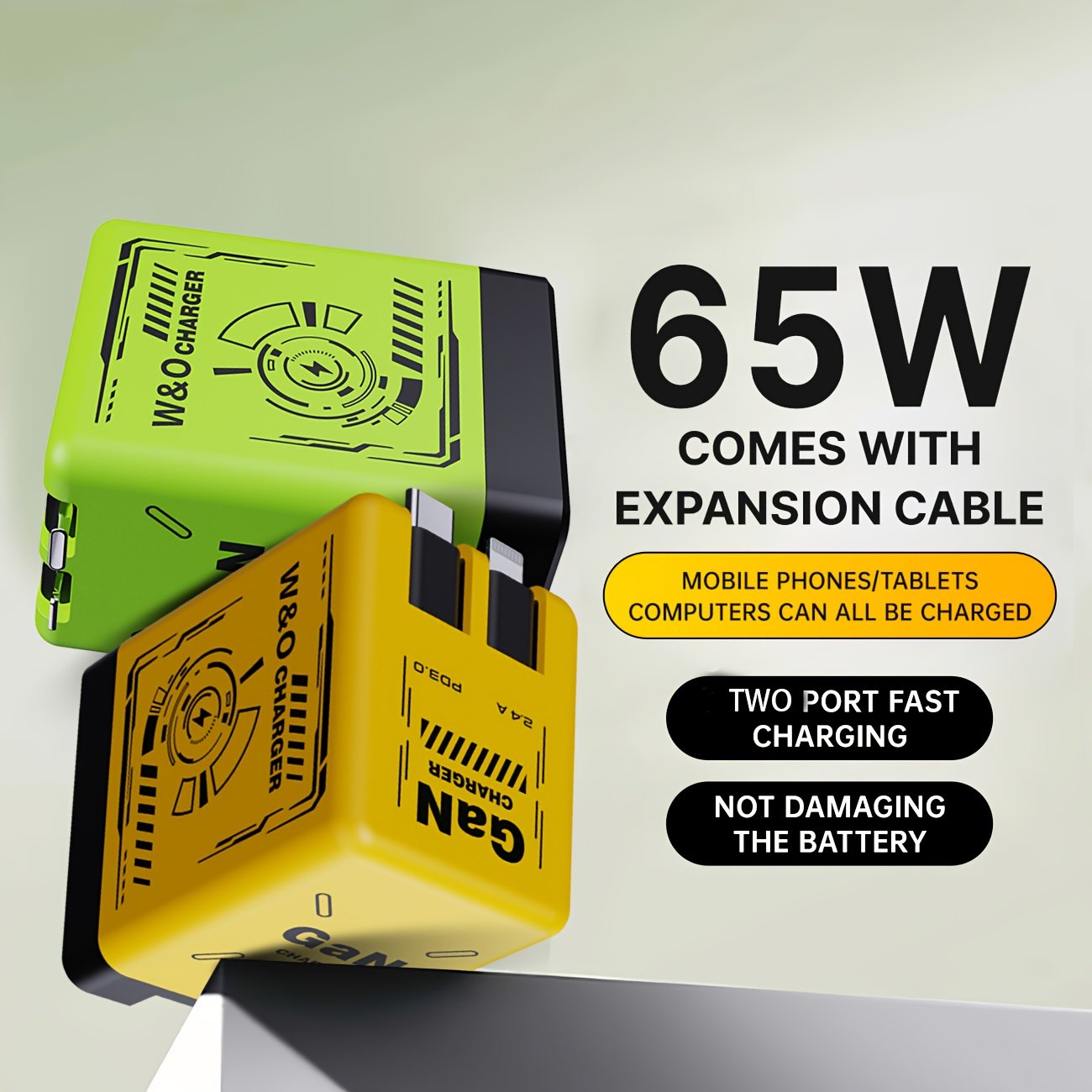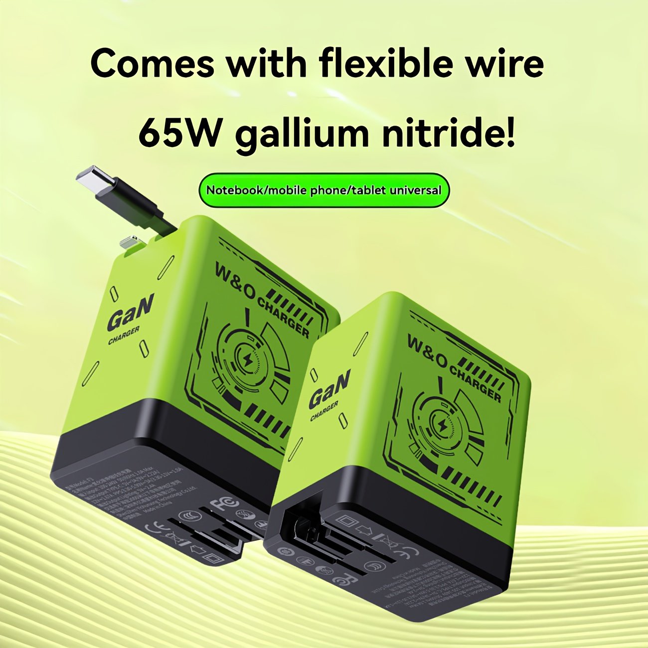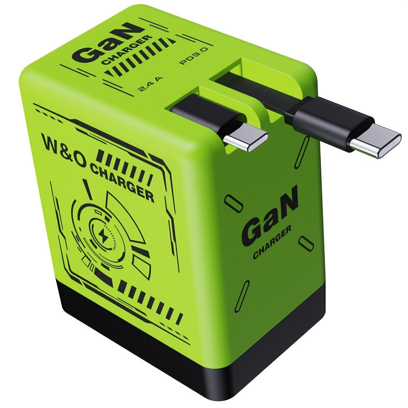 66W Gan Quick Charger Featuring a Retractable Cable And Foldable Plug, Includes a Portable Charging Adapter for Iphone 16/Pro/Pro Max/15/14, Compatible with Galaxy/Ultra Series in Green/Orange/Black
