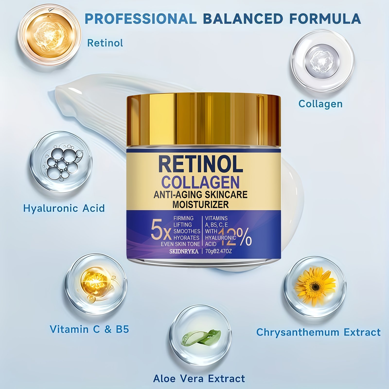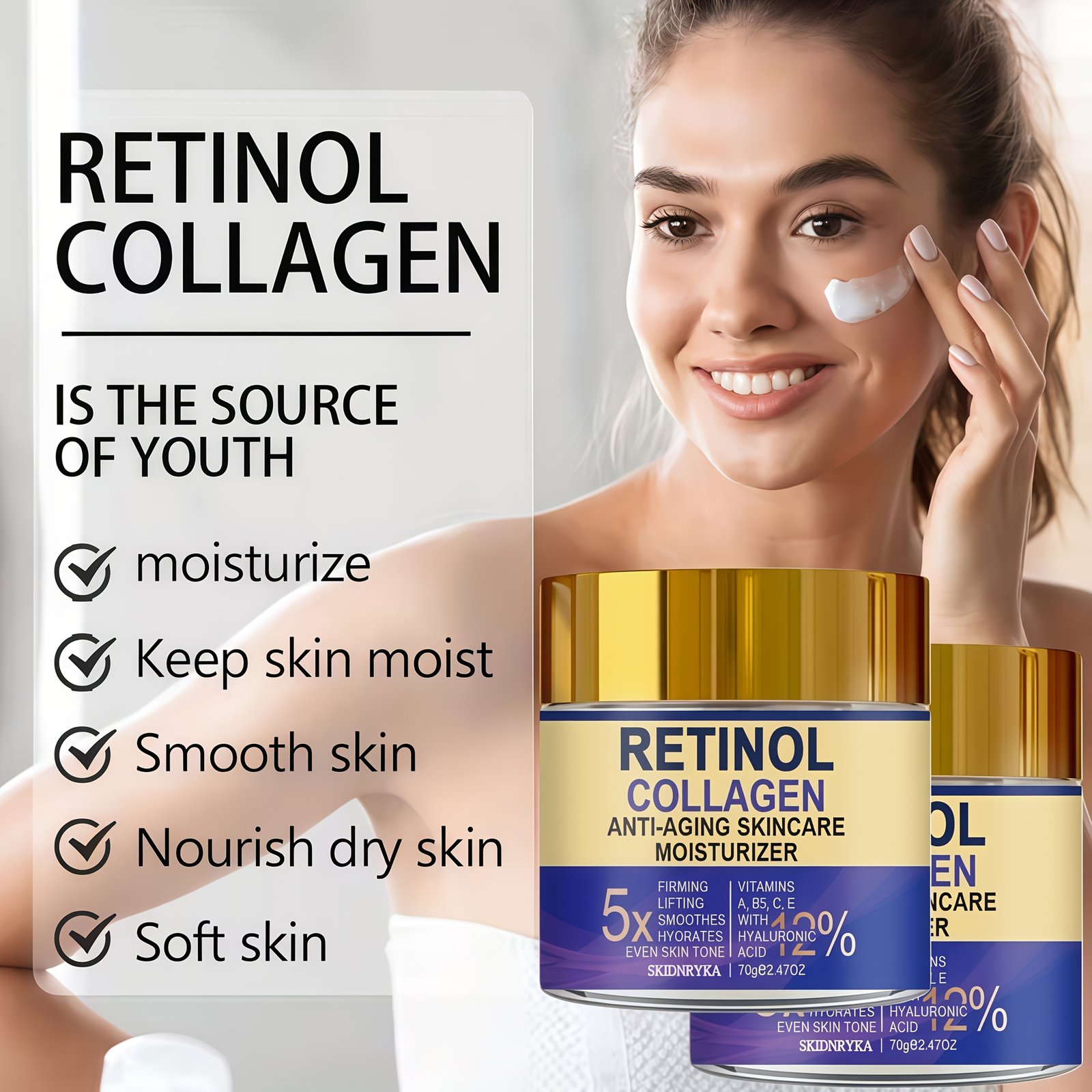 70g Retinol Moisturizing Cream, Deeply Hydrates The Skin with Hyaluronic Acid And Collagen, Skincare to Make The Skin Look More Youthful. for Daily Facial Care, Morning And Night Creams Suitable for All Skin Types. Gifts for