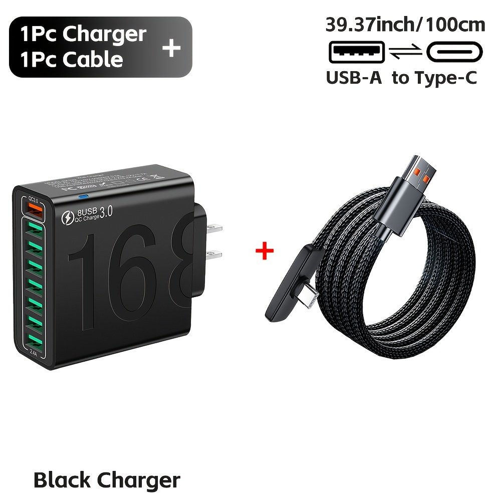 8 Ports USB Mobile Phone Fast Charging Adapter, QC3.0 USB Quick Charge Adapter, US Plug Portable Convenient Travel Charger Wall Charger
