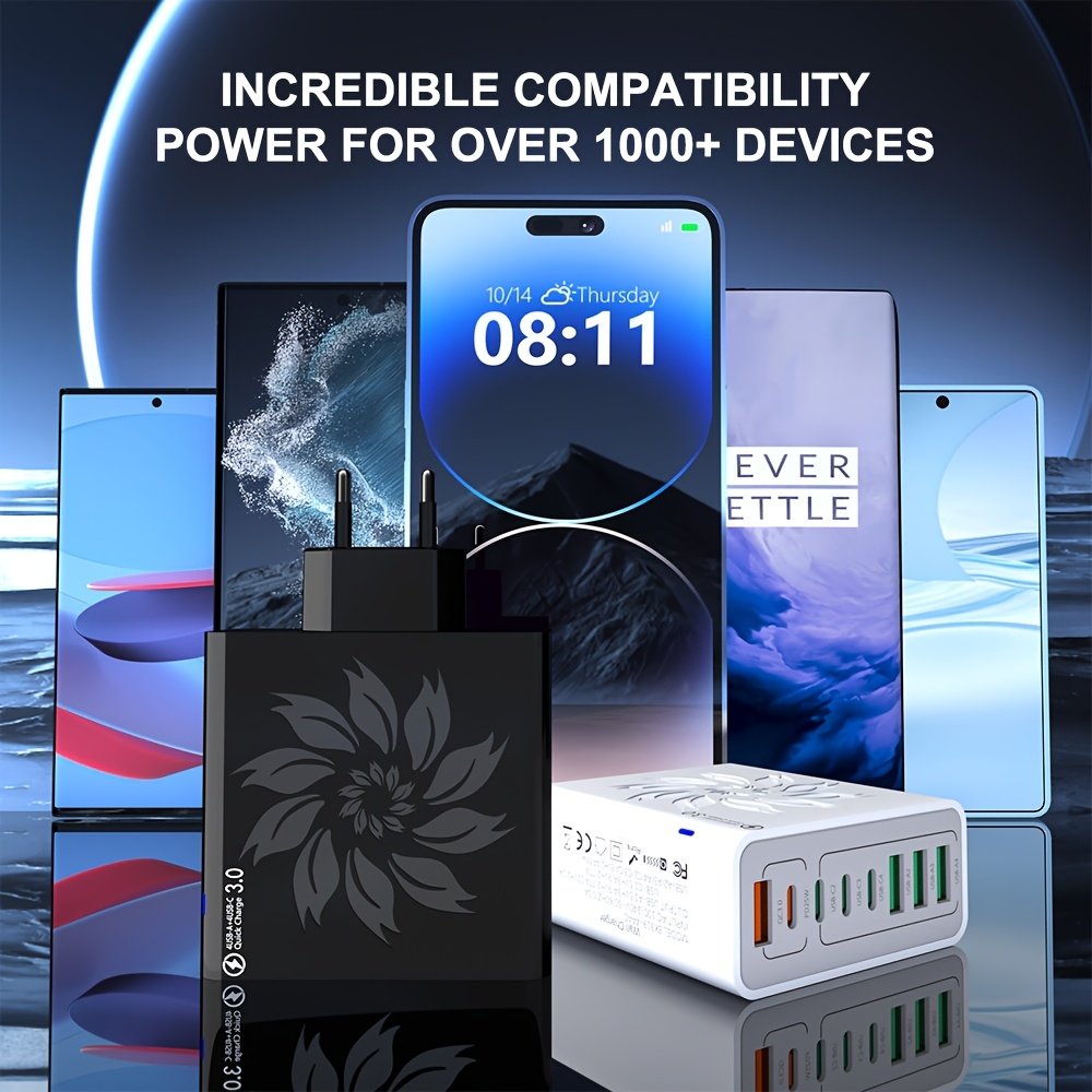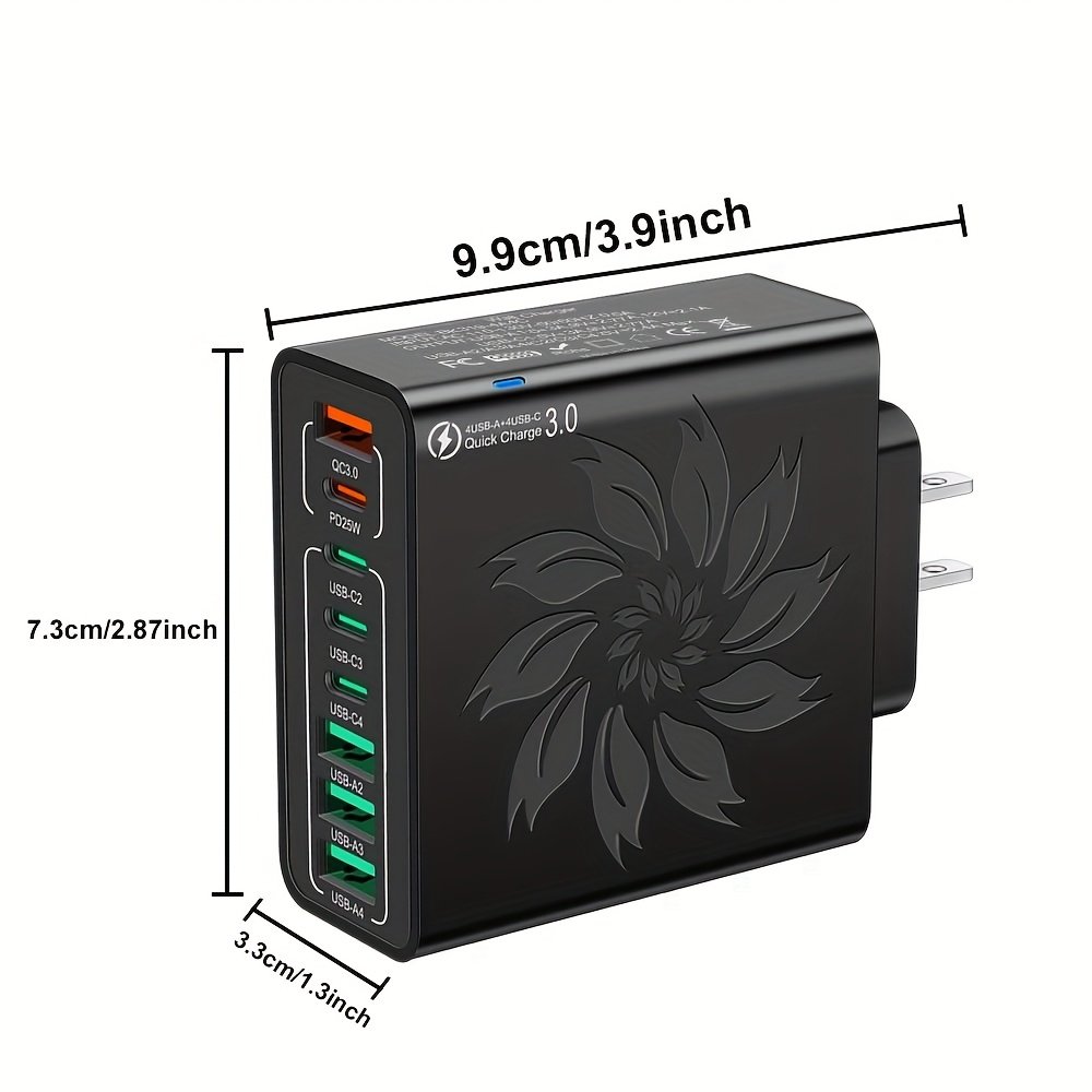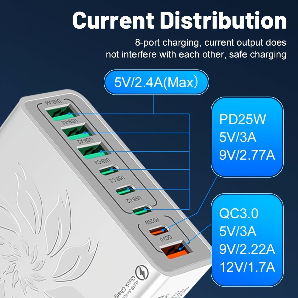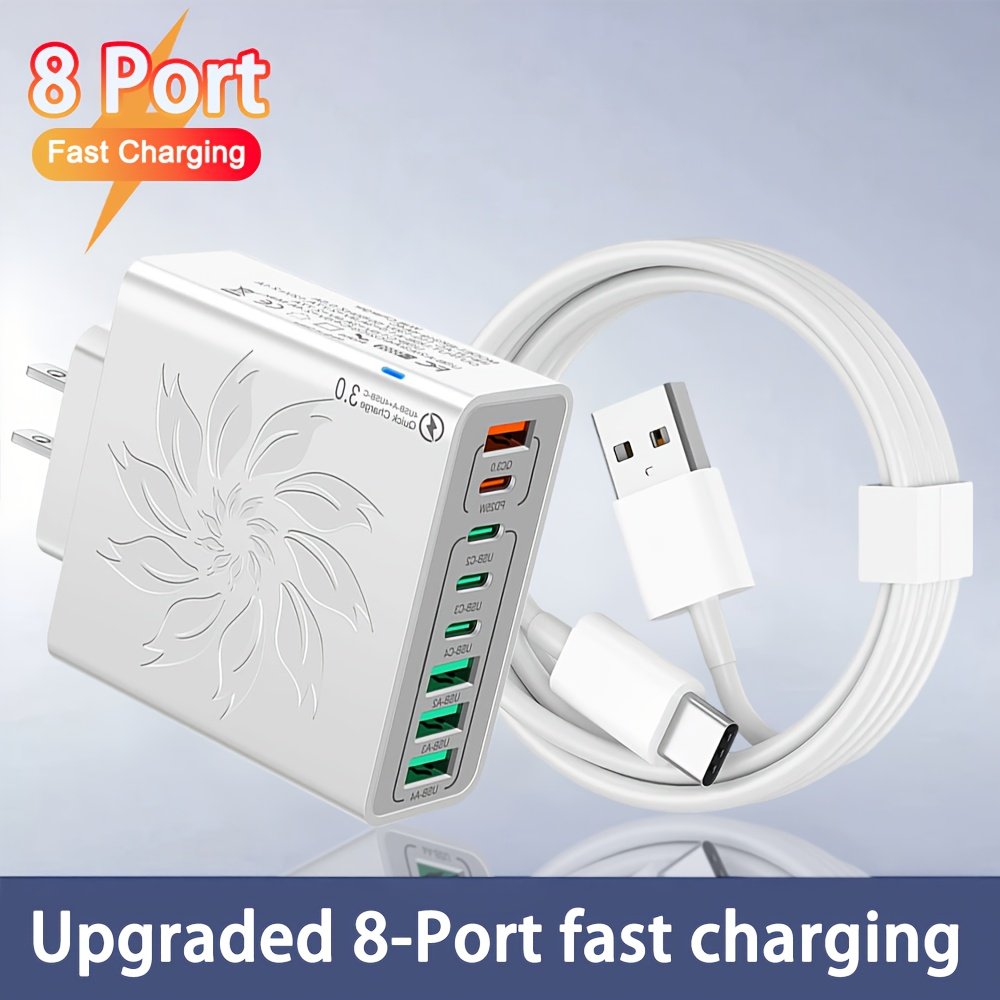 8IN1–Fast Charging USB Type C Wall Charger Block, 4USB C + 4USB A Multi-Port Plug, 8-Port Power Adapter Block, Plug for Indicator Light – for iPhone 16/ 15/ 13/ XR/ SE Pro/ Mini/ Air, for Google Pixel/ Pixel 3a/ XL for Samsung – Multi-Function Home