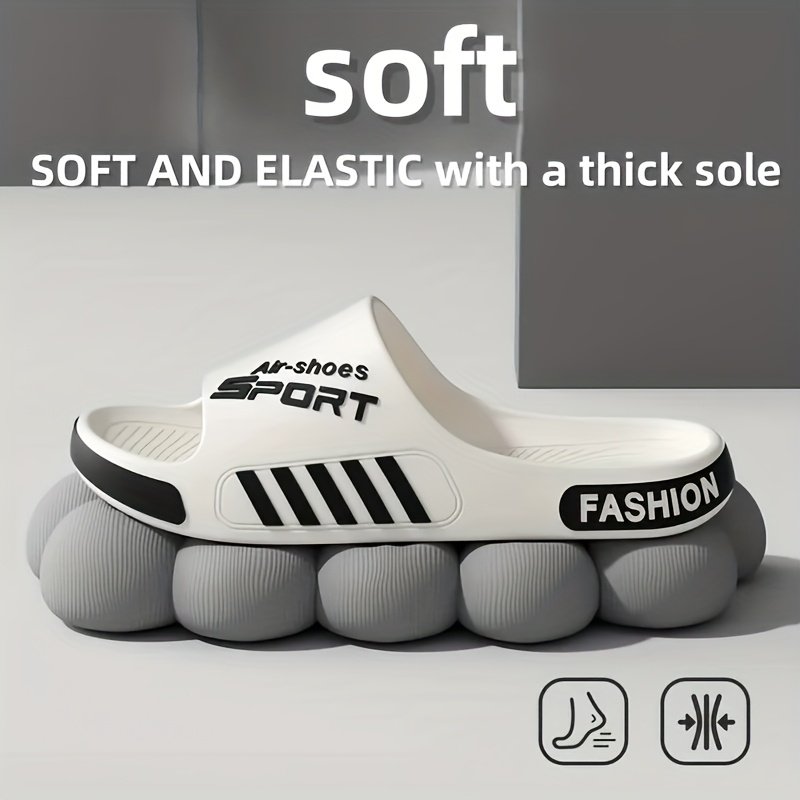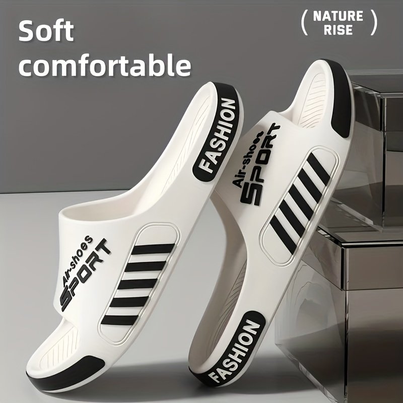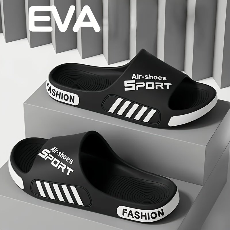 A Pair of EVA Slippers with a Sporty Design, Featuring a Cloud-like Soft and Comfortable EVA Sole. Simple and Stylish, They Are Versatile for Both Home and Outdoor Casual Wear. Suitable for Travel, Beach Leisure, and as Essential EVA Sandals for Men