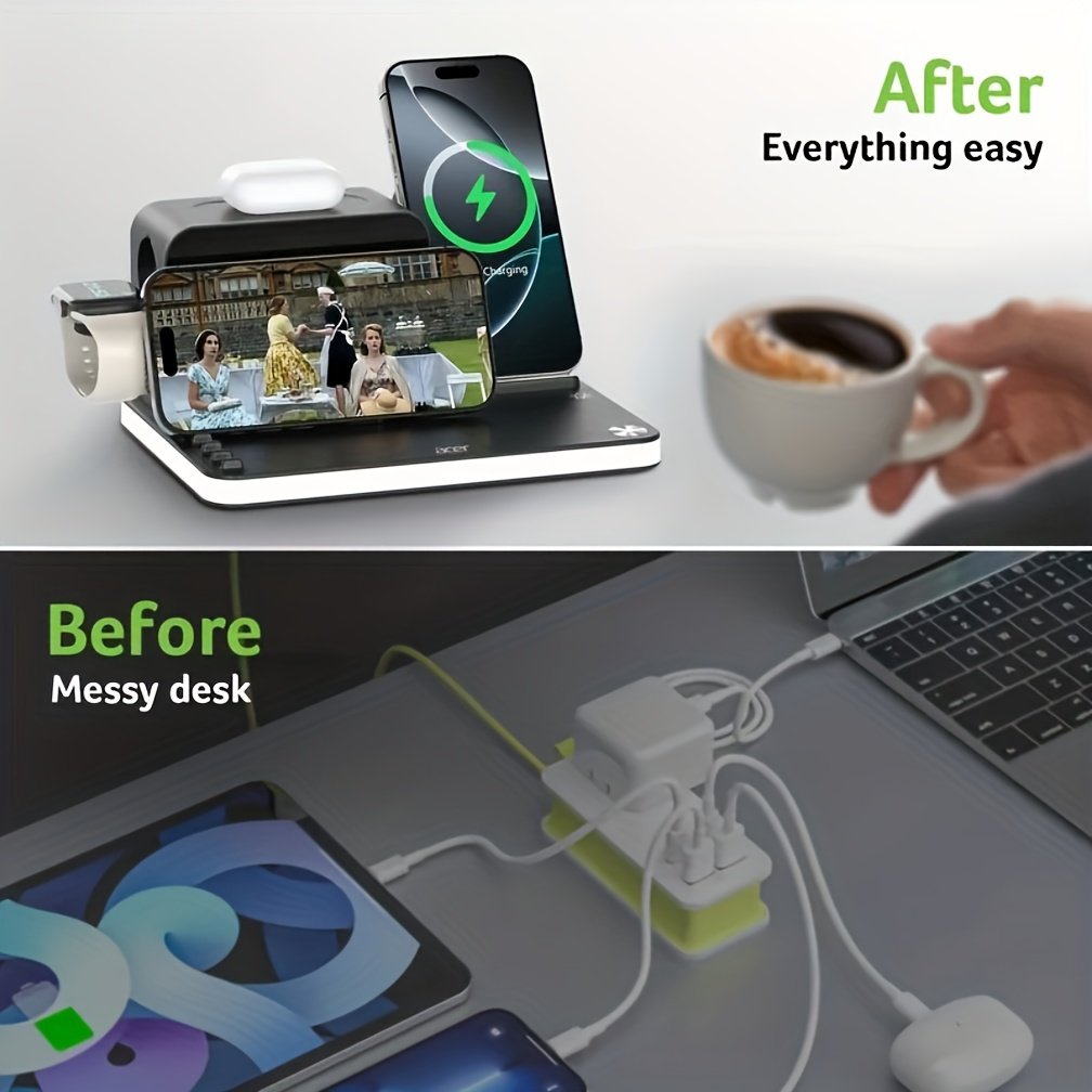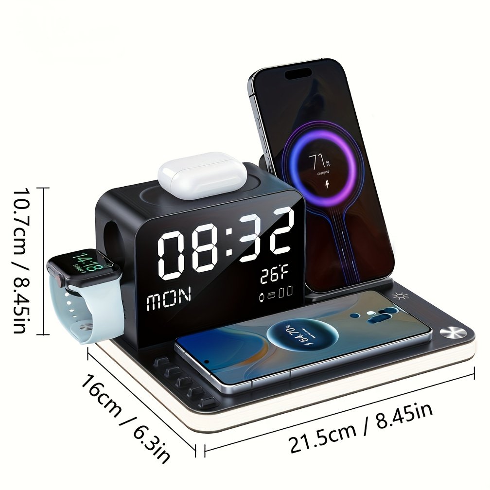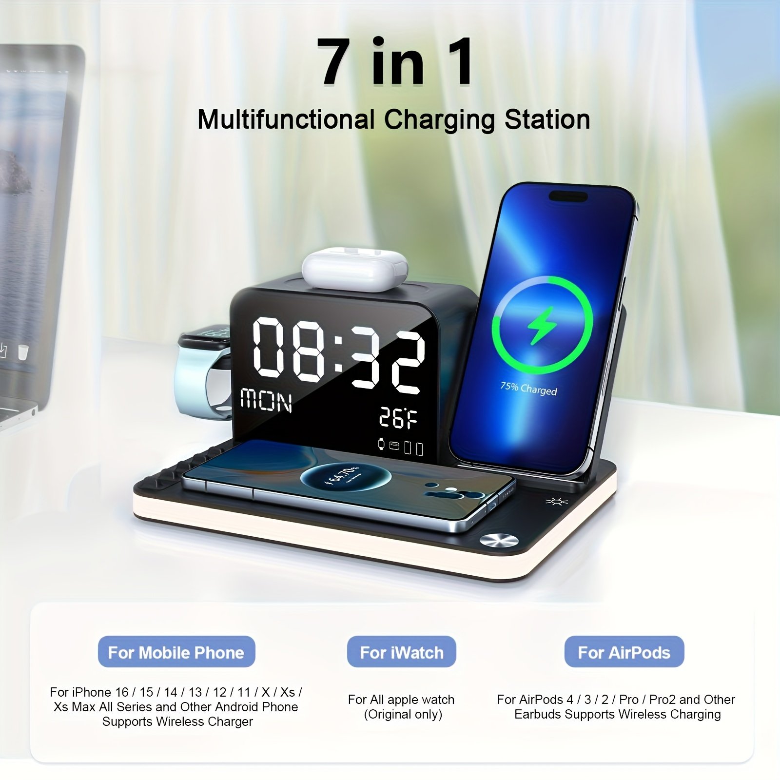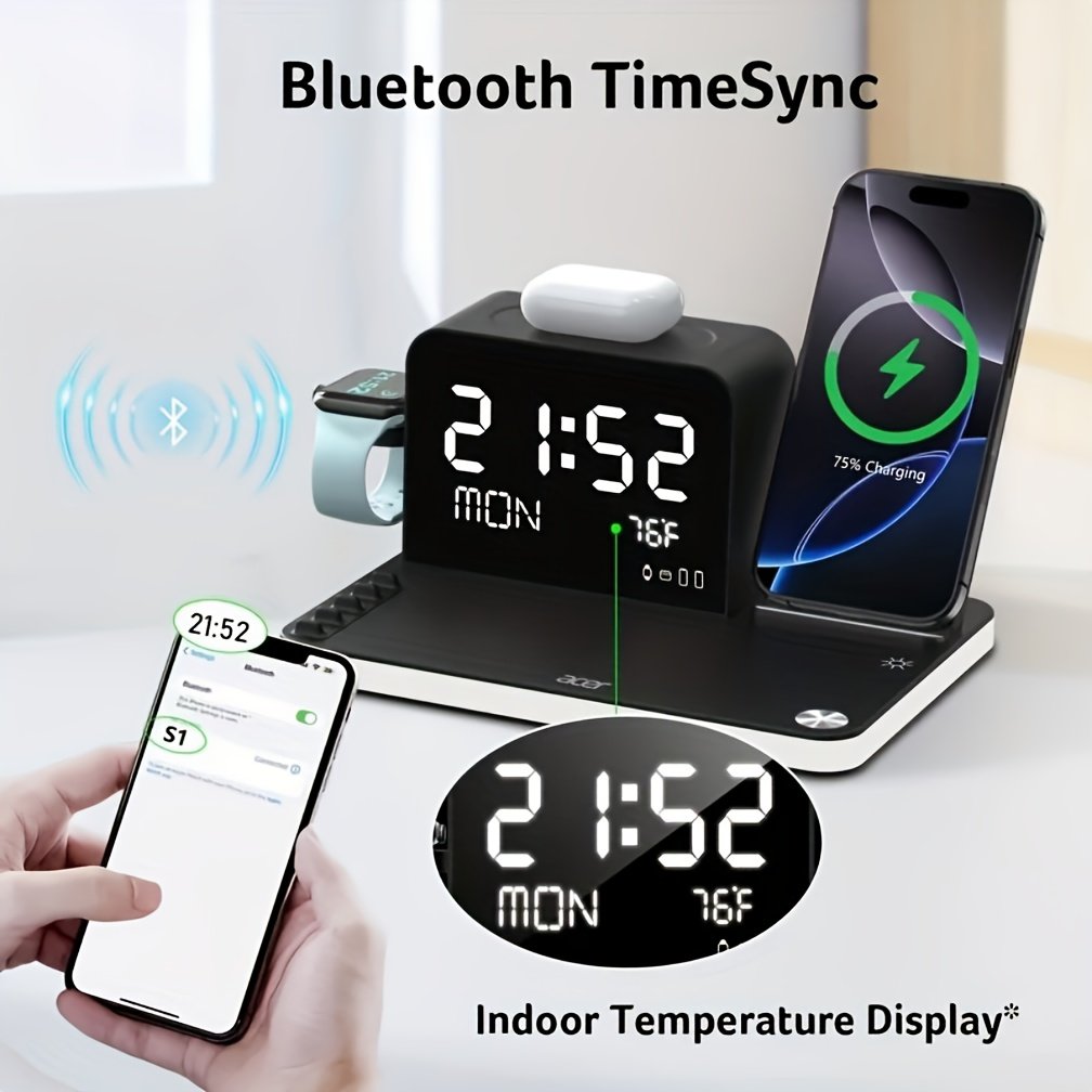 Acer 7 In 1 Wireless Charging Station, Dual Phone Charger With Night Light, Bluetooth Timesync For IPhone 16 15 14 13 12 11 Series & AirPods & IWatch & Android Phone, Black USB Electronic Smartphone Cellphone Wireless Clock Charger
