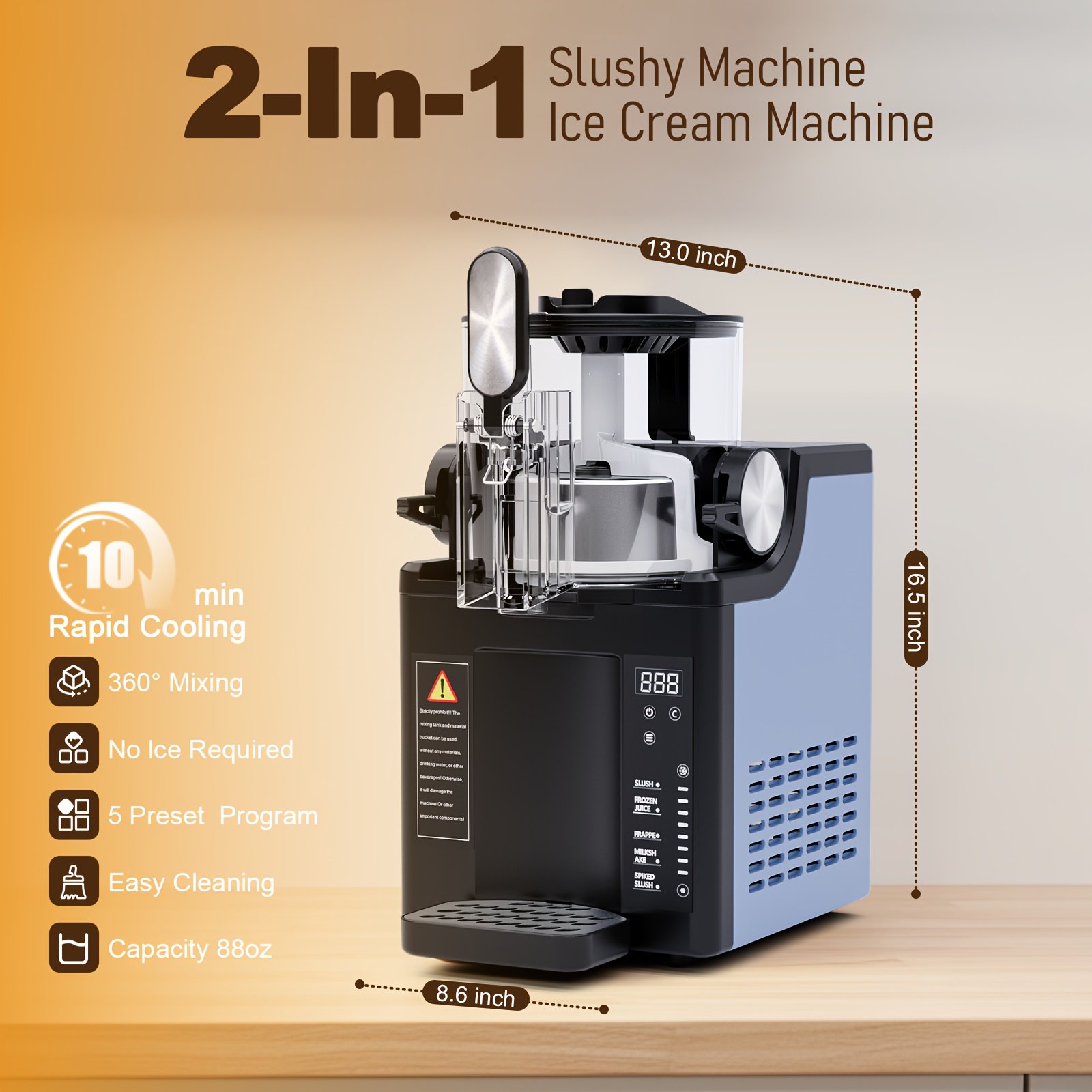 Advwin 88 Oz 2-in-1 Slushy and Ice Cream Maker | Self-Cleaning, No Ice Needed, 6 Presets for Soft Serve, Frozen Drinks, Milk Shakes, Margaritas, Frappes, Stainless Steel