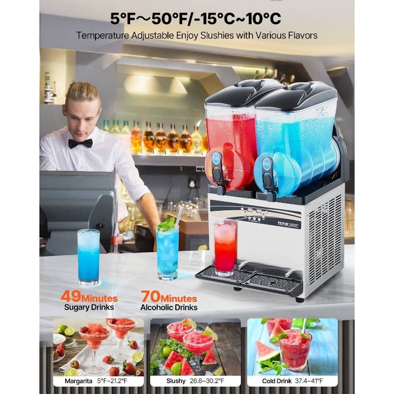Commercial Slushy Machine 15Lx2 Margarita Smoothie Drink Maker, Frozen Beverage Maker, Smoothie Dispenser, Professional Slushy Maker, Heavyduty Machine, Highcapacity Machine, Reliable Slushy Maker, Longlasting Equipment, Beverage Blender