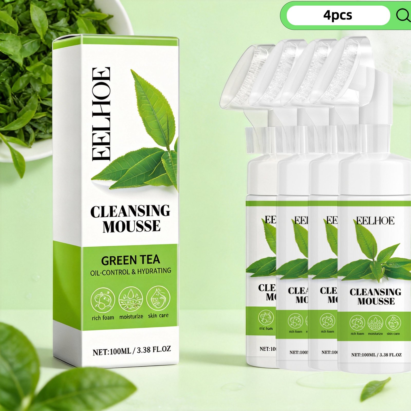 EELHOE 4pcs Green Tea Cleansing Mousse Deep Cleansing Facial Refreshing Oil Control Fading Wrinkles Skin Beauty Cleanser
