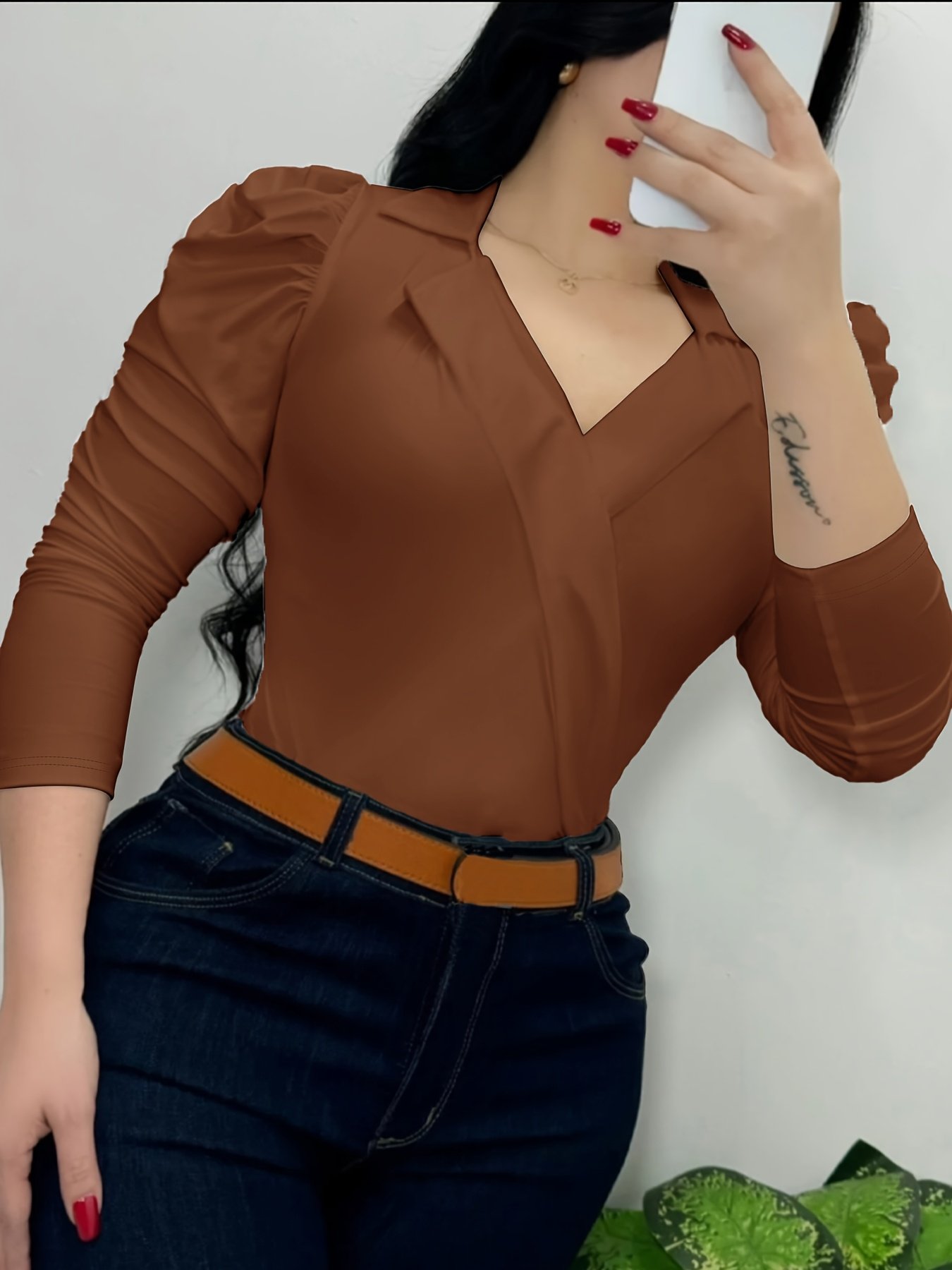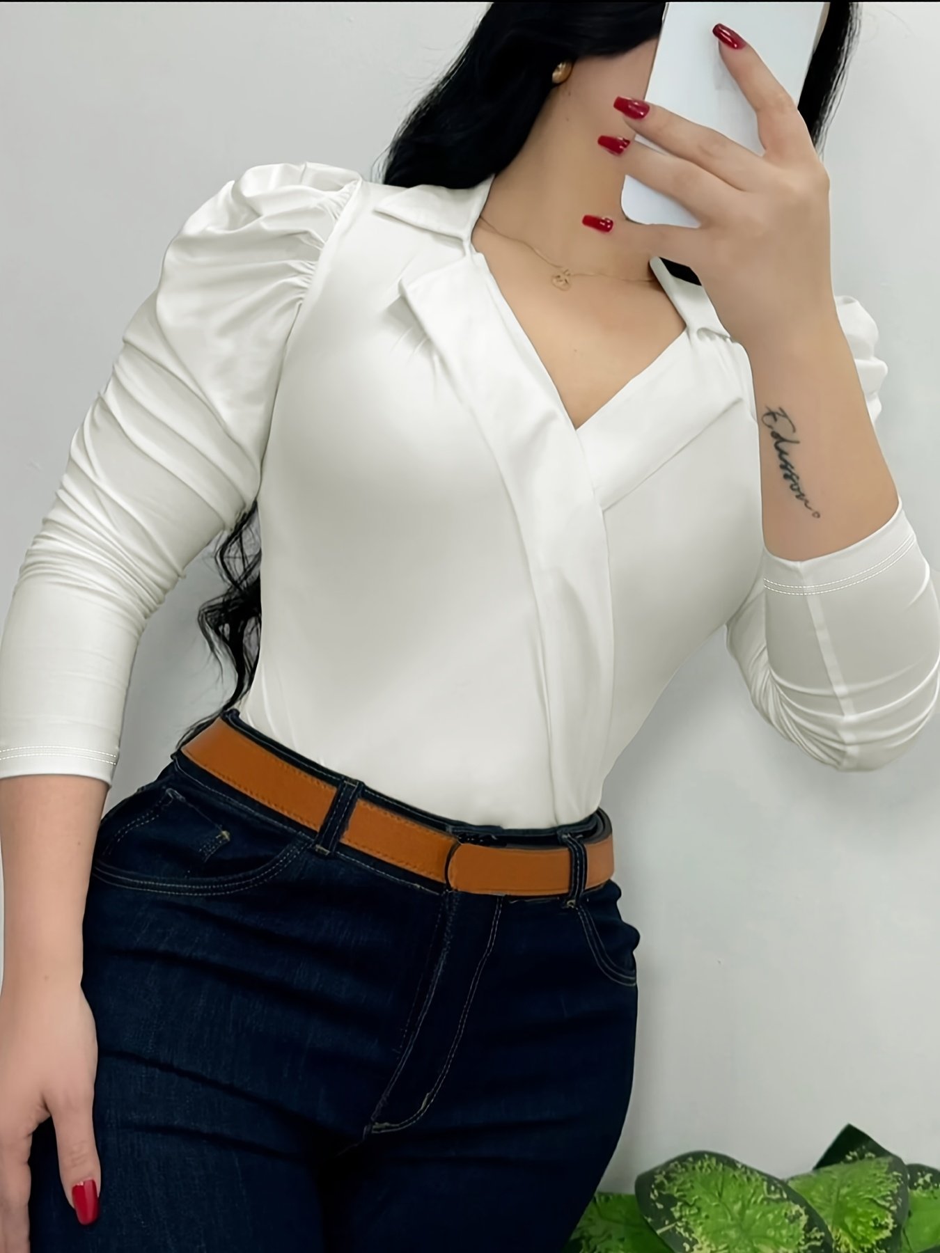 Elegant French-Style Slim-Fit Shirt for Women | Solid Color, Lapel Collar, All Seasons – “Nian Nian”