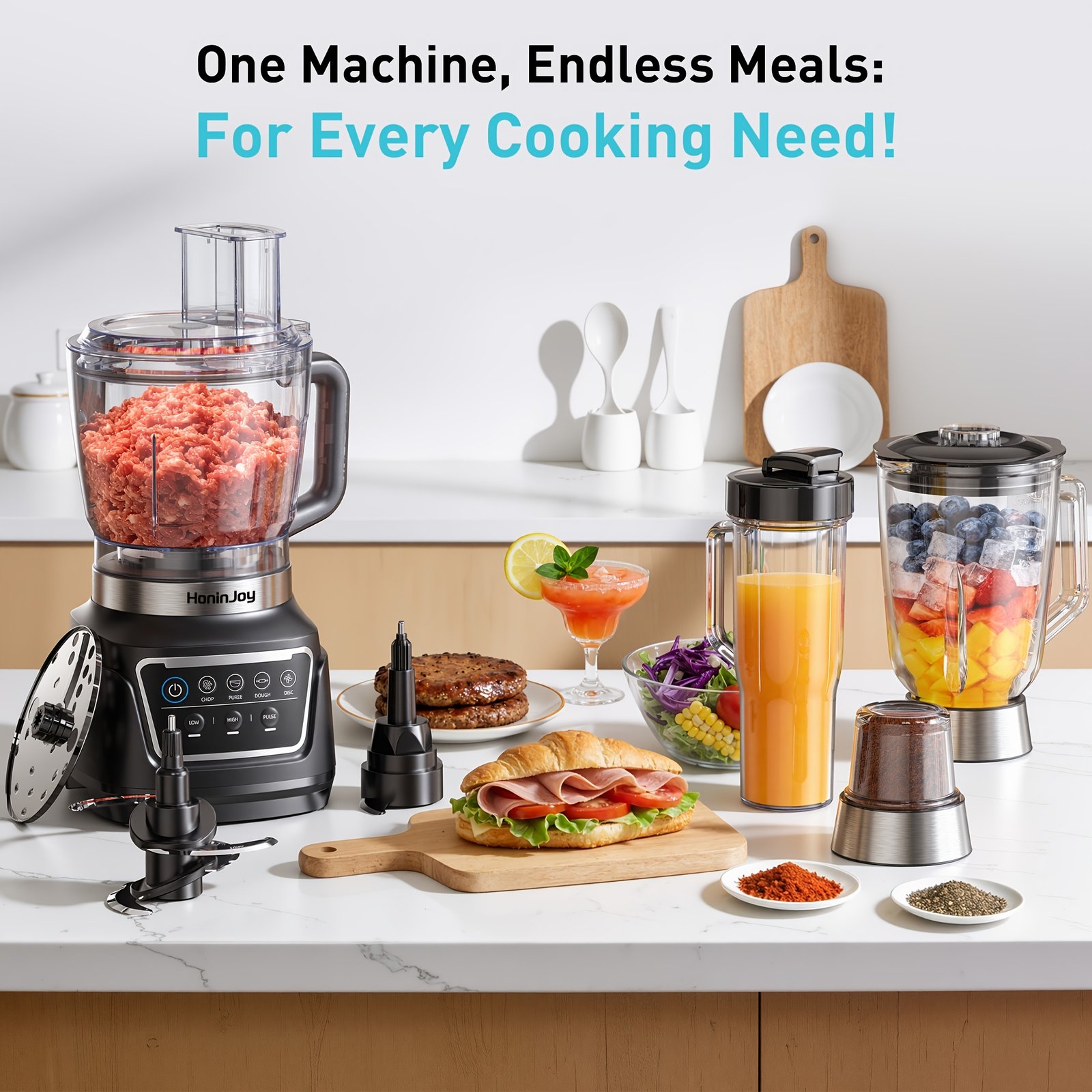 Food Processor & Blender Combo Blenders for Kitchen, Powerful Motor for Slicing, Stainless Steel Blade, 68oz Capacity with Attachments to Shred, Slice, Mince, Grind, And Puree, Multi-function Blade, Large Diameter