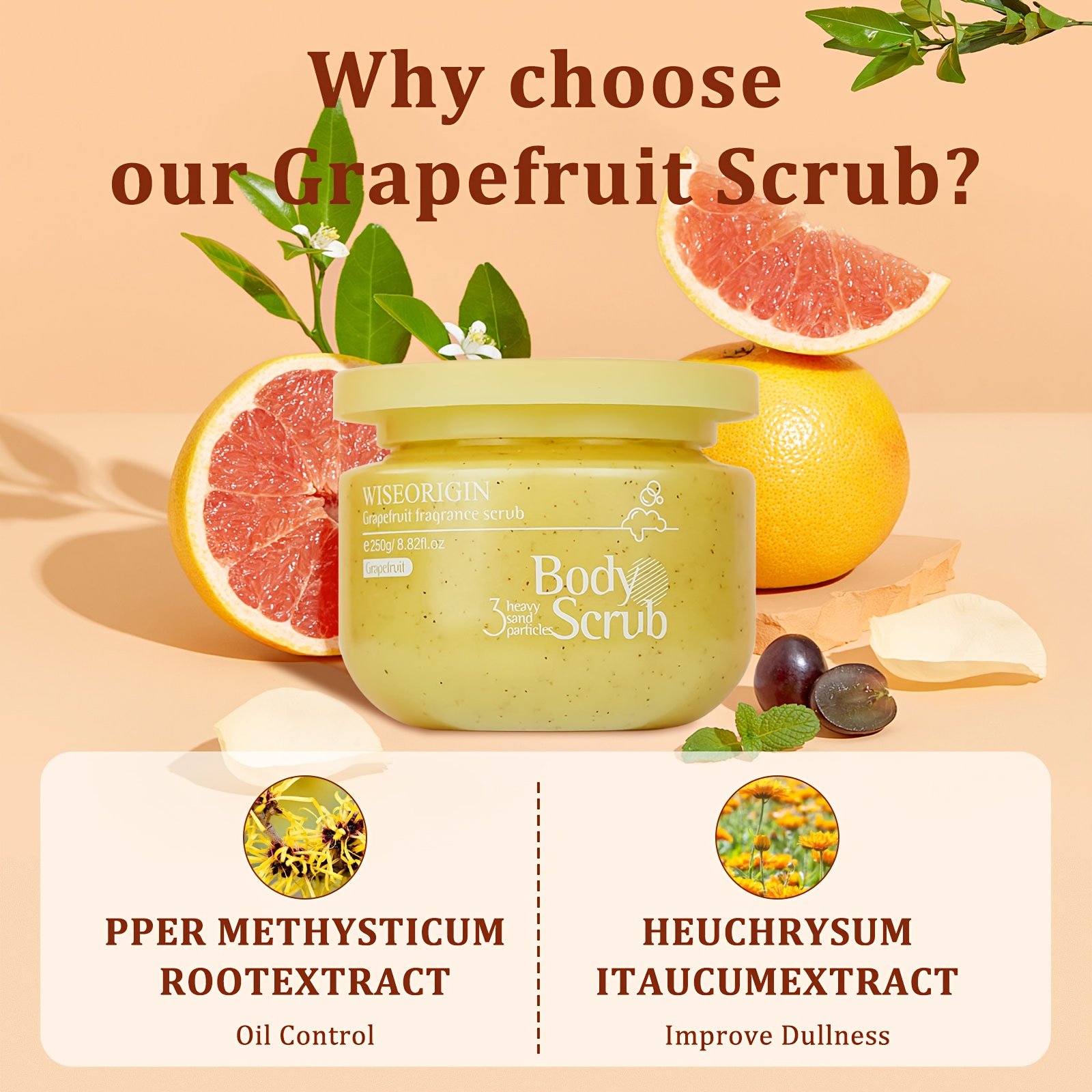 Grapefruit Body Scrub – Physical Exfoliating Formula with Aloe Vera, Peony & Calendula – Deep Cleansing Sugar-like Paste for Sensitive/All Light Beige Types – Light Beige Exfoliator for Face & Body, Men &, Post-Swim & Dry Light Beige Care