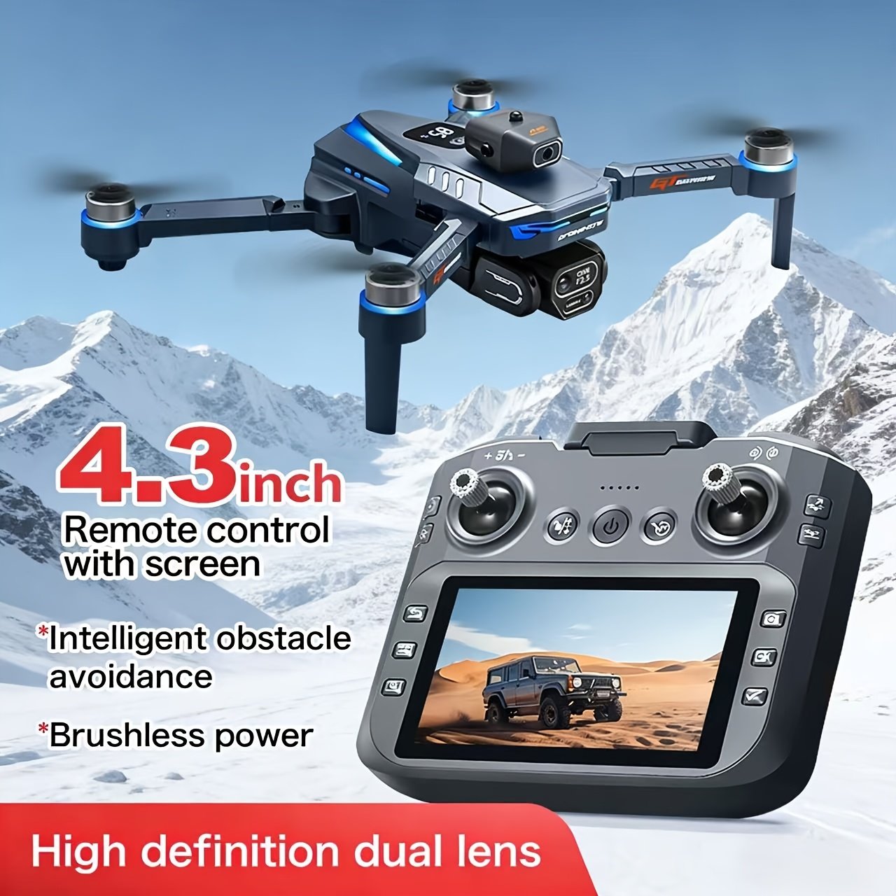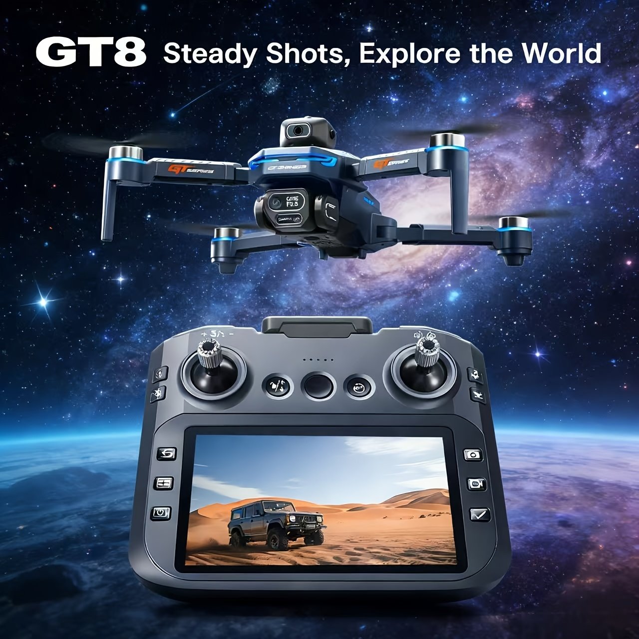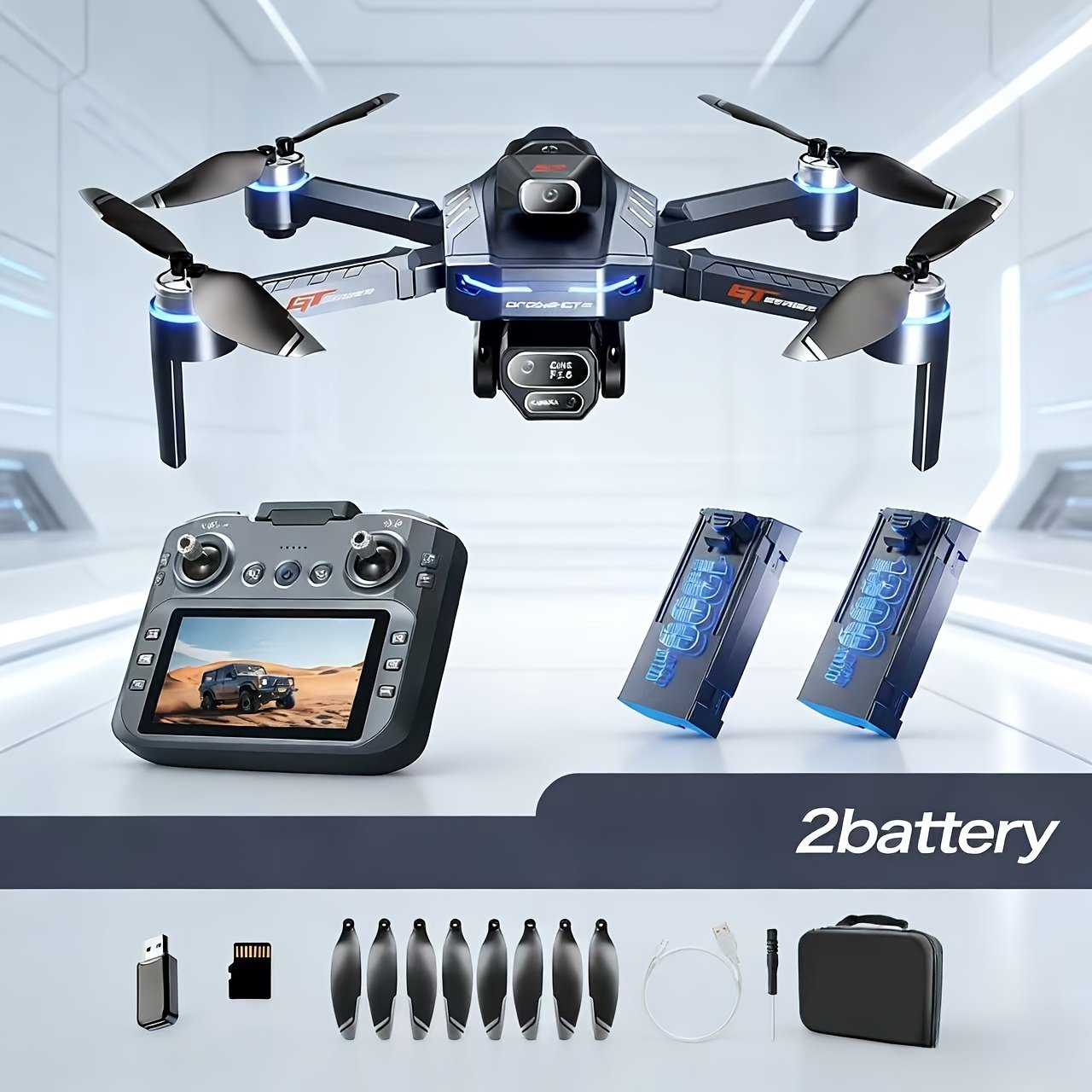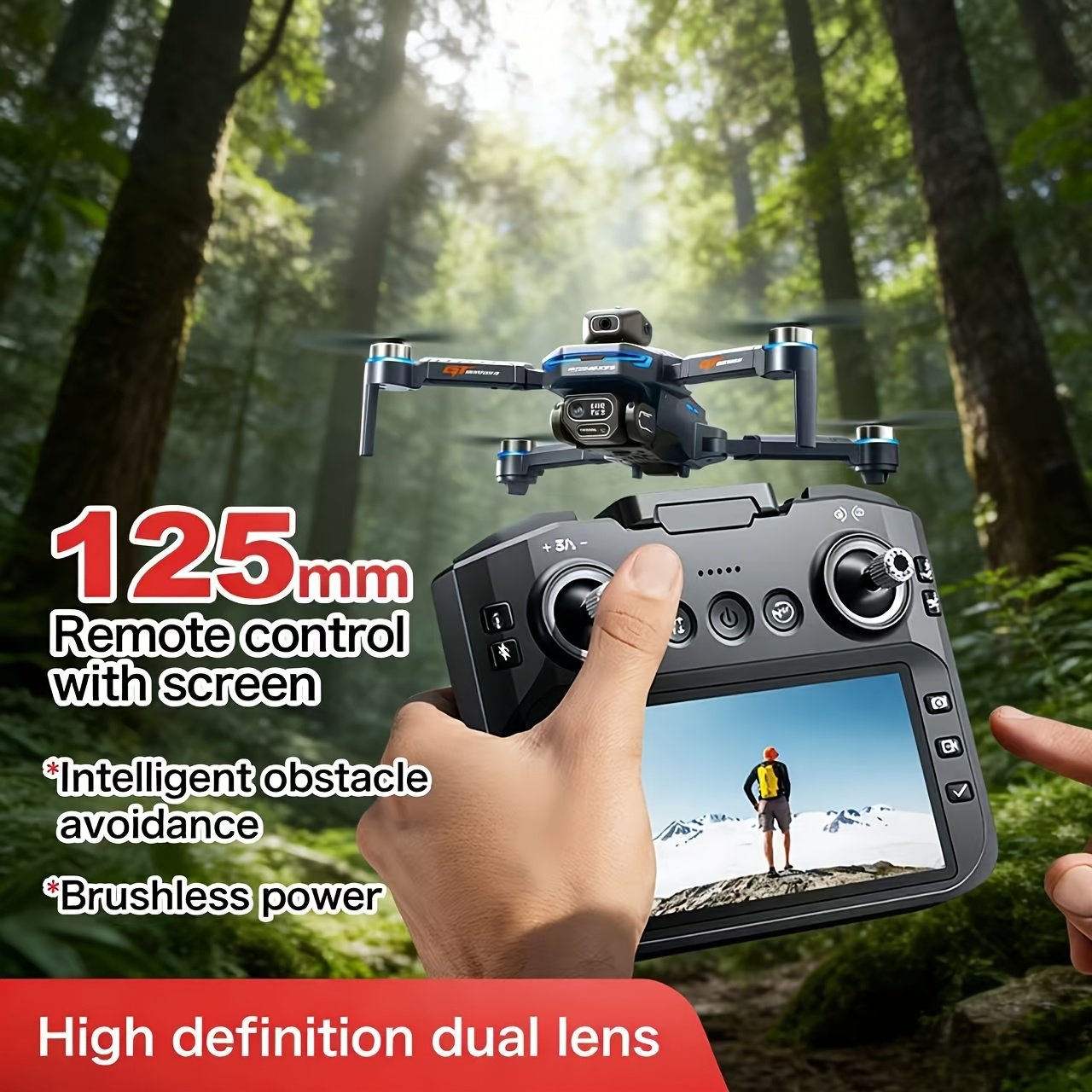 GT8 Foldable Drone with Dual Camera & Obstacle Avoidance, Brushless Motor Quadcopter Suitable for Smart App Control, -Free Operation, Wi-Fi FPV Drone for Beginners, /Outdoor Aerial Photography, 2 Batteries & LCD Display