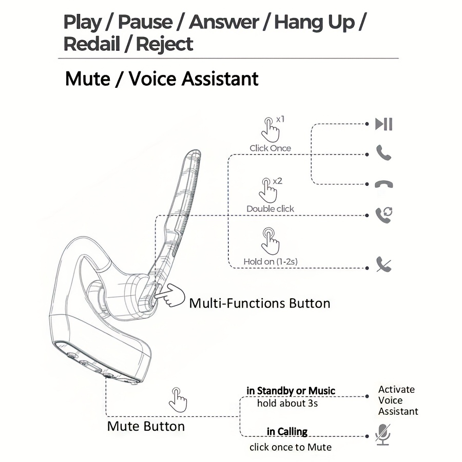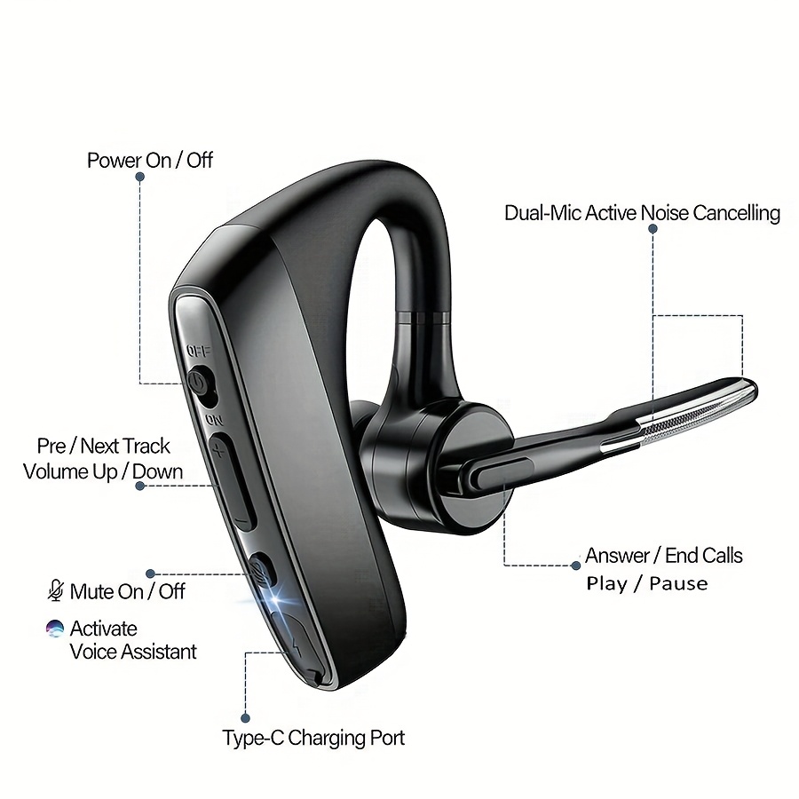 Hands-free: Easy to controls that let you change volume, tracks, mute calls and activate voice Assistant with a single press. So you can finally free your check from your cell phone in your car, home, office or while on the go. Comfortable fit: The adjustable ear hook lets you swap it on your left or right ear easily, the 3 eartip sizes provide a precise and comfortable fit, lightweight design ensures you a great comfort even in long periods of use.
