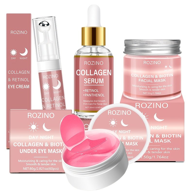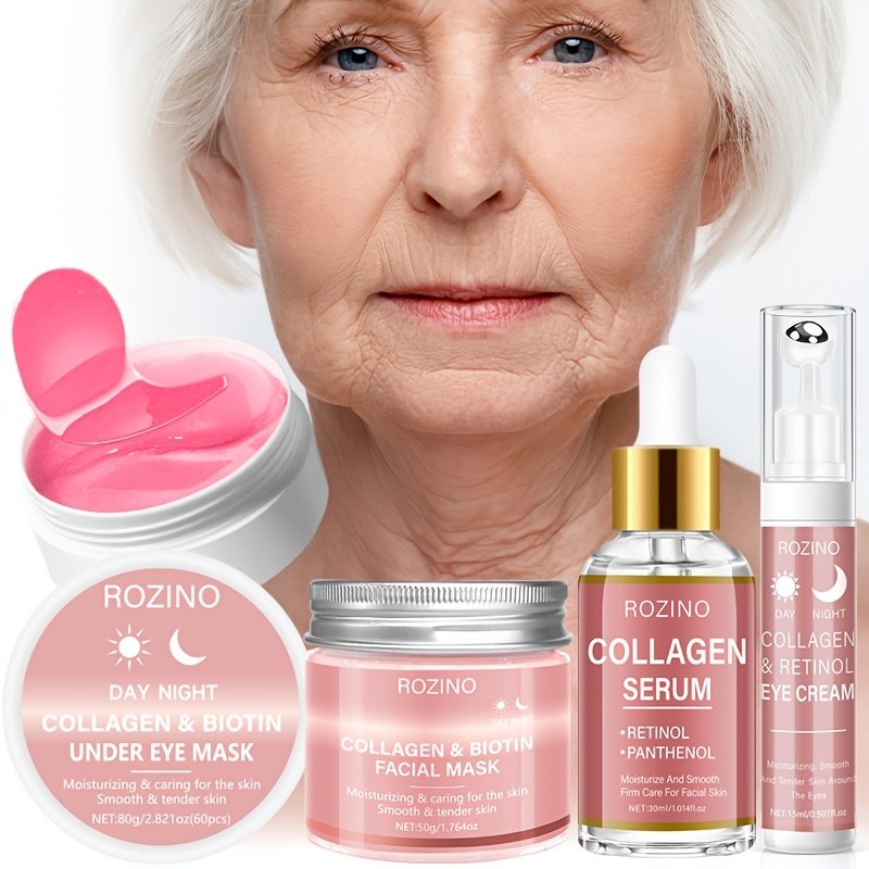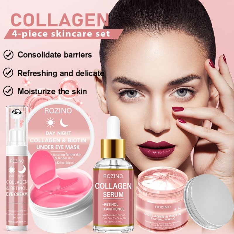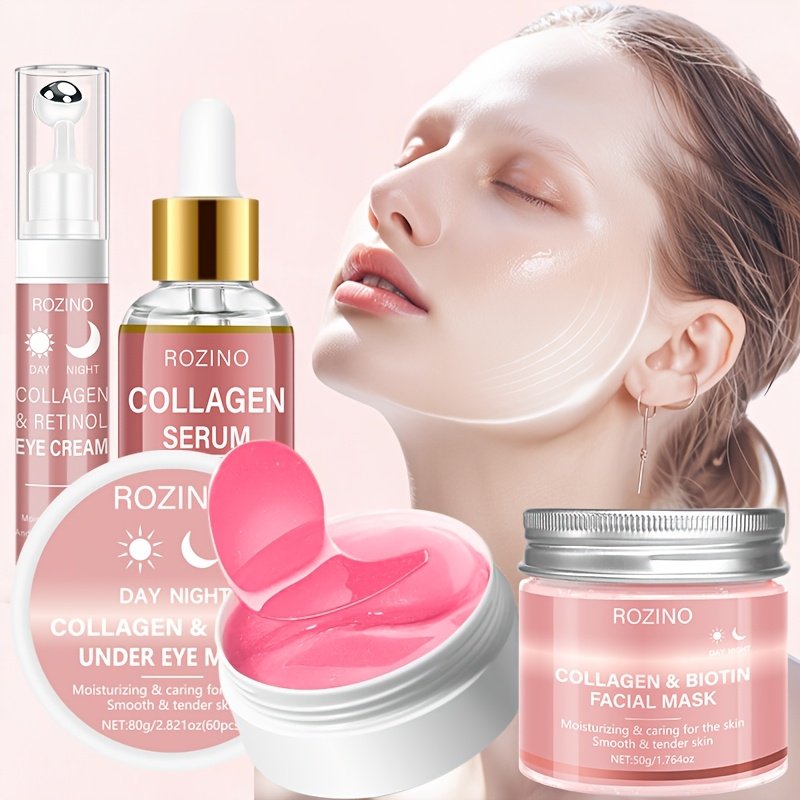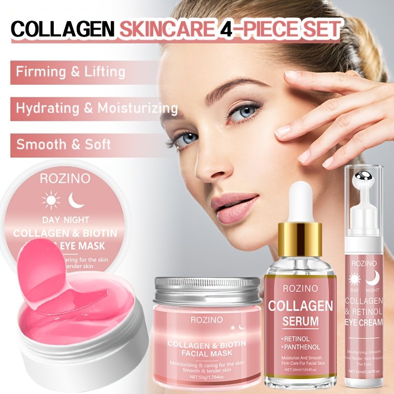Immediately Lift And Firm Up. 4pcs 5IN1 Collagen Cream Eye Cream Mask Serum Set, Skin Care, Firming And Balancing Skin Tone, Smoothing Skin, Boost Radiance, The Look Or The Signs of Aging
