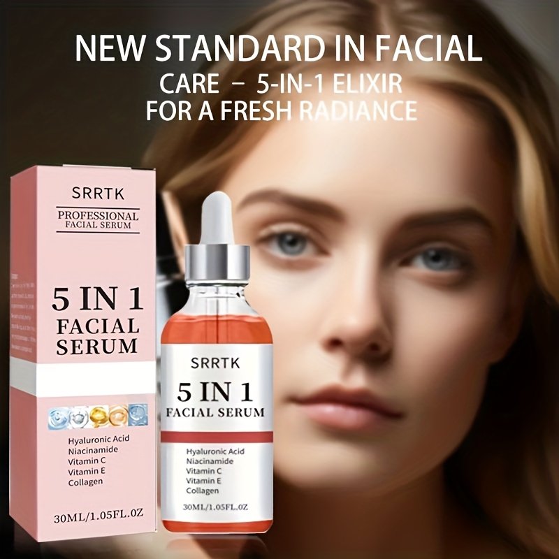 JAYSUING 5-In-1 Facial Serum with 4 Bottles, Featuring Hyaluronic Acid, Collagen, Niacinamide, And Vitamins C And E – A Moisturizing Formula That Minimizes Pores, Suitable for All Skin Types, Free from Irritation And Alcohol
