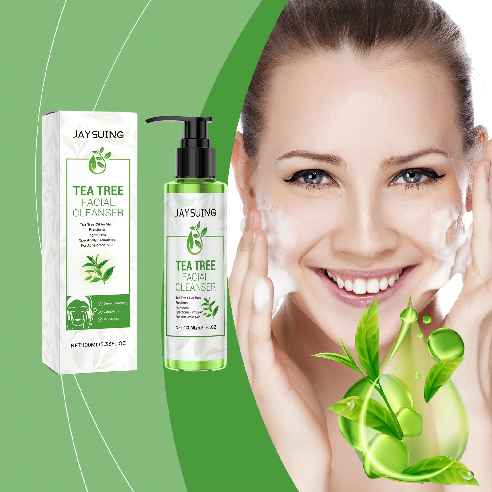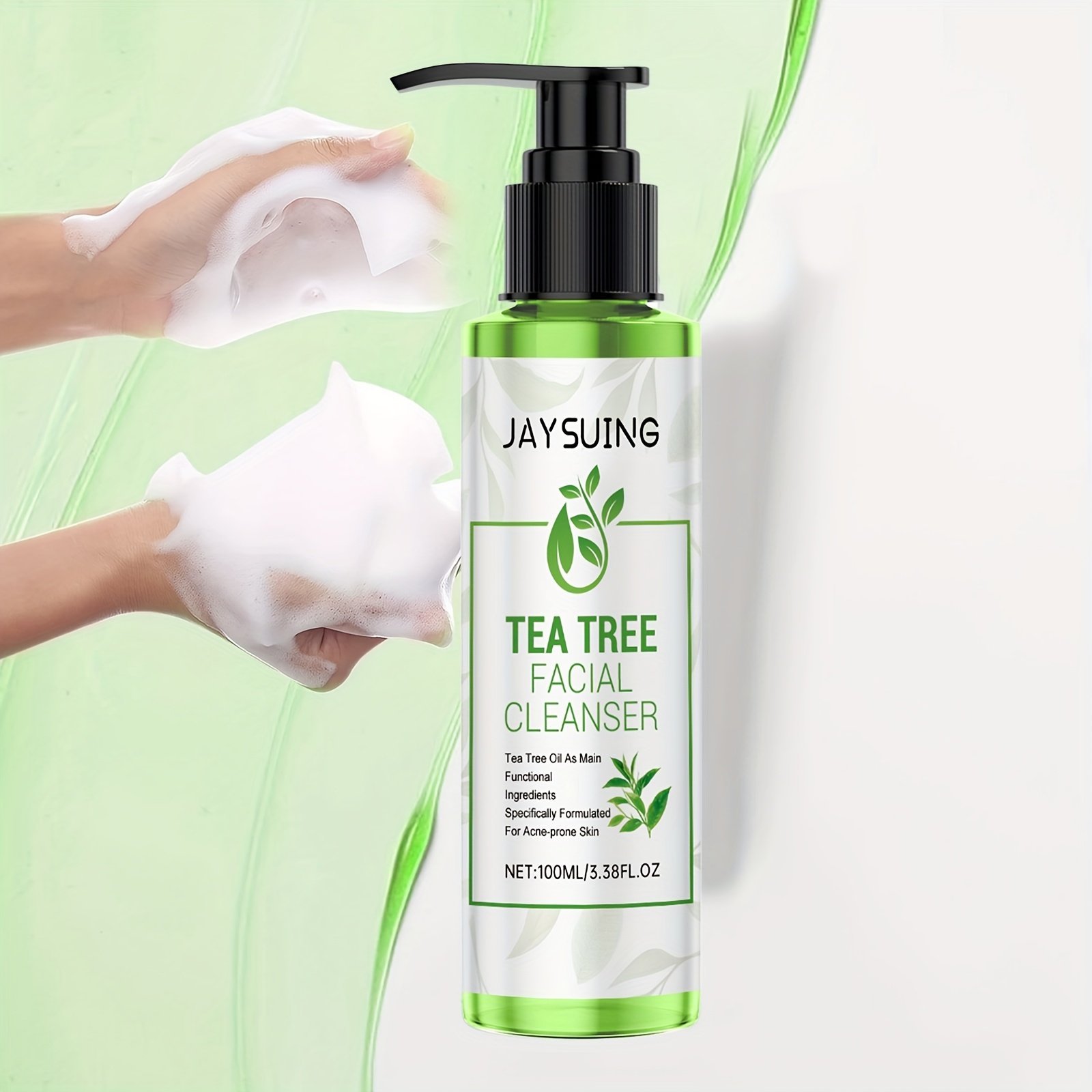 JAYSUING Tea Tree Cleansing Gel, a Refreshing Facial Cleanser with Tea Tree Oil, Provides Gentle Moisturizing Properties