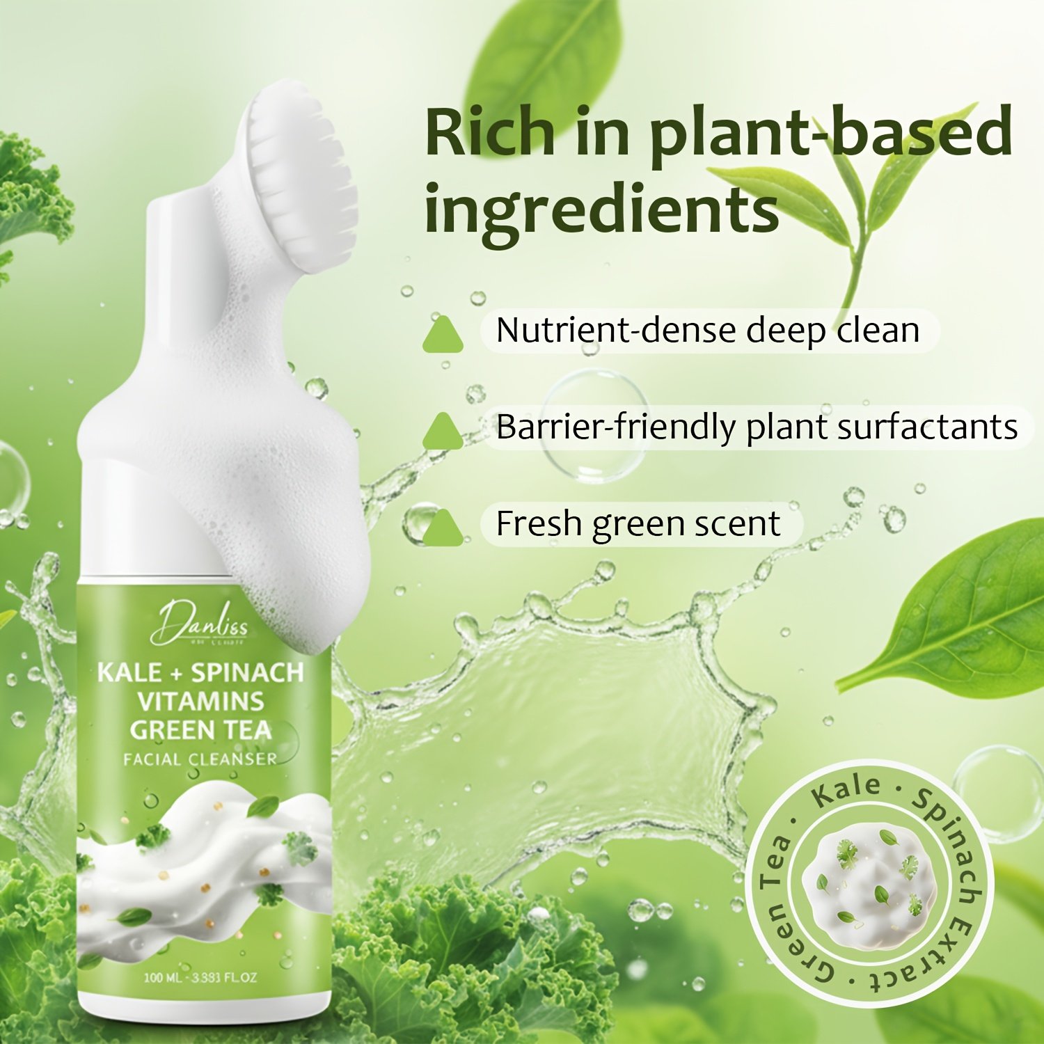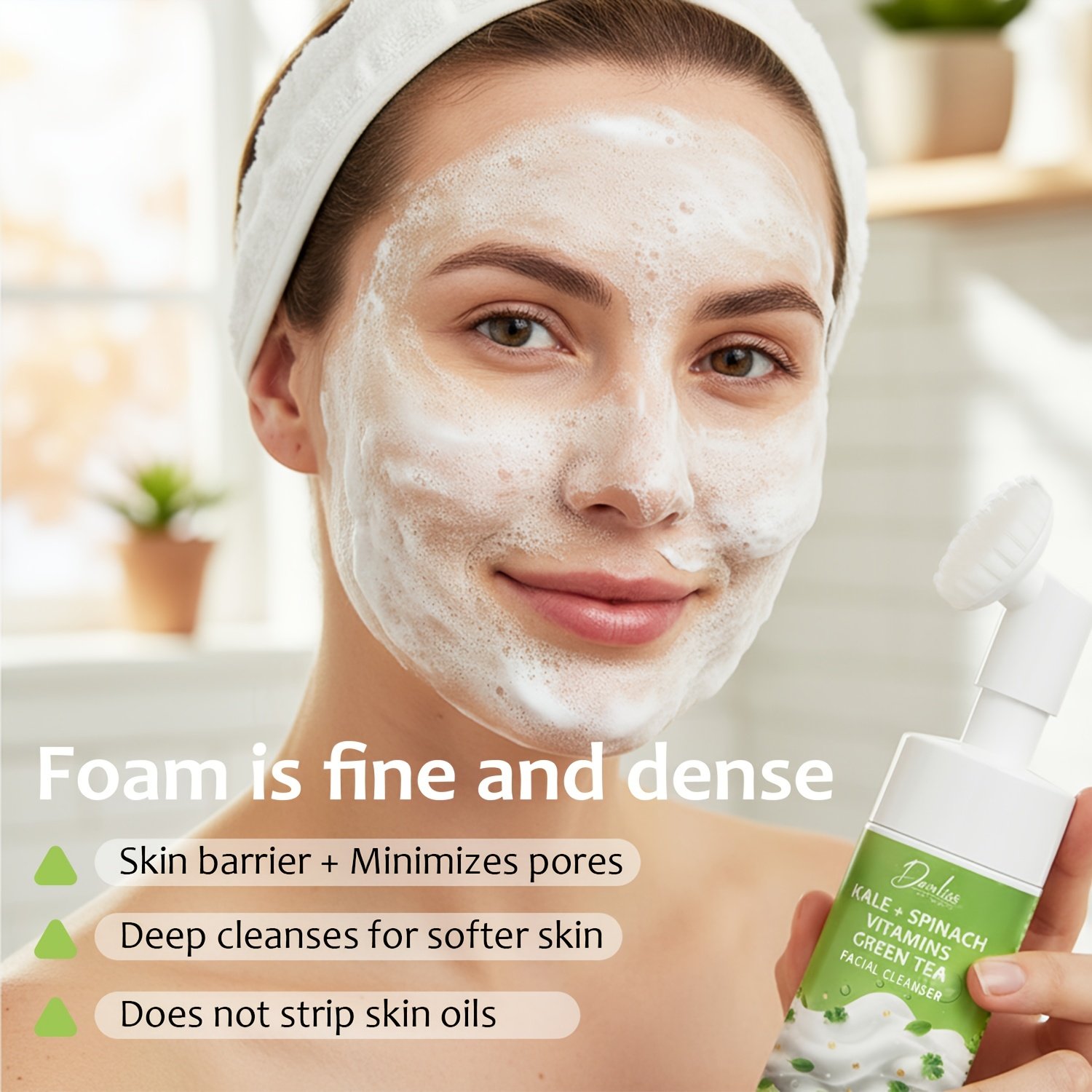 Kale Cleanser Foam with Spinach, Vitamins, And Green Tea – Softly Purifies The Skin, Enhances Clarity And Texture, Thoroughly Cleanses for All Skin Types Including Sensitive, Dry, Oily, And Combination