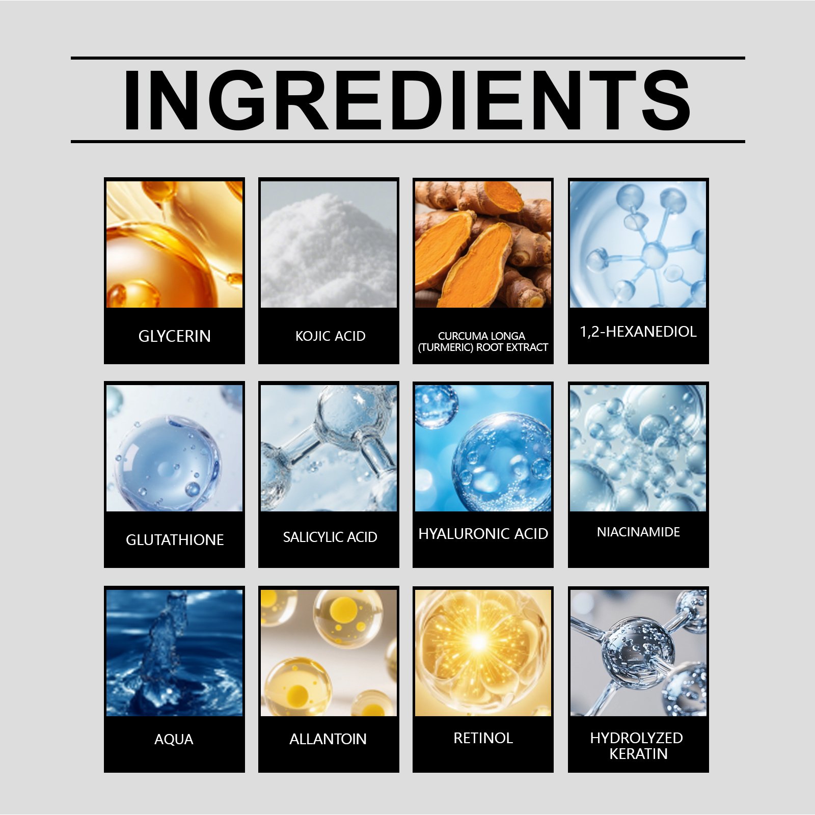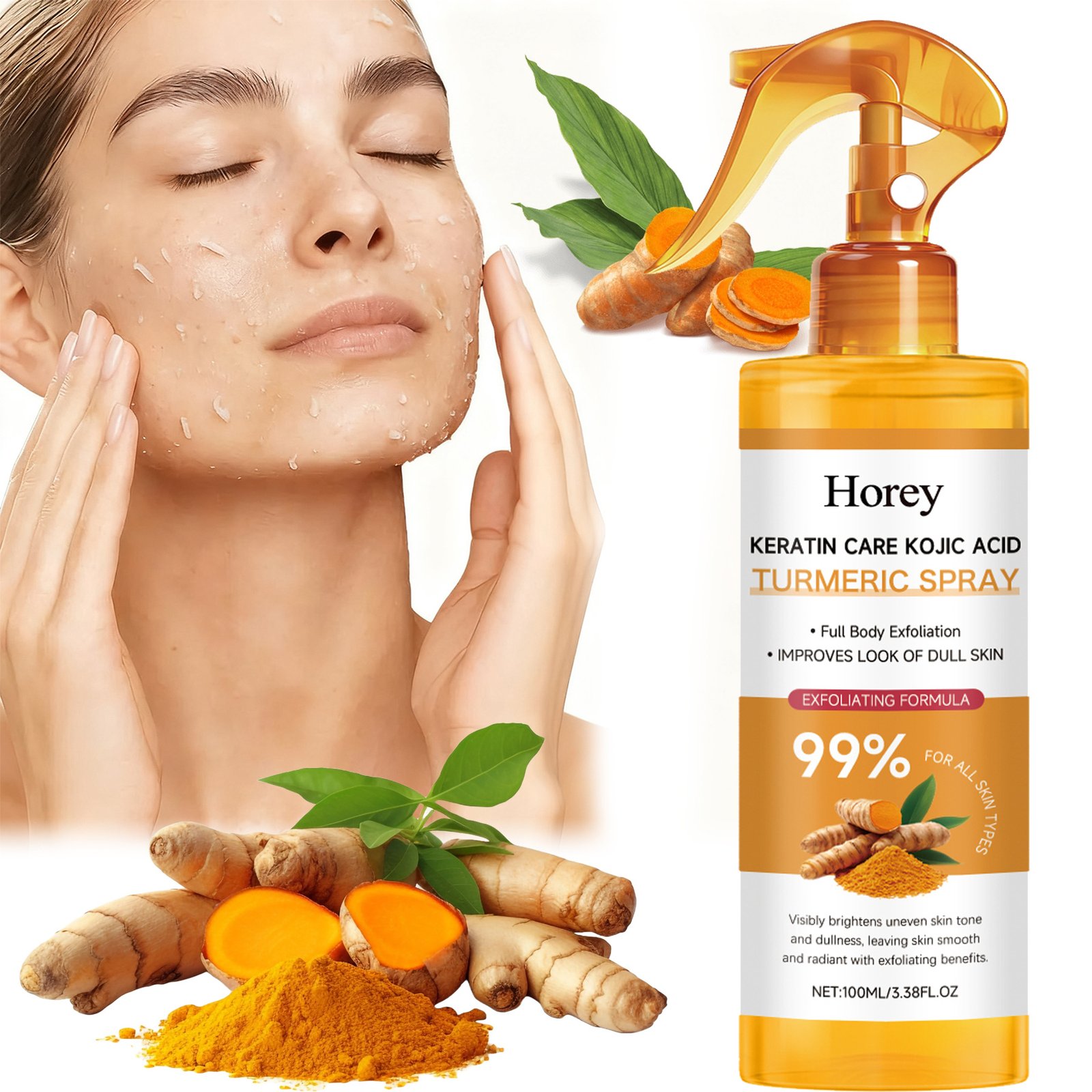 Kojic Acid And Turmeric Exfoliating Spray – Features Kojic Acid And Turmeric – Effectively Removes Dead Skin Cells – Makes The Skin Feel Smoother And More Polished – Cleanses The Skin – Enhances Skin Brightness – Appropriate for Both Facial And Body