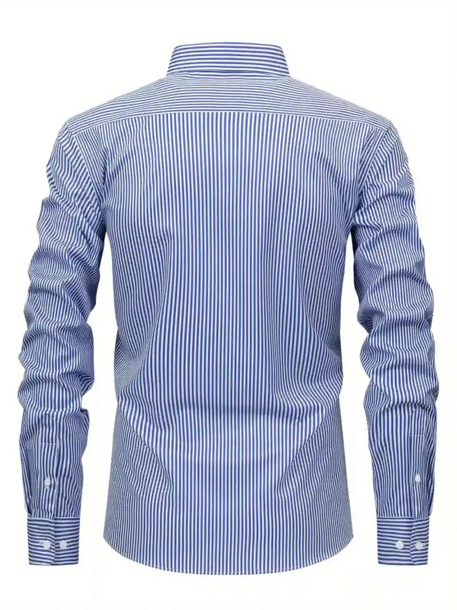 Men’s and White Striped Long Sleeve Shirt- Classic Pointed Collar Button Design, Loose Fit Business Casual and Formal Shirt, Suitable for Office, Party, Semi-Formal Occasions- Wrinkle- and Machine Washable, All-Season Versatile Cut, PLUS SIZE